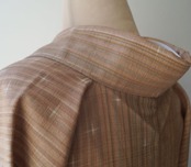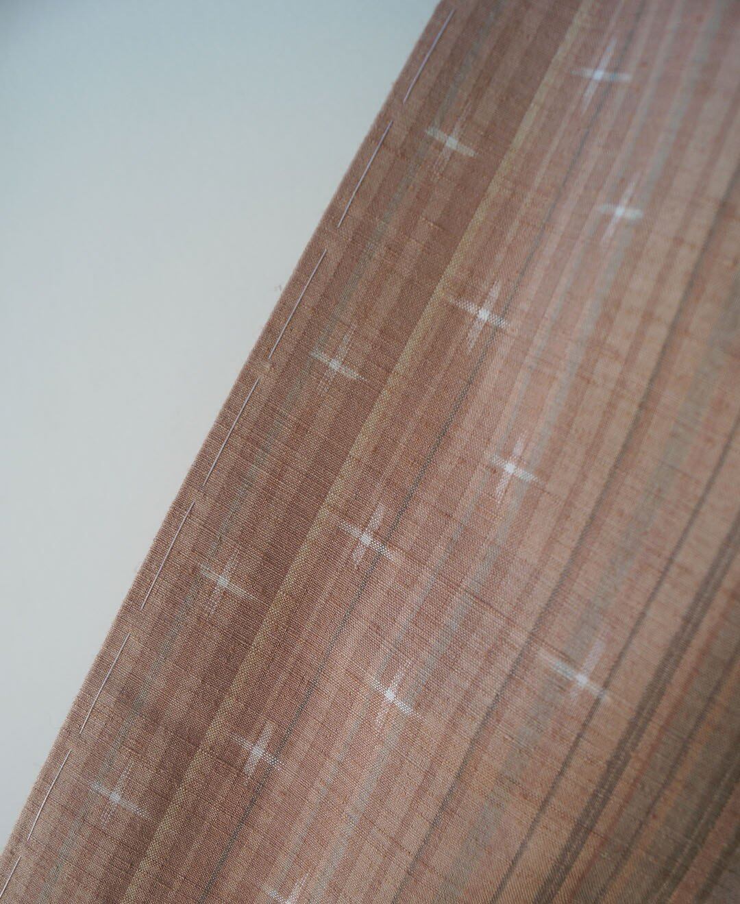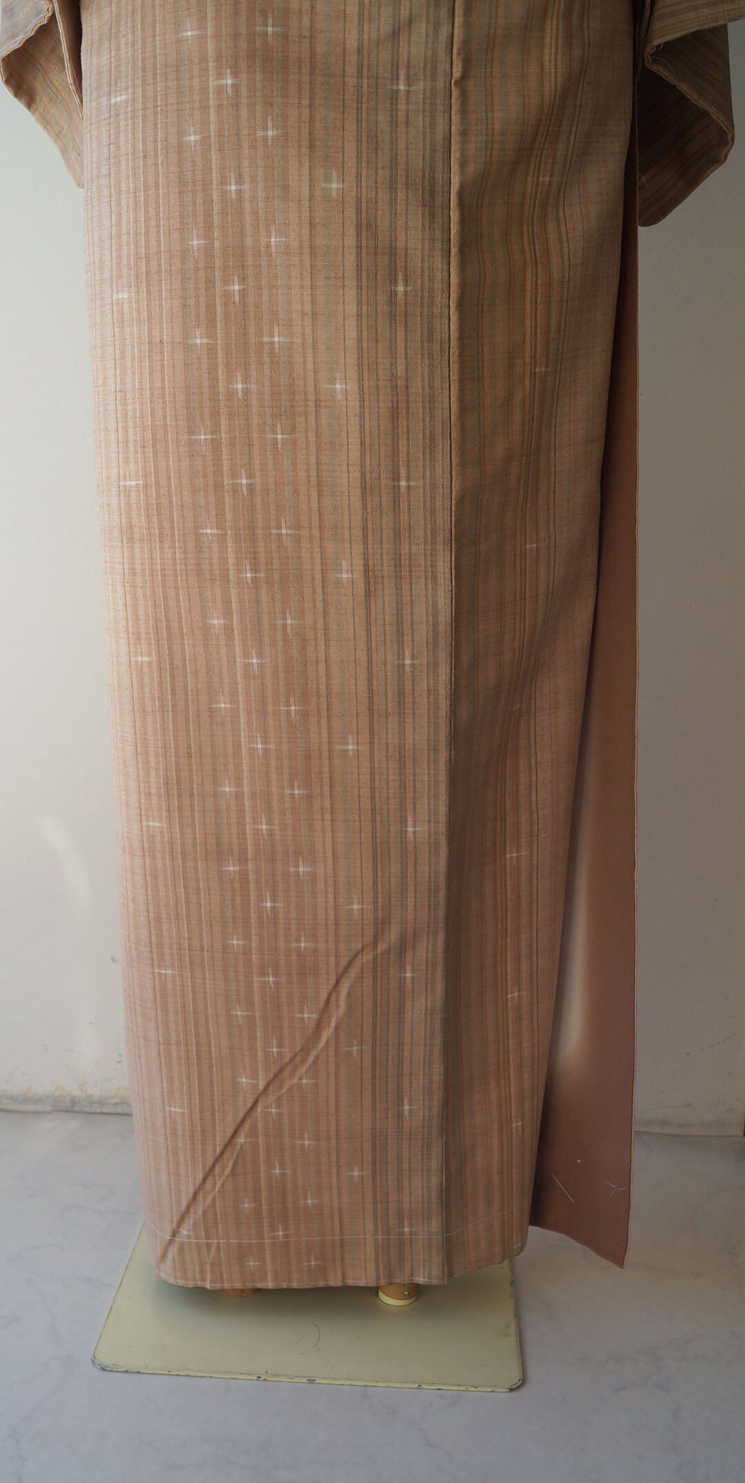 【袷】洗柿色×ときがら茶 縦縞文に十字文 紬