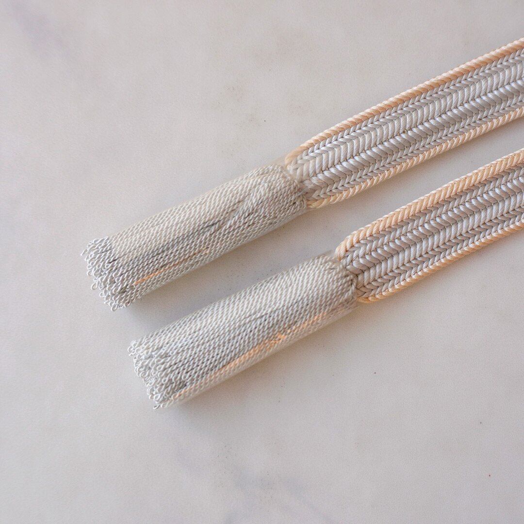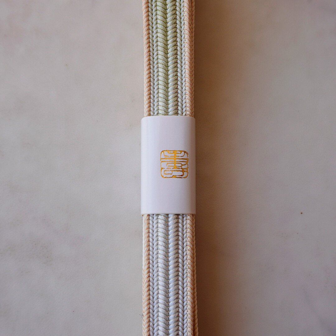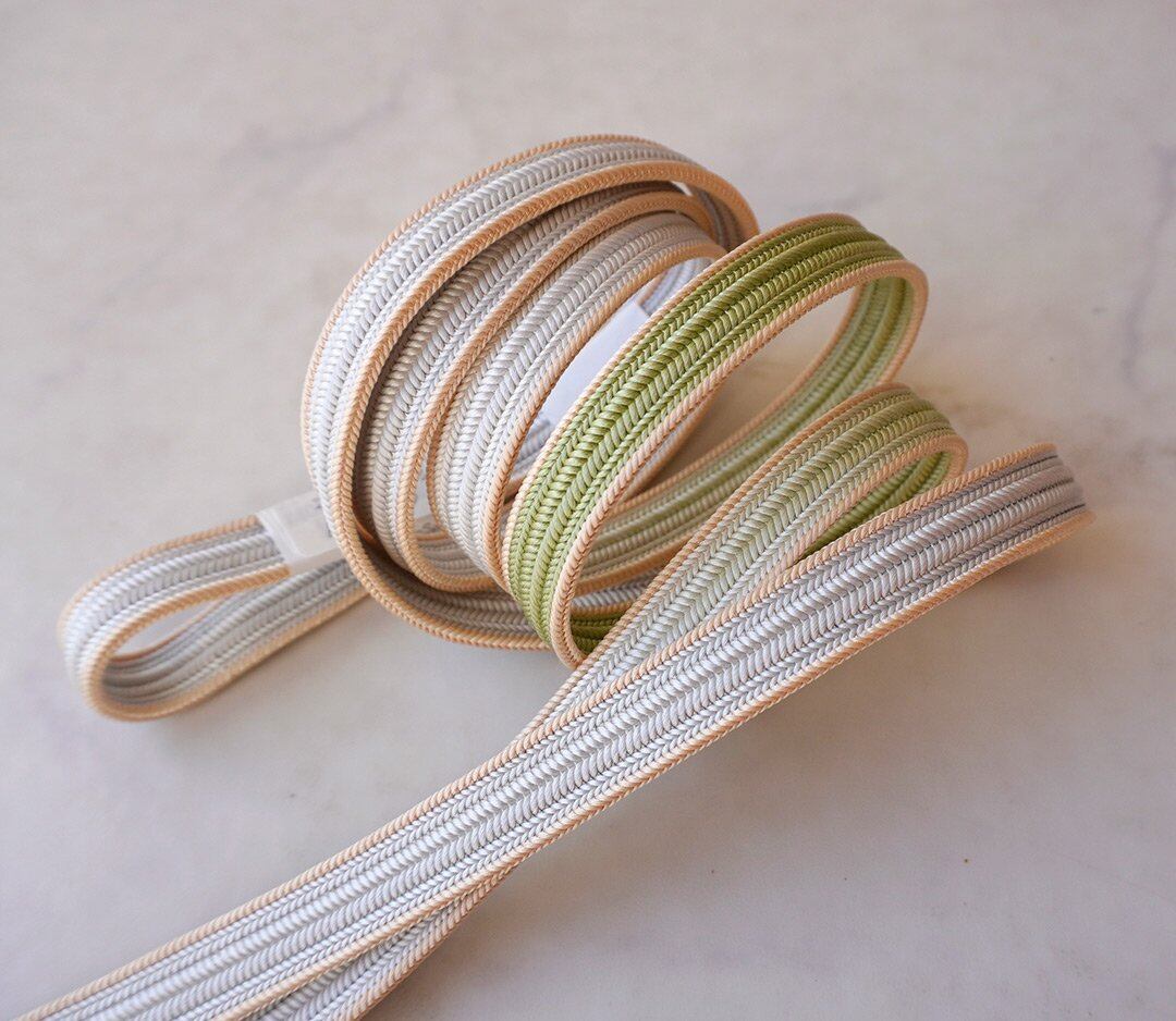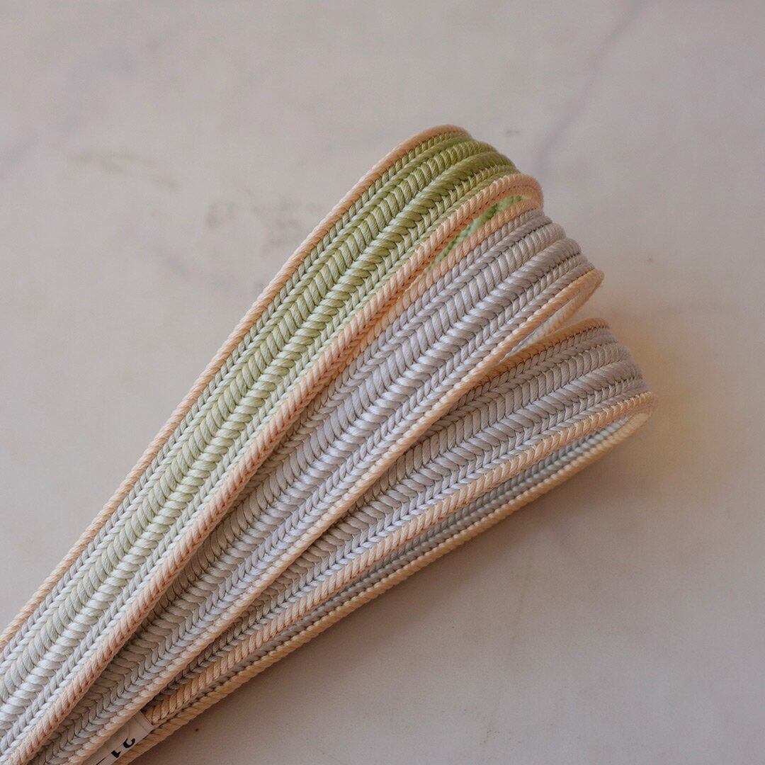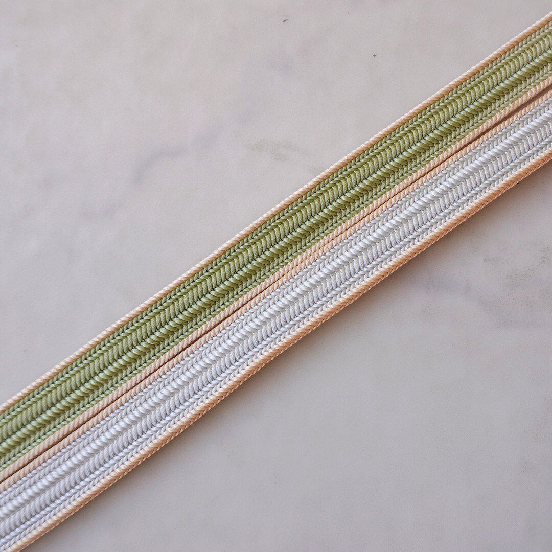 【衿秀・帯締め】若葉色×卯の花色 綾竹組 撚り房帯締め No.241219③