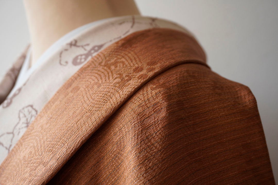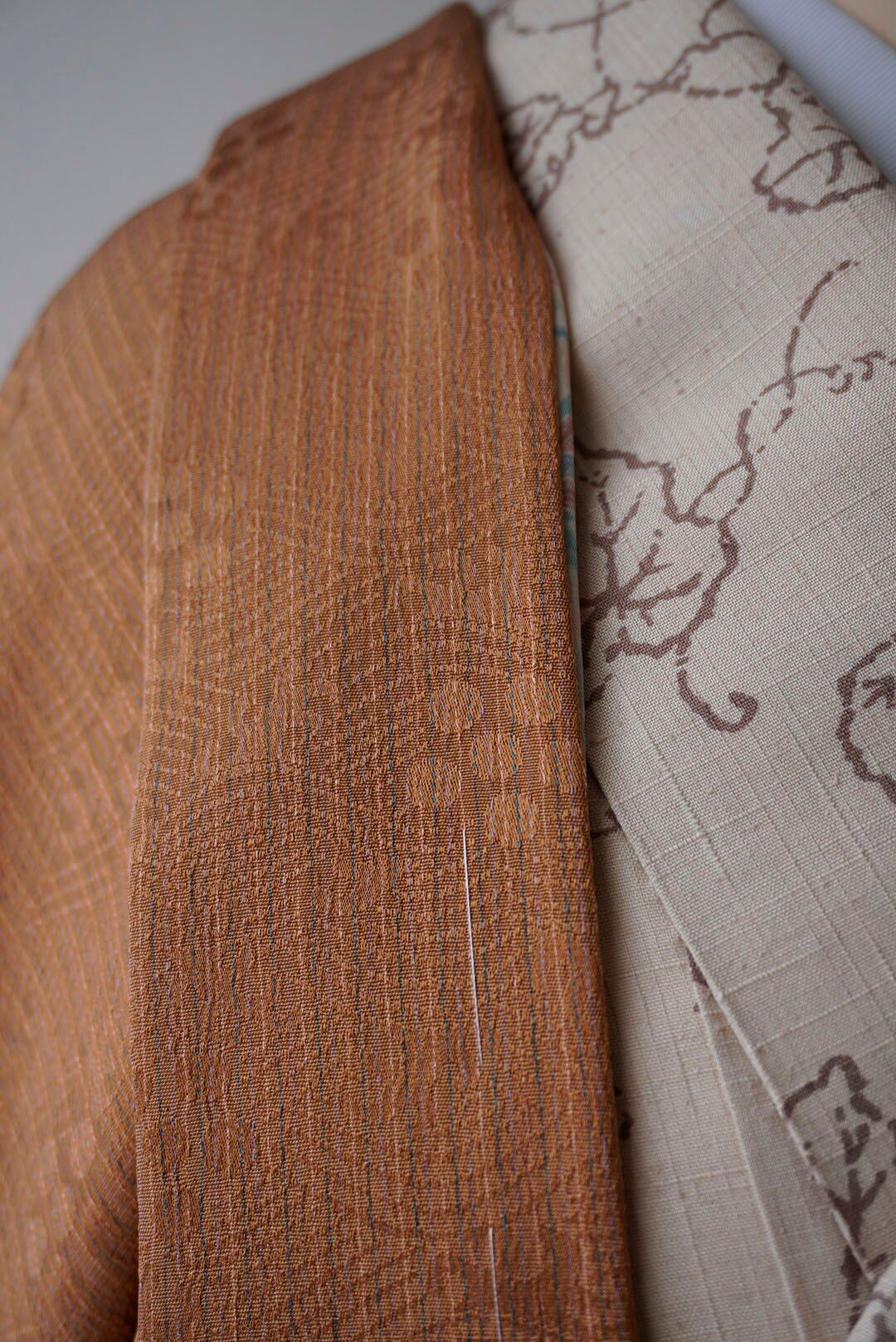 【袷羽織】黄丹色 梅鉢文地紋 袷羽織 羽織紐付き