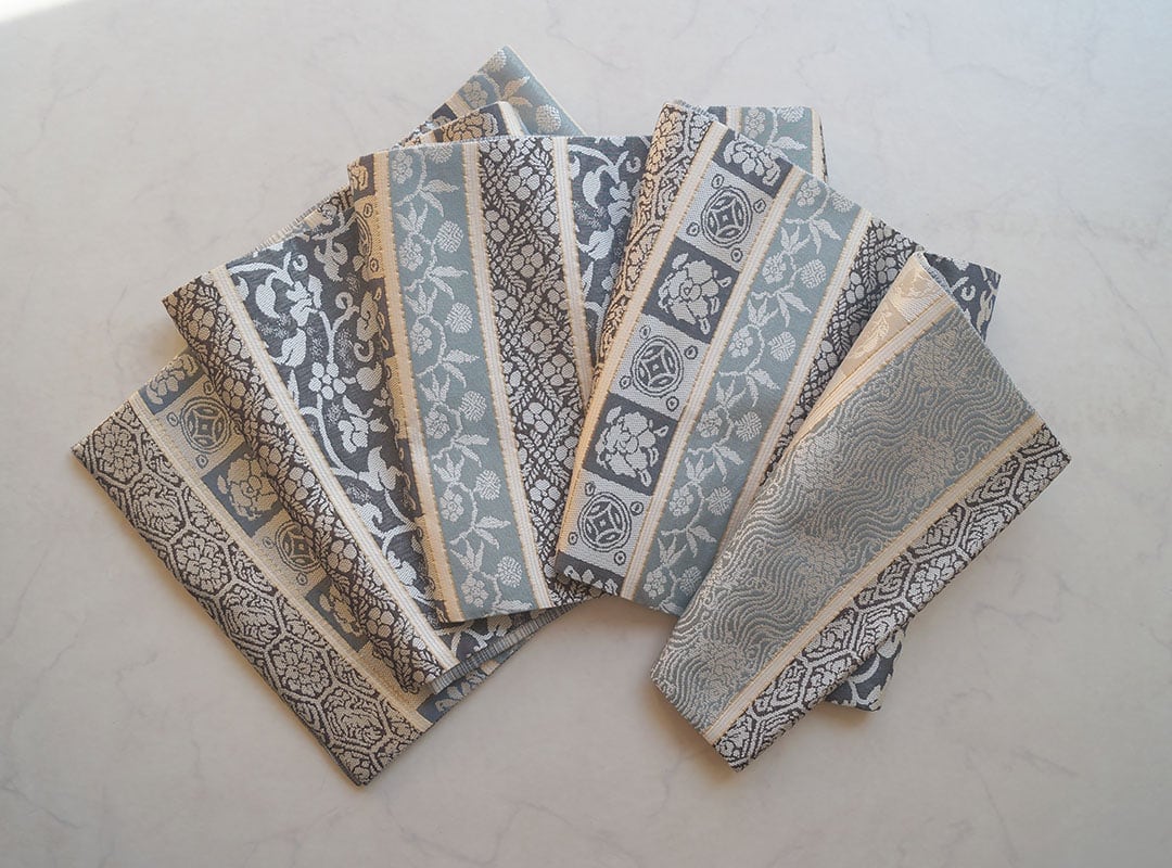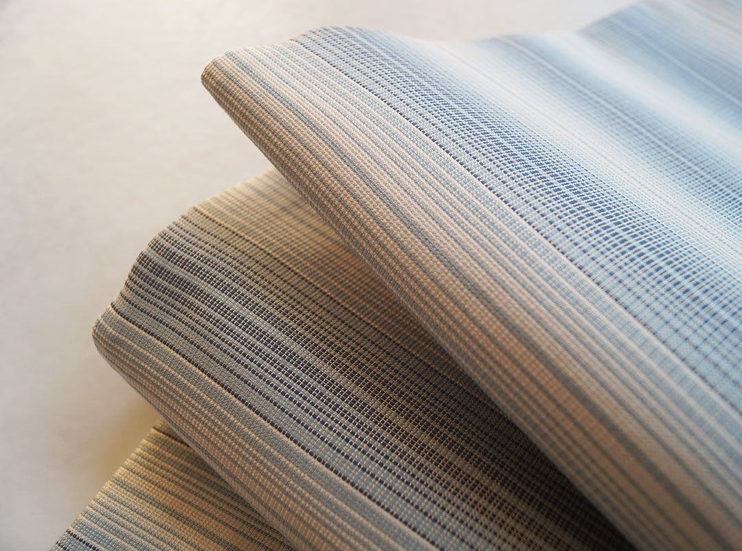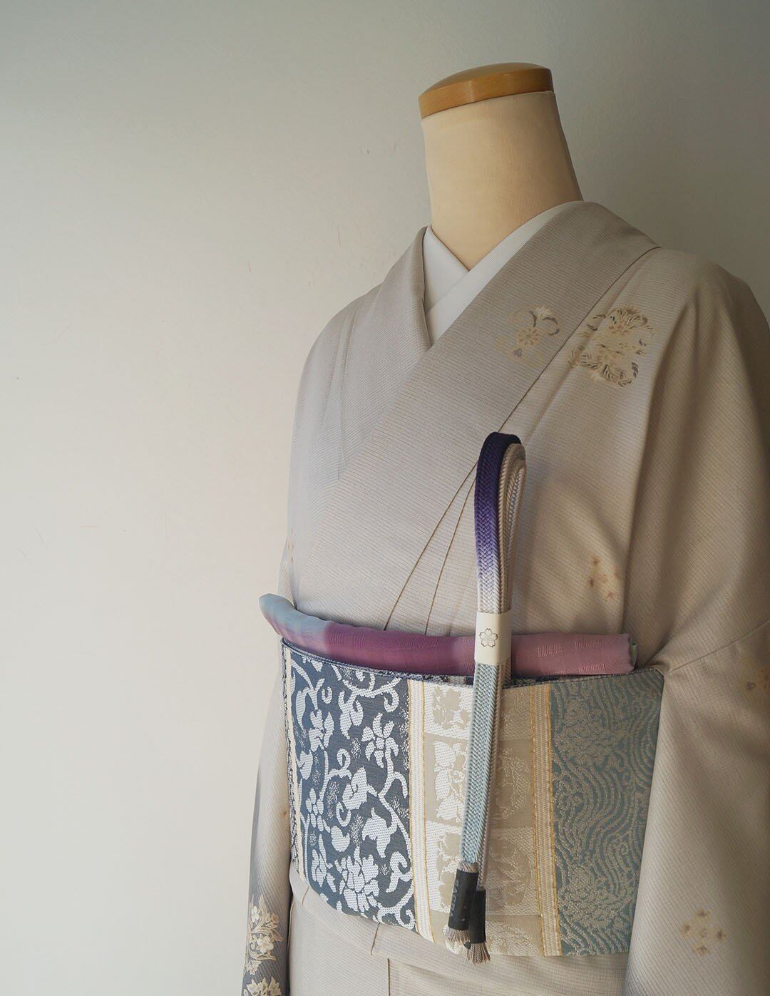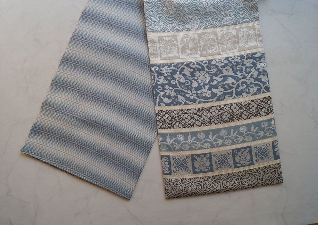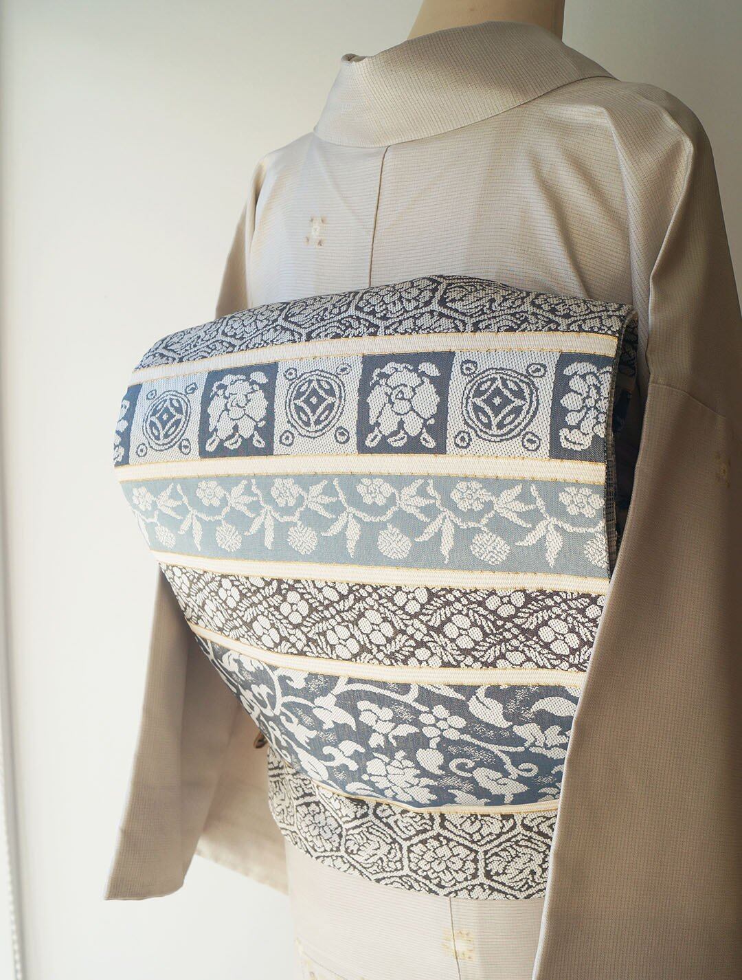 【ふくろ帯】ブルーグレー系 名物裂横段文 ふくろ帯