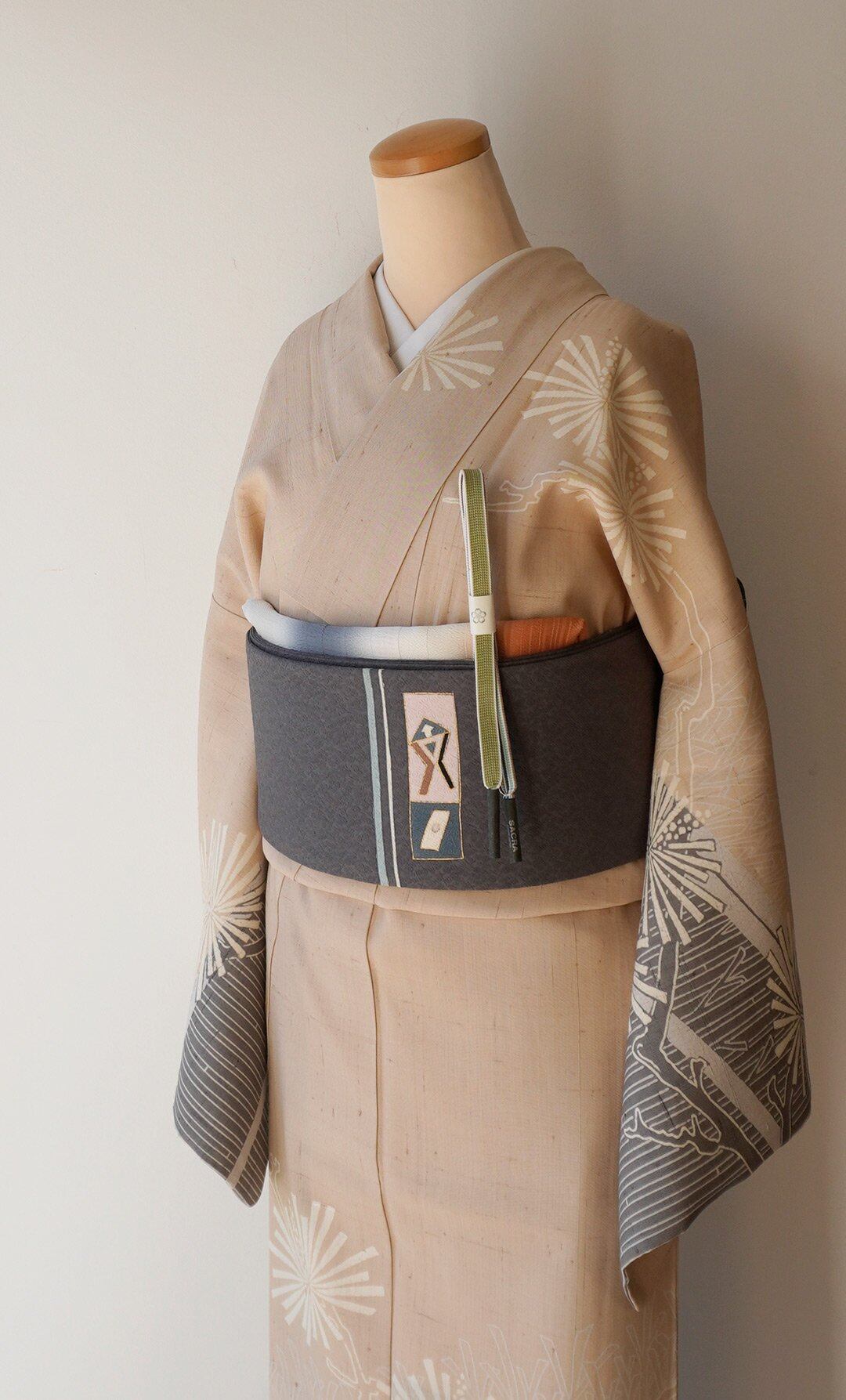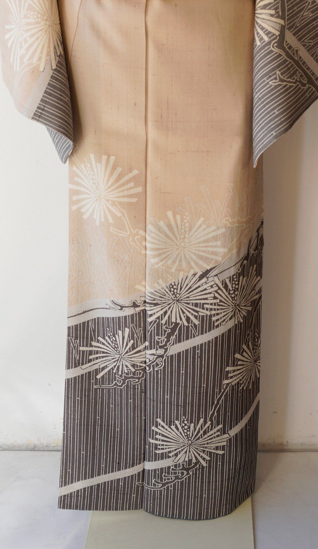 一珍染めの、洒落た柄行きの紬訪問着です。