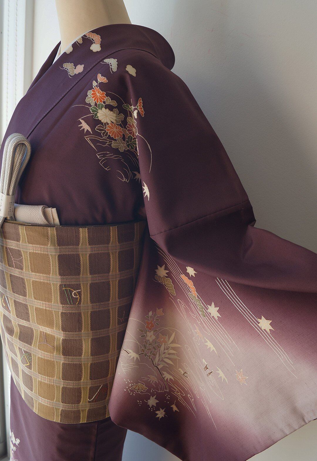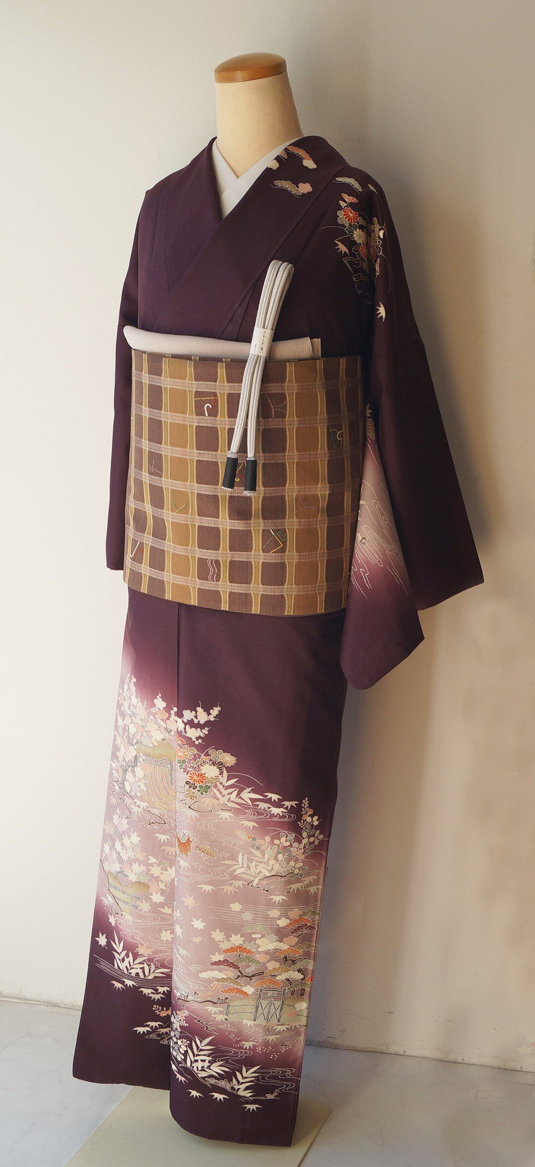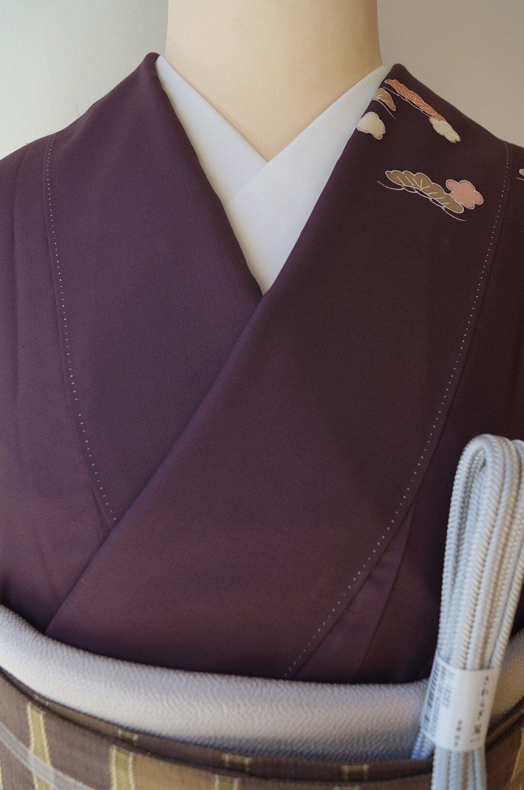 【袷】ボルドー色 茶屋辻文様 紬訪問着