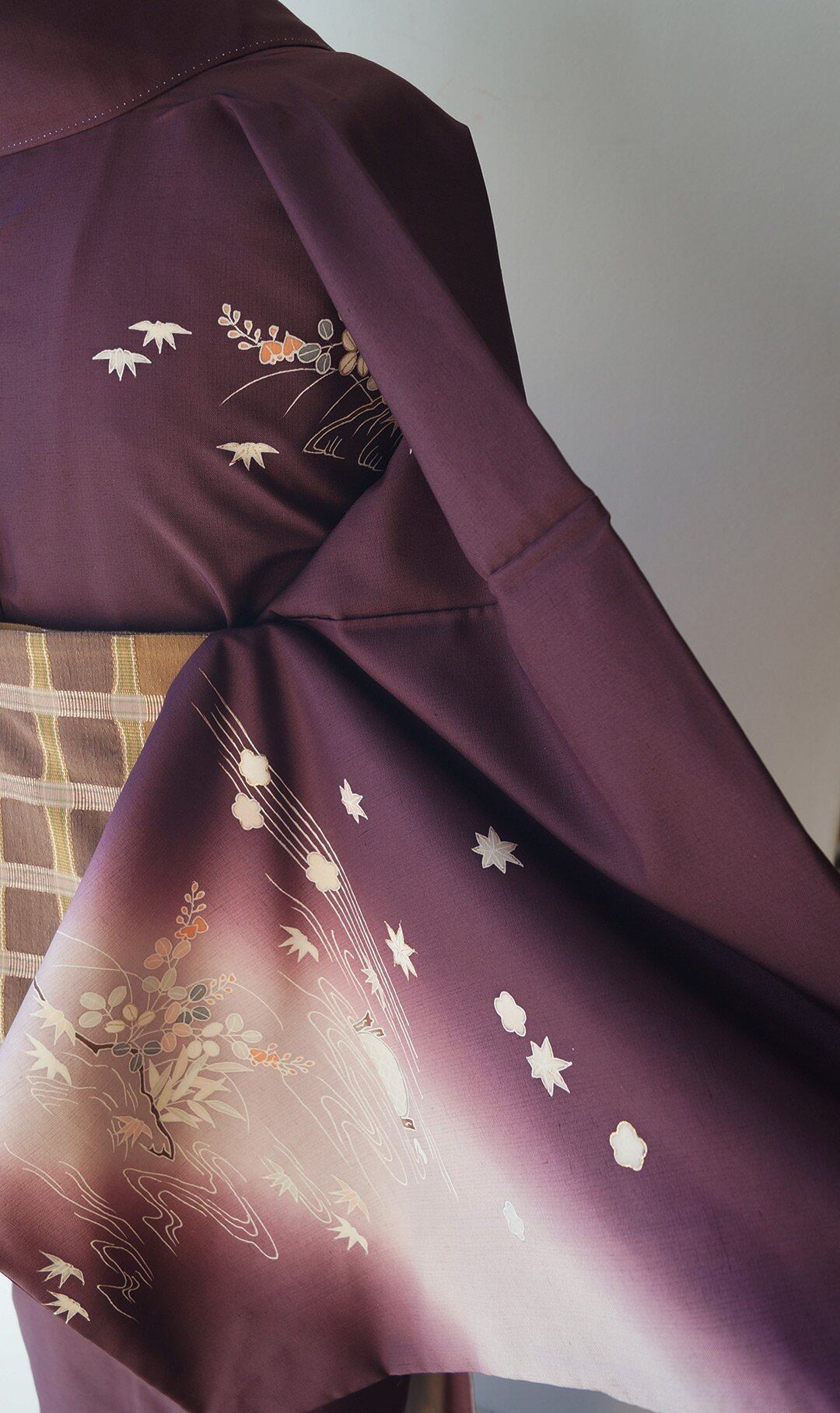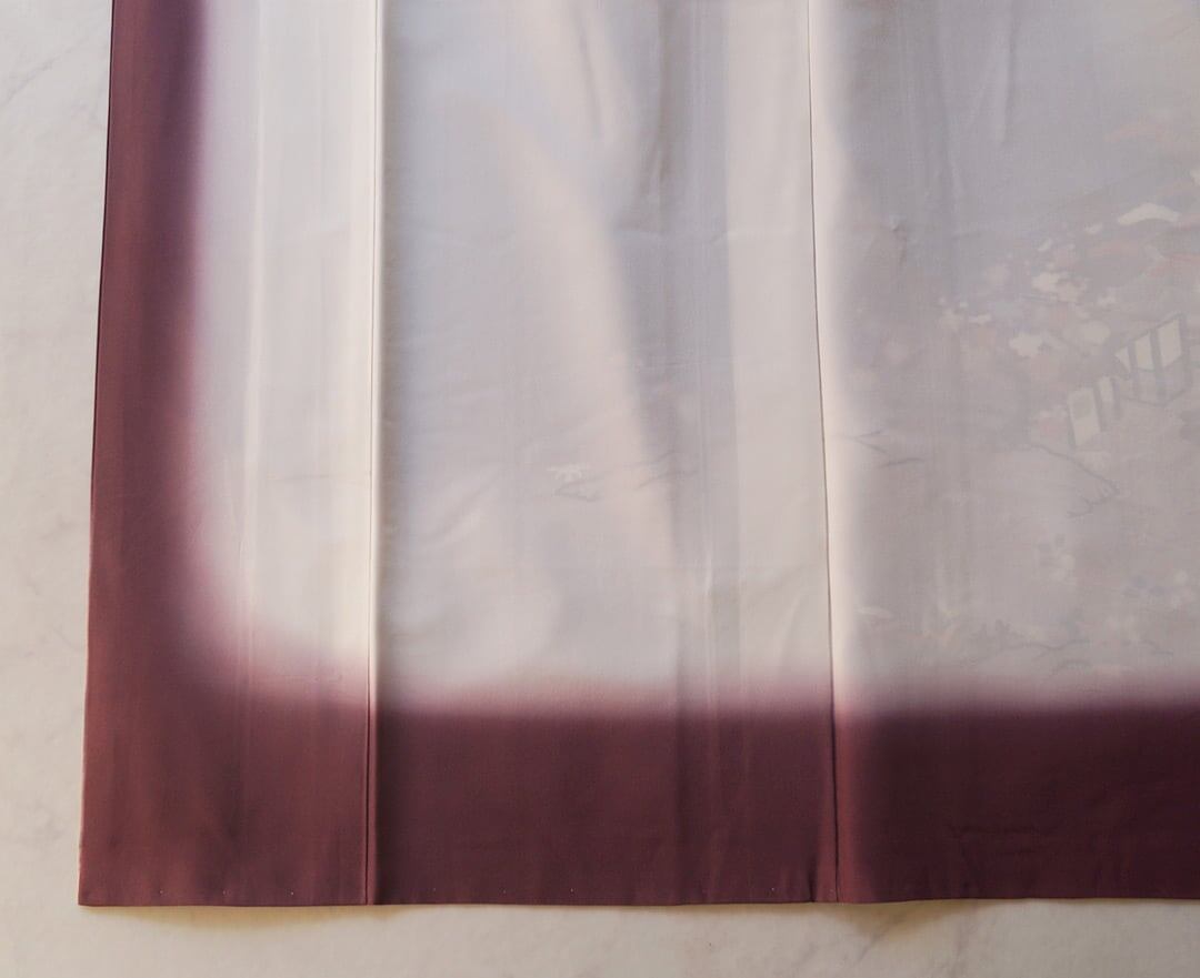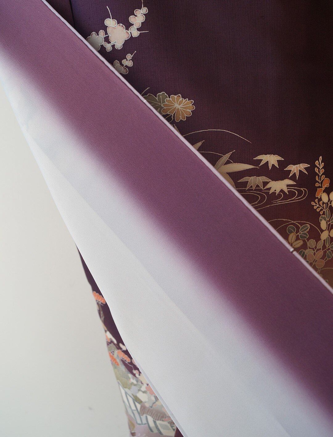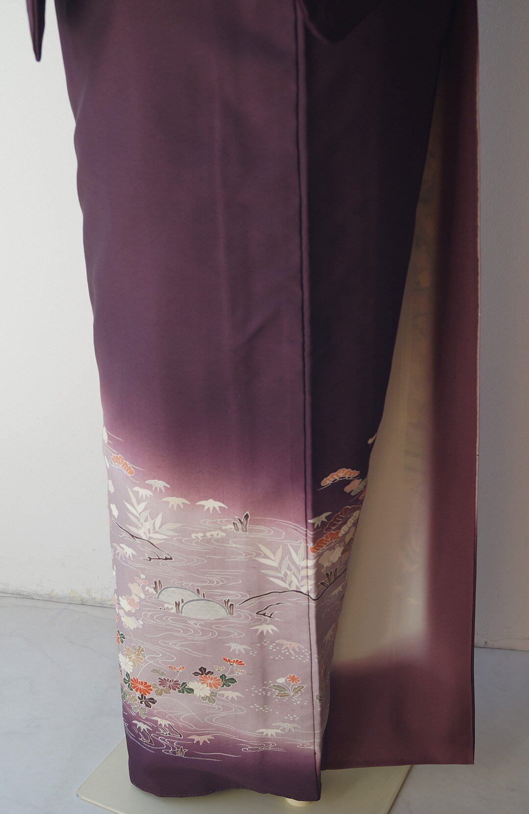 【袷】ボルドー色 茶屋辻文様 紬訪問着
