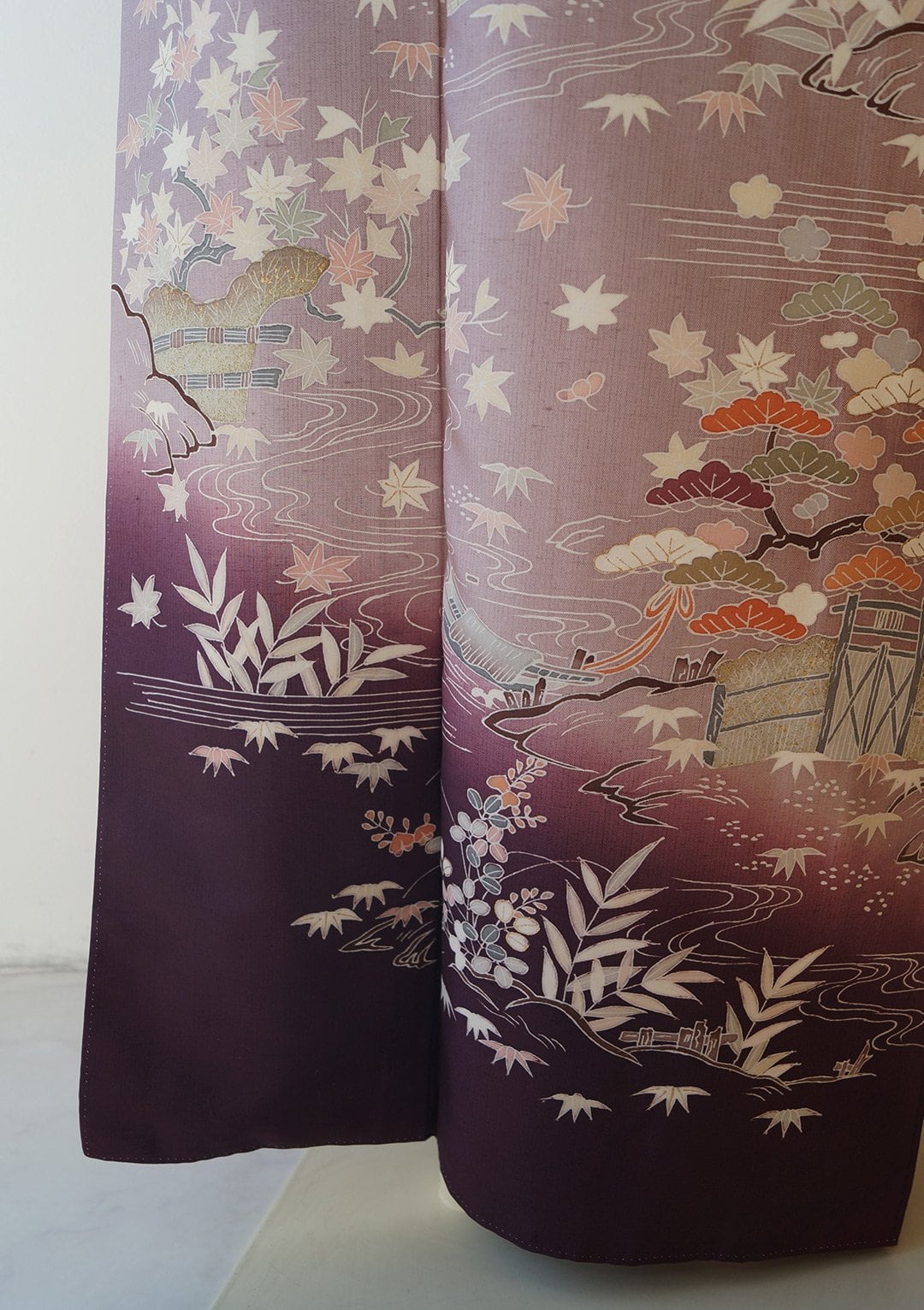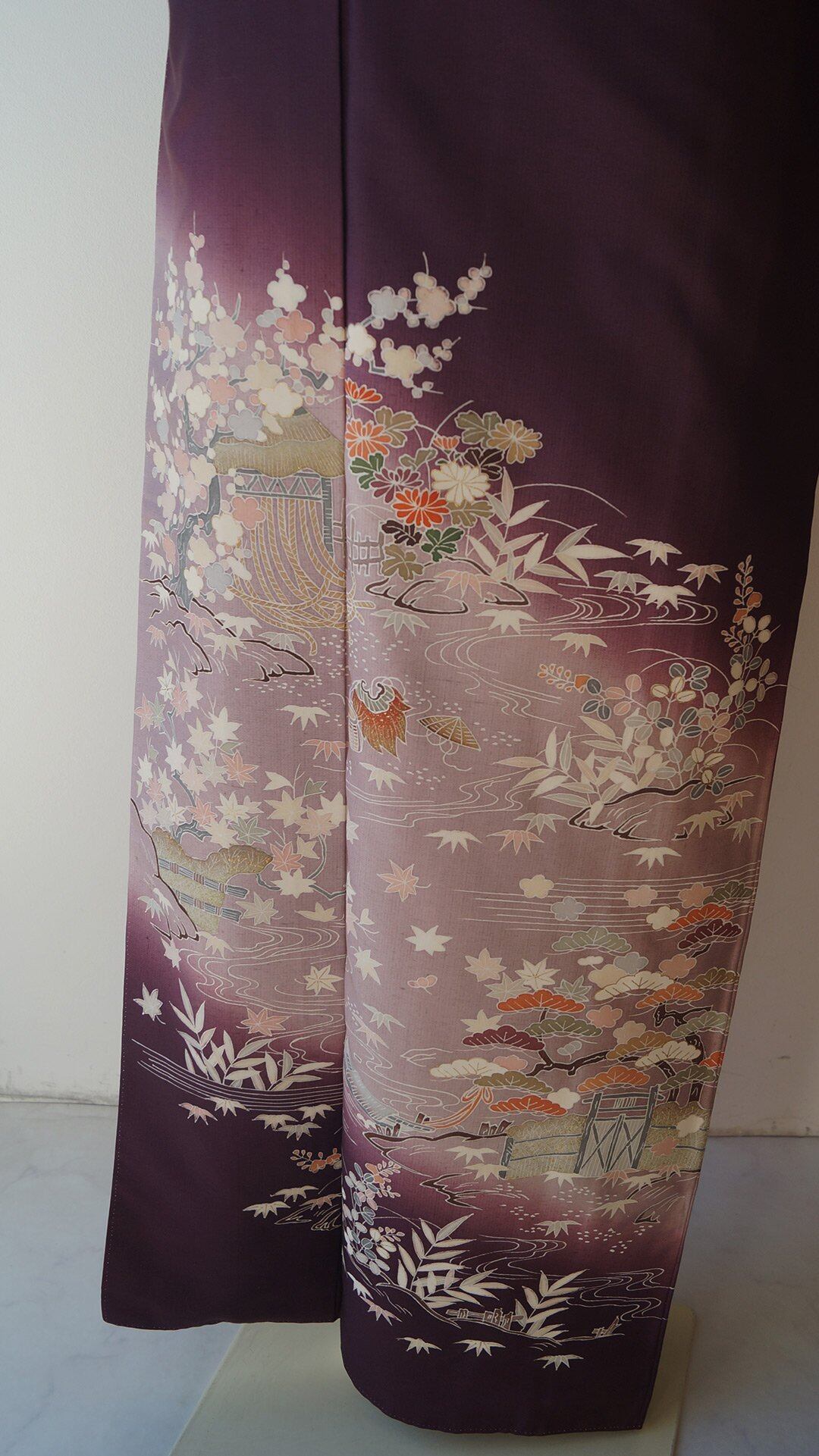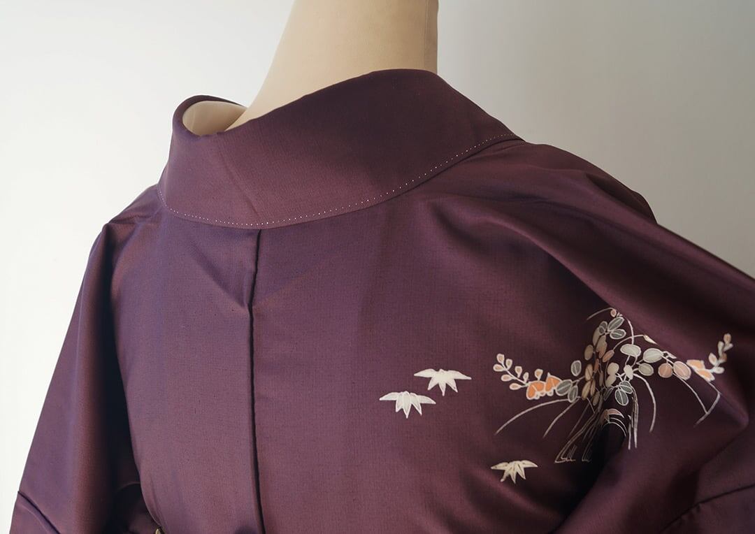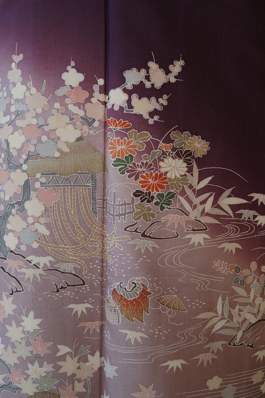 【袷】ボルドー色 茶屋辻文様 紬訪問着