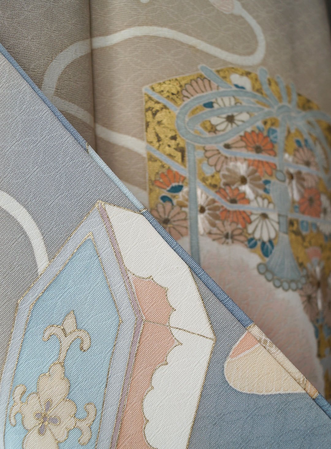 所々に刺繍や金彩が用いられ
