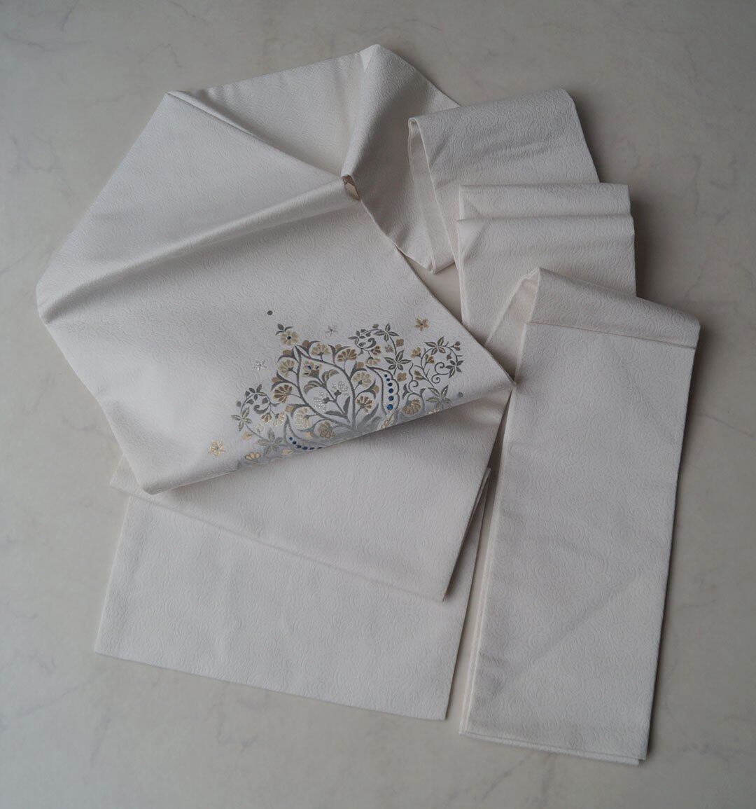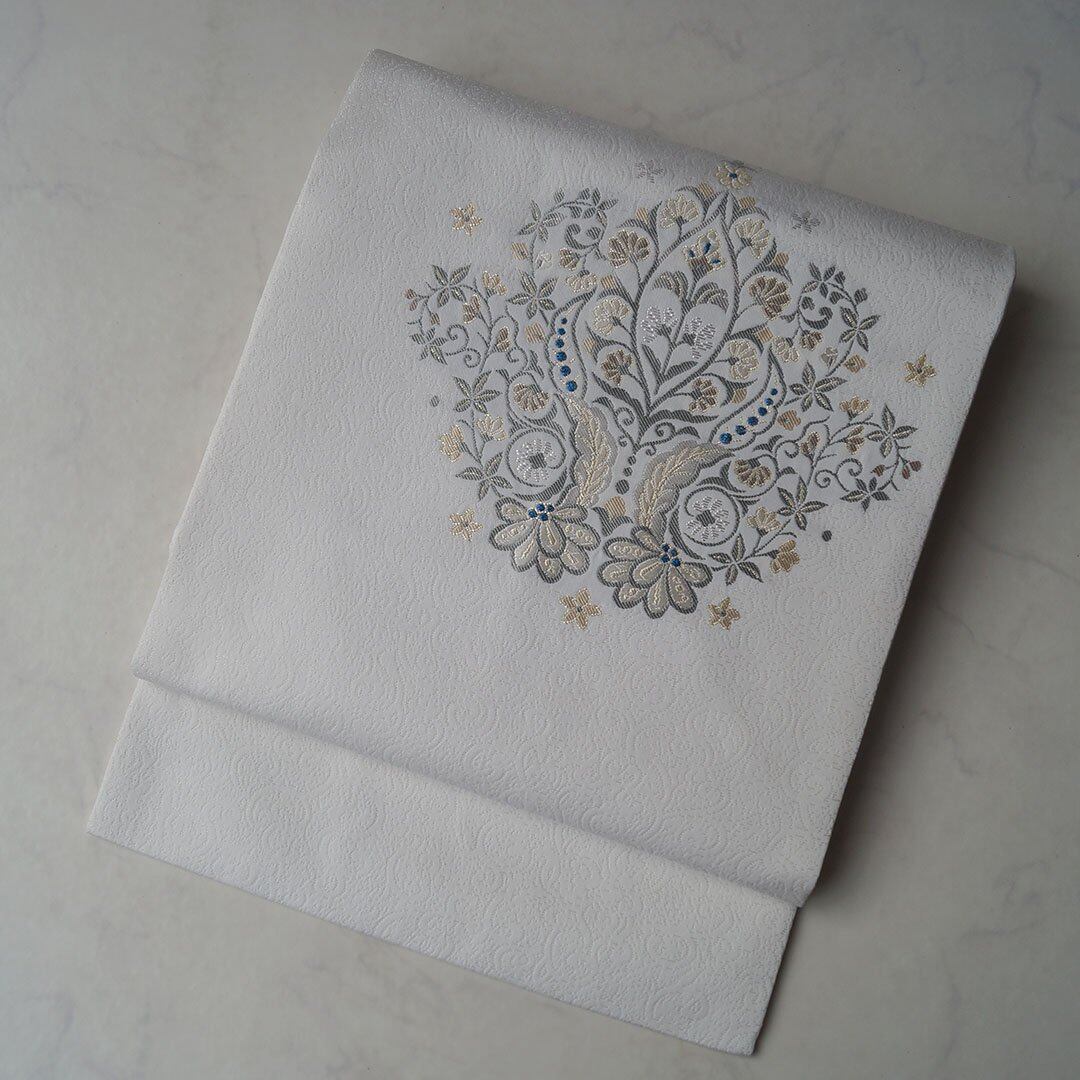 白地に文様は多彩なお色味や金糸、銀糸など