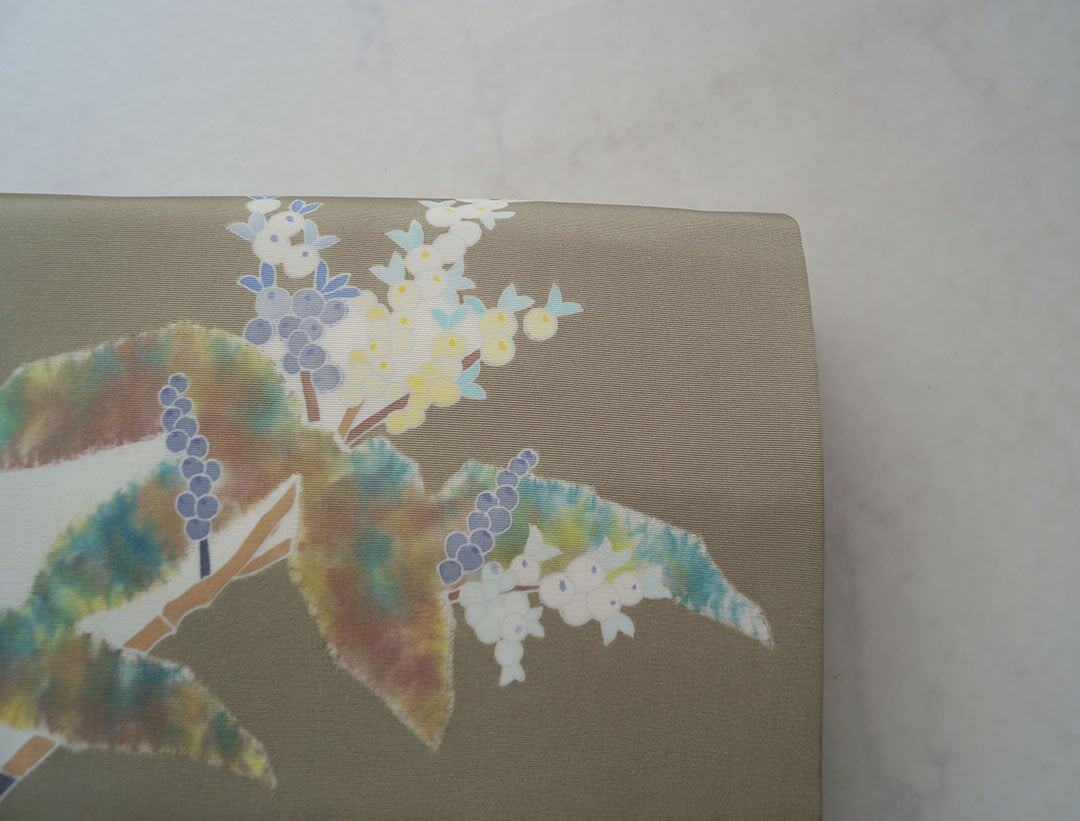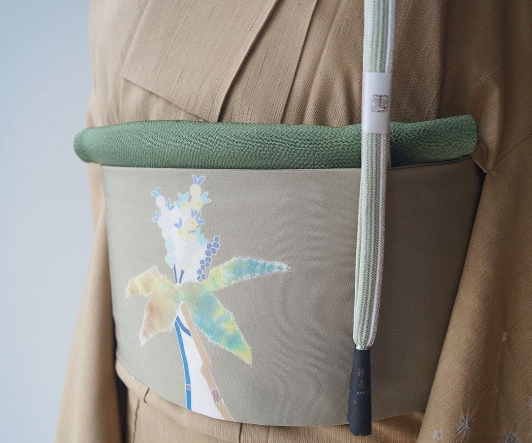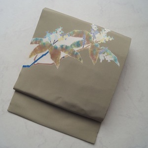 【なごや帯】灰汁色地 抽象枝花文 塩瀬なごや帯