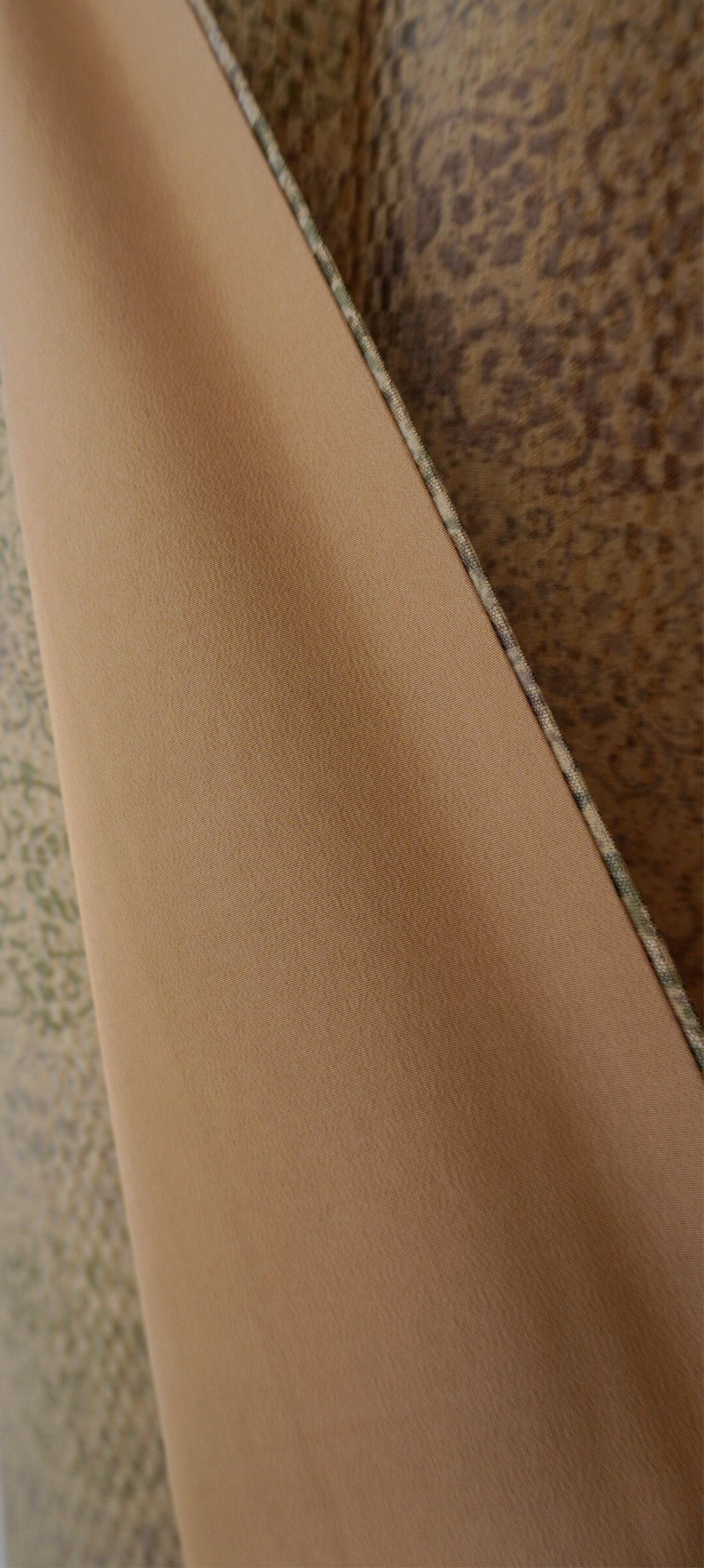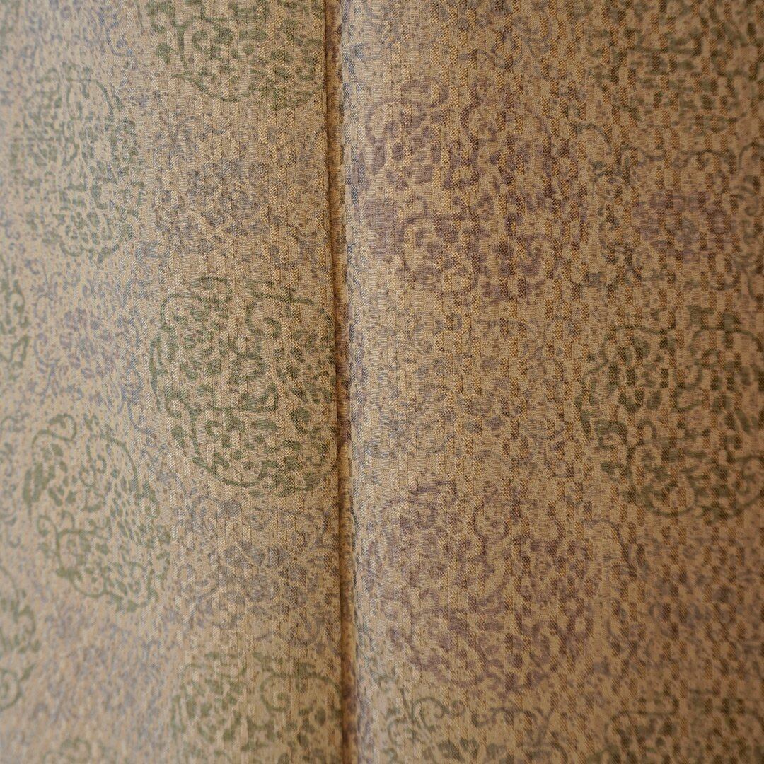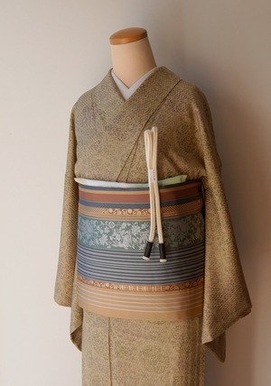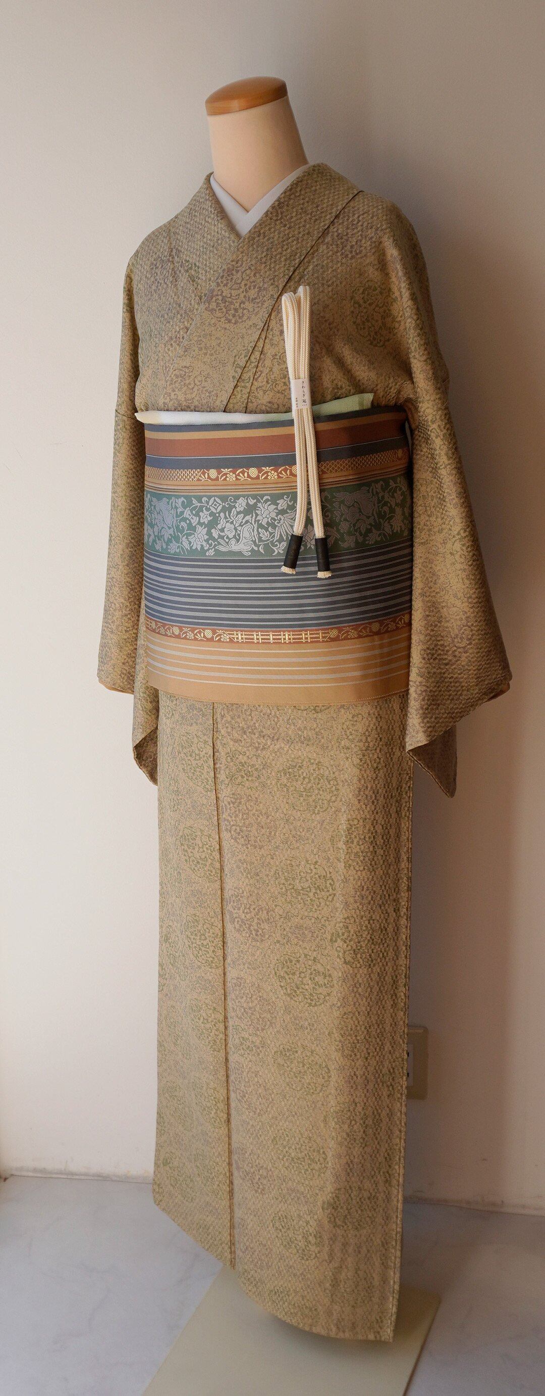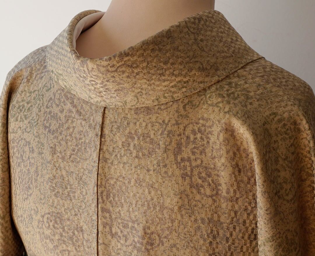 【袷】砂色地 市松地紋に花唐草文 小紋