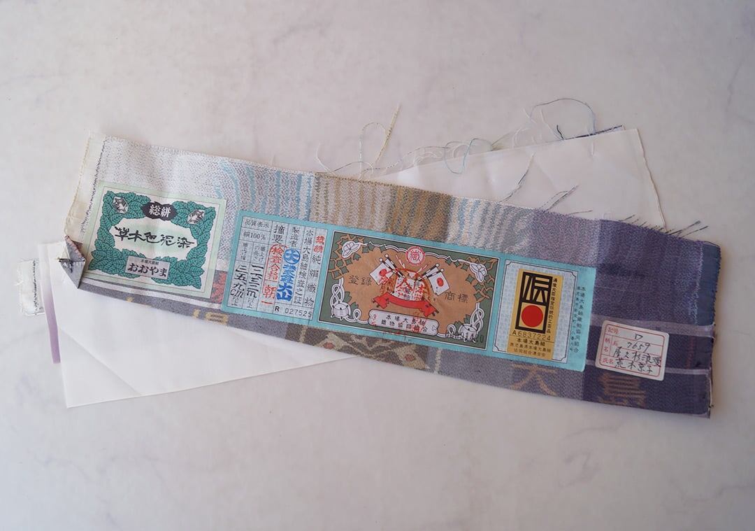 草木色泥染、本場大島紬の証紙付きです。