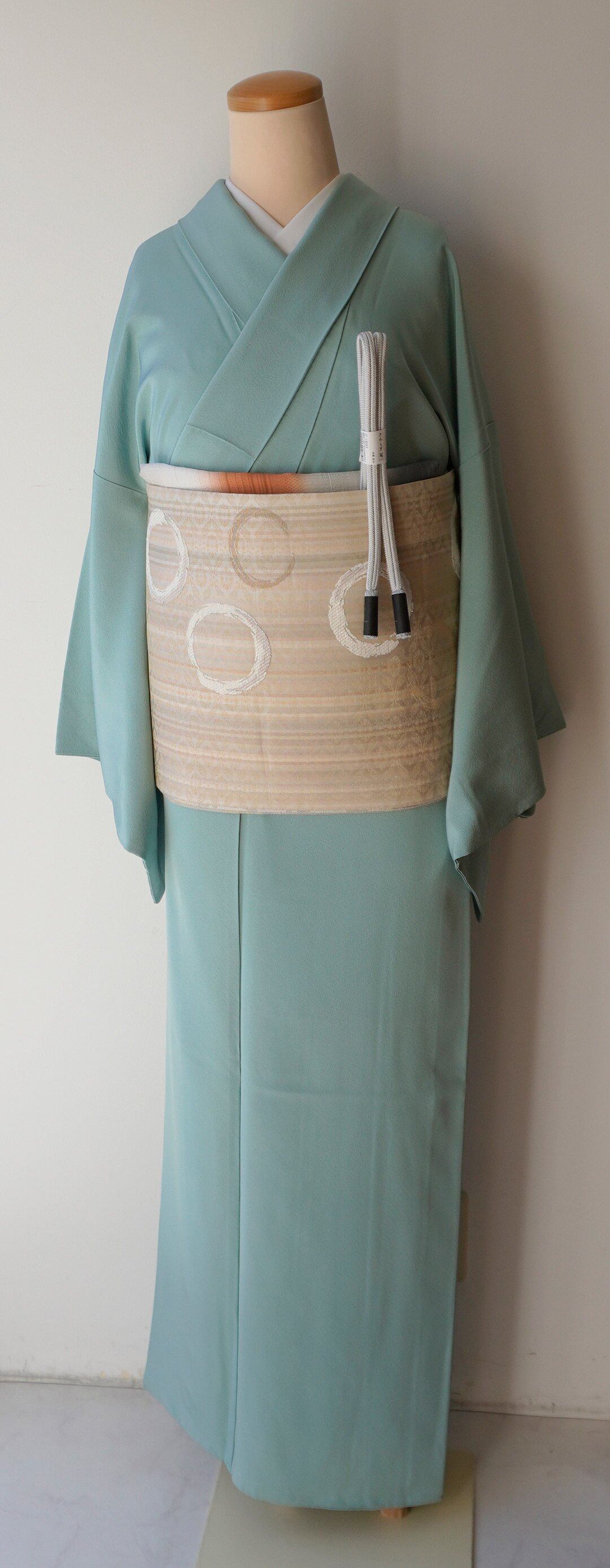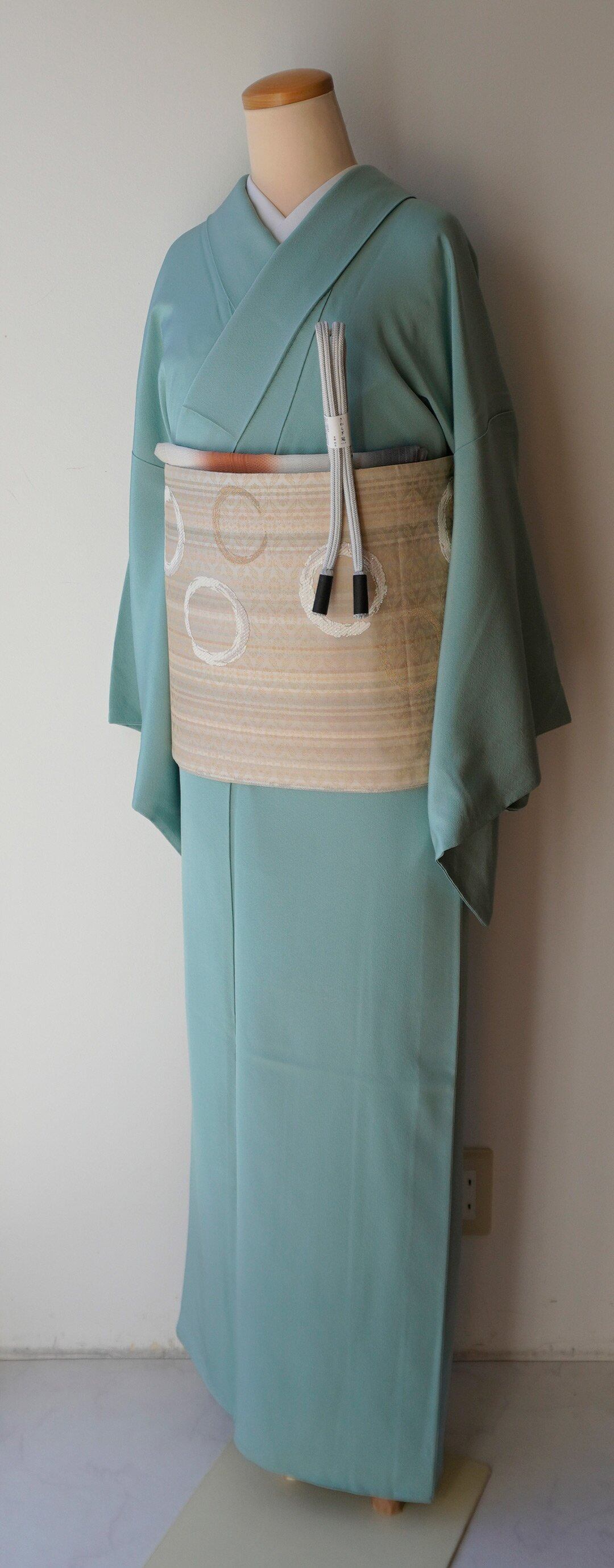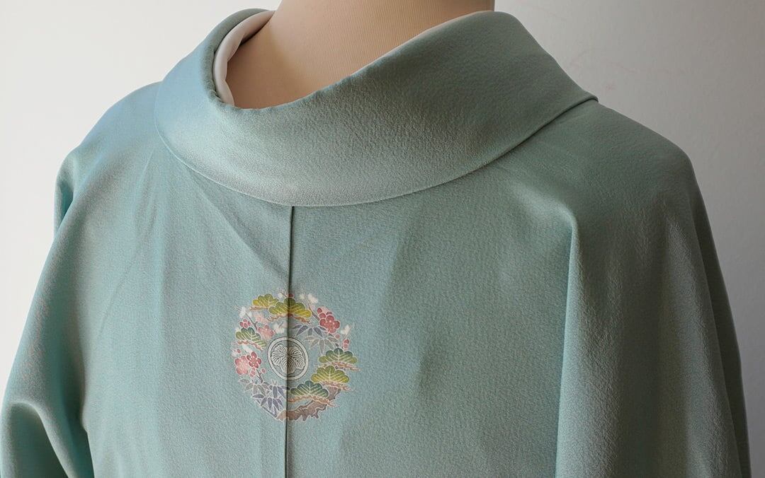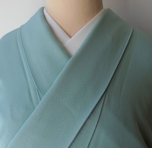 【袷】青竹色 一つ紋 色無地_2