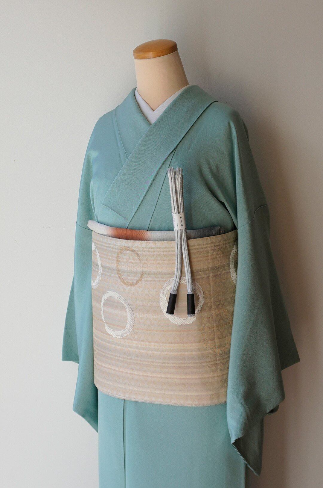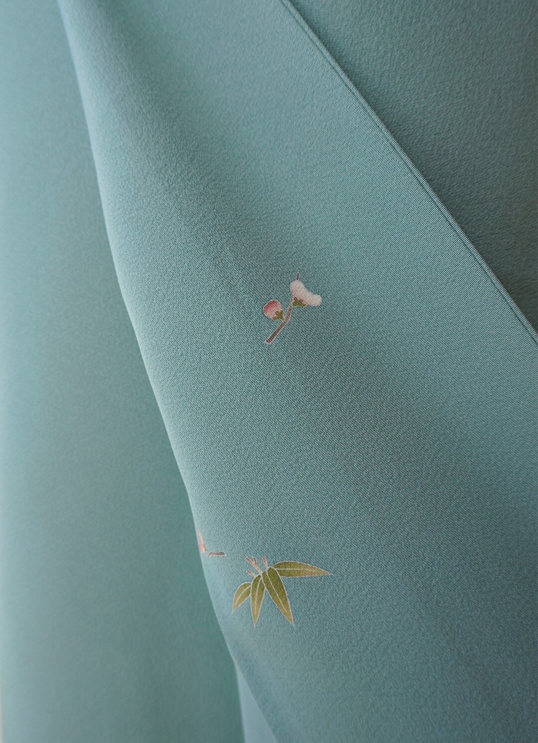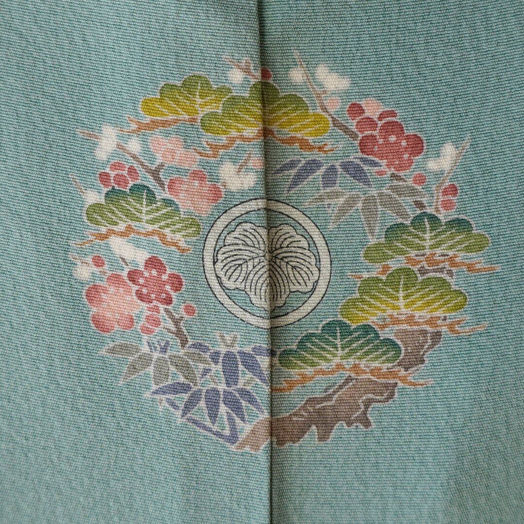 【袷】青竹色 一つ紋 色無地_2