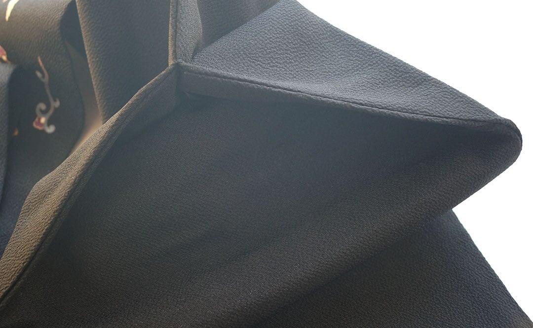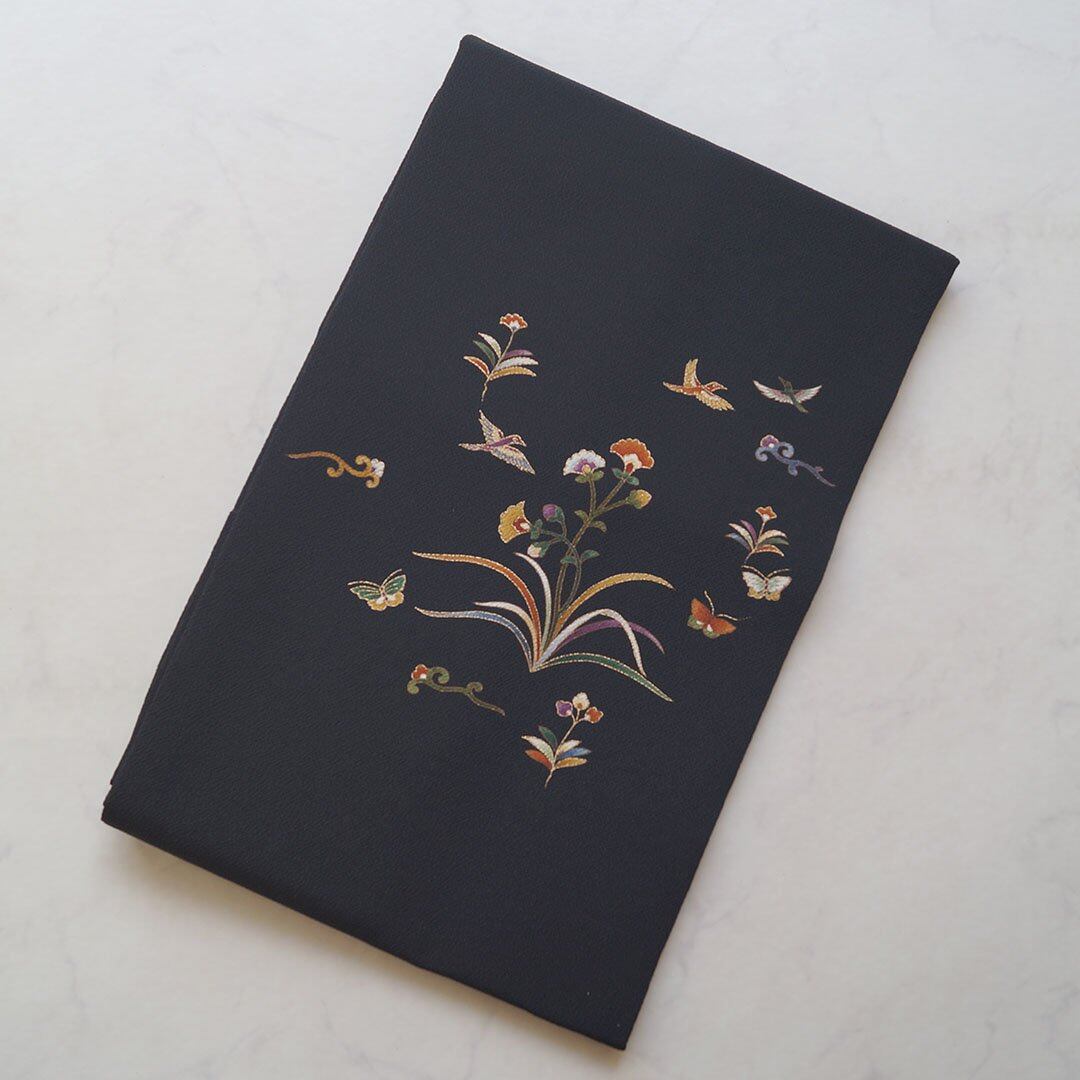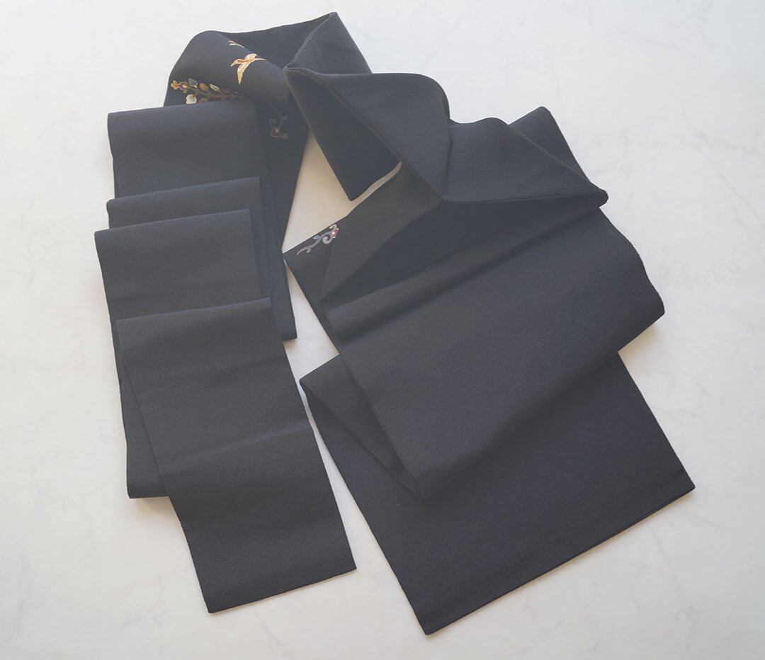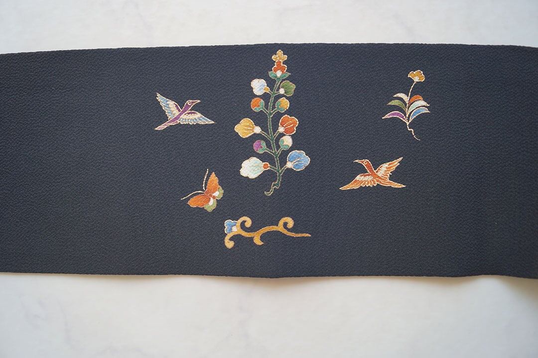 【なごや帯】黒地 抽象花文 縮緬なごや帯