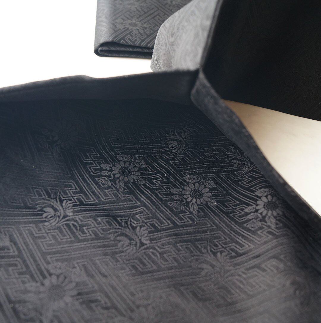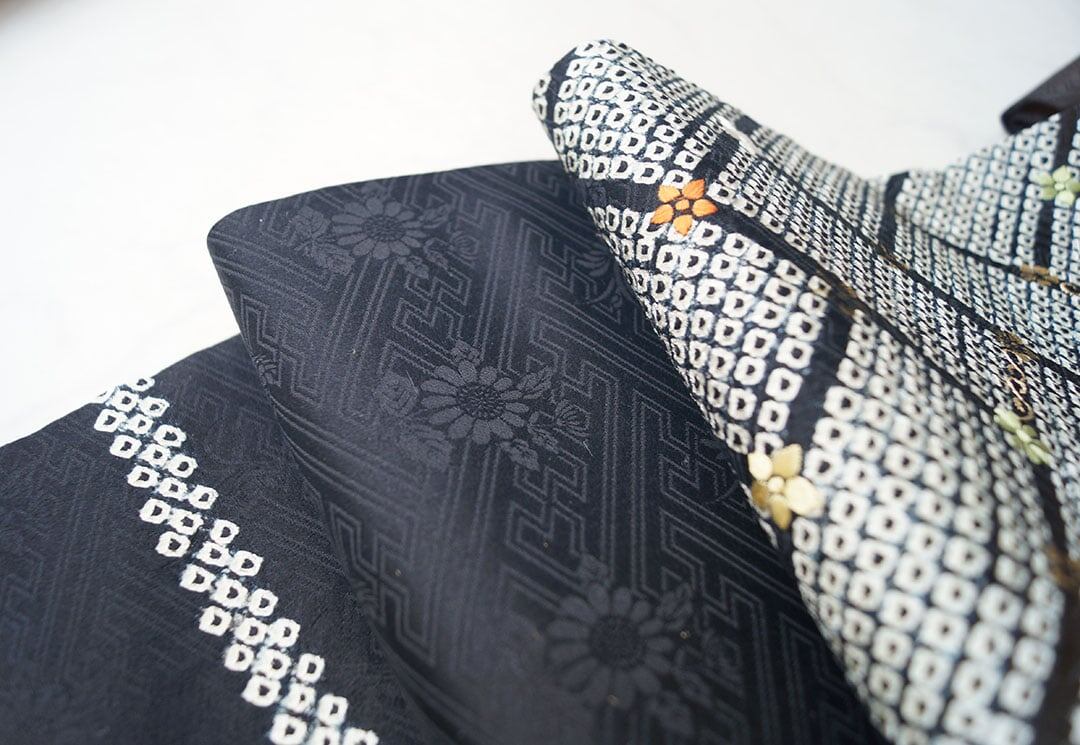 【なごや帯】黒色地 疋田絞りに花文刺繍 なごや帯