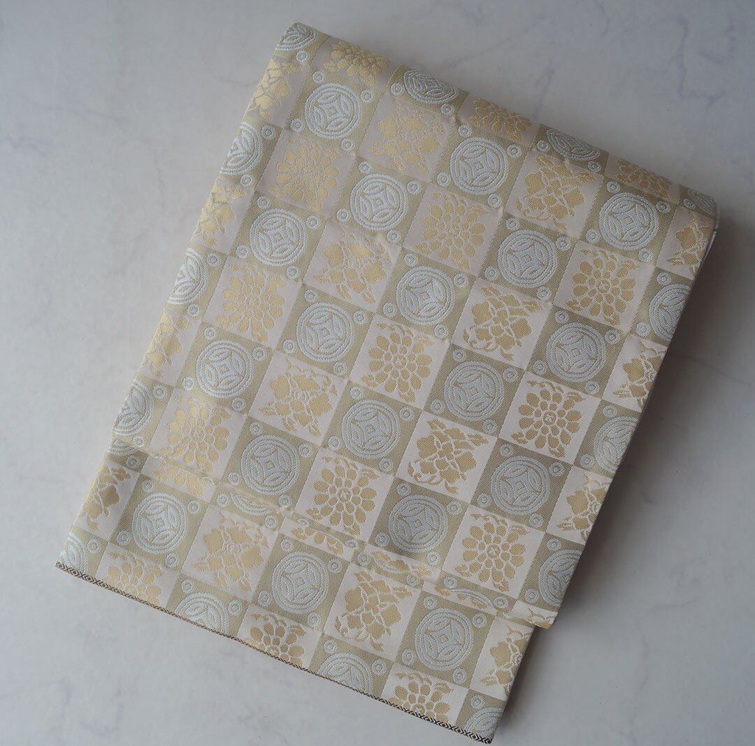 【ふくろ帯】たつむら謹製 クリーム色系 遠州七宝文 六通 ふくろ帯