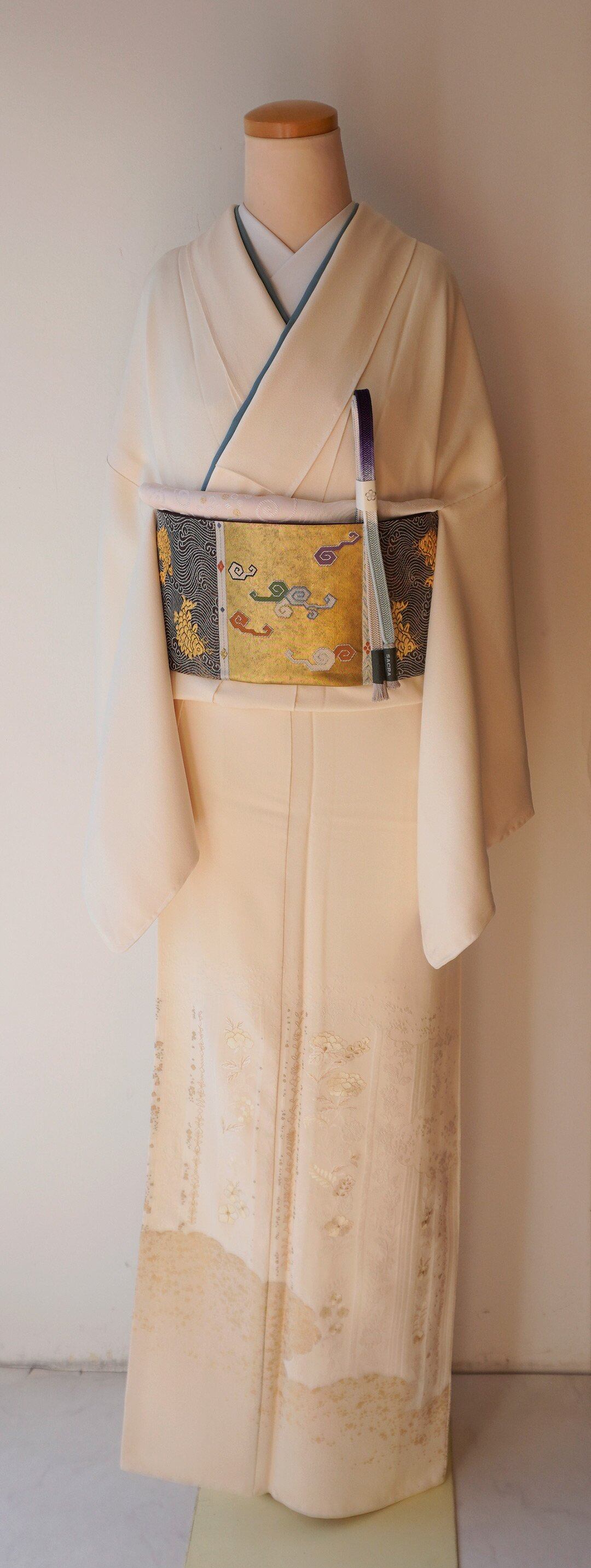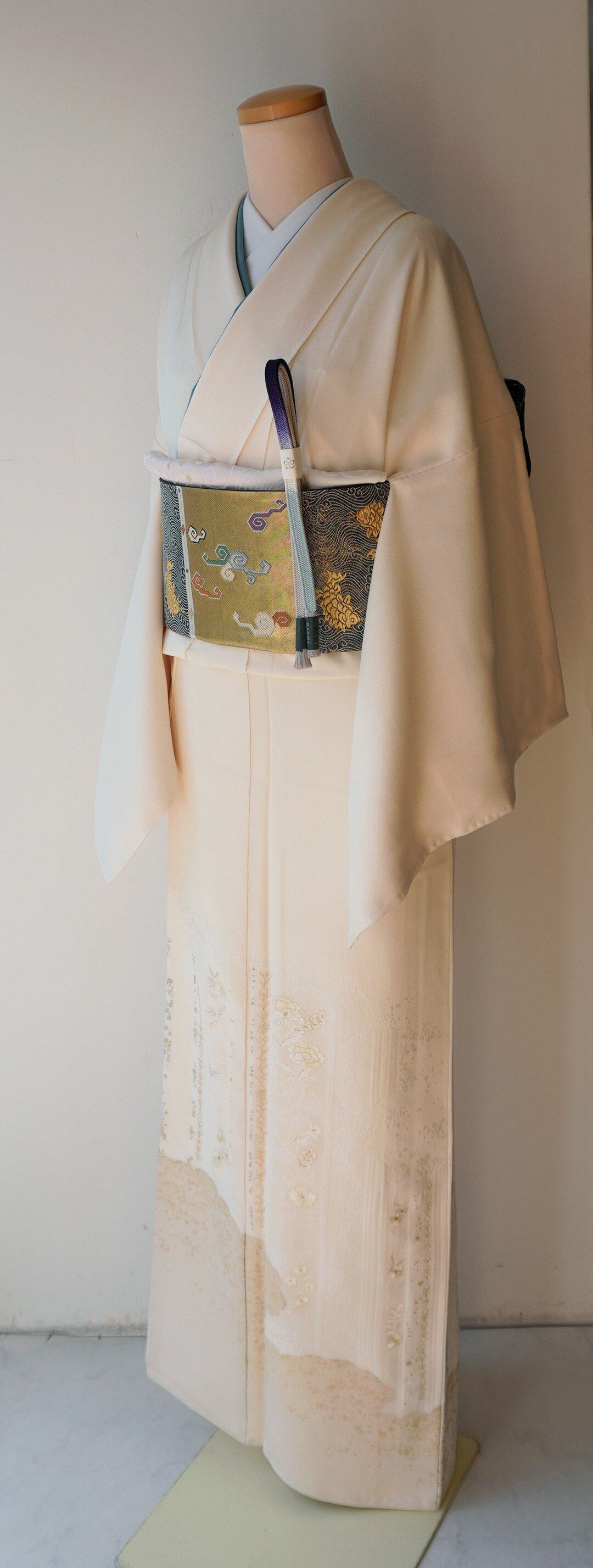 極淡い生成り色の地の訪問着です。