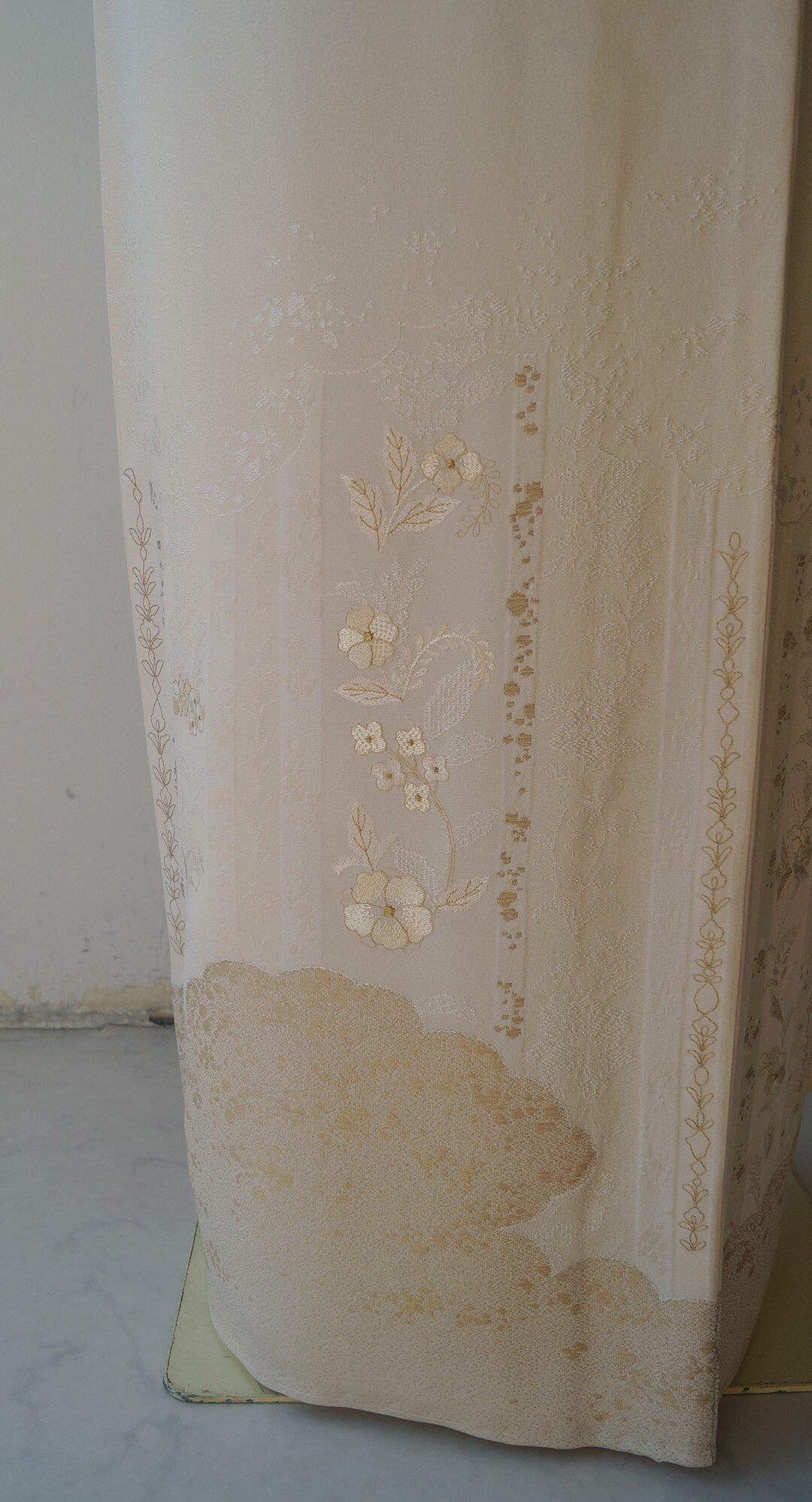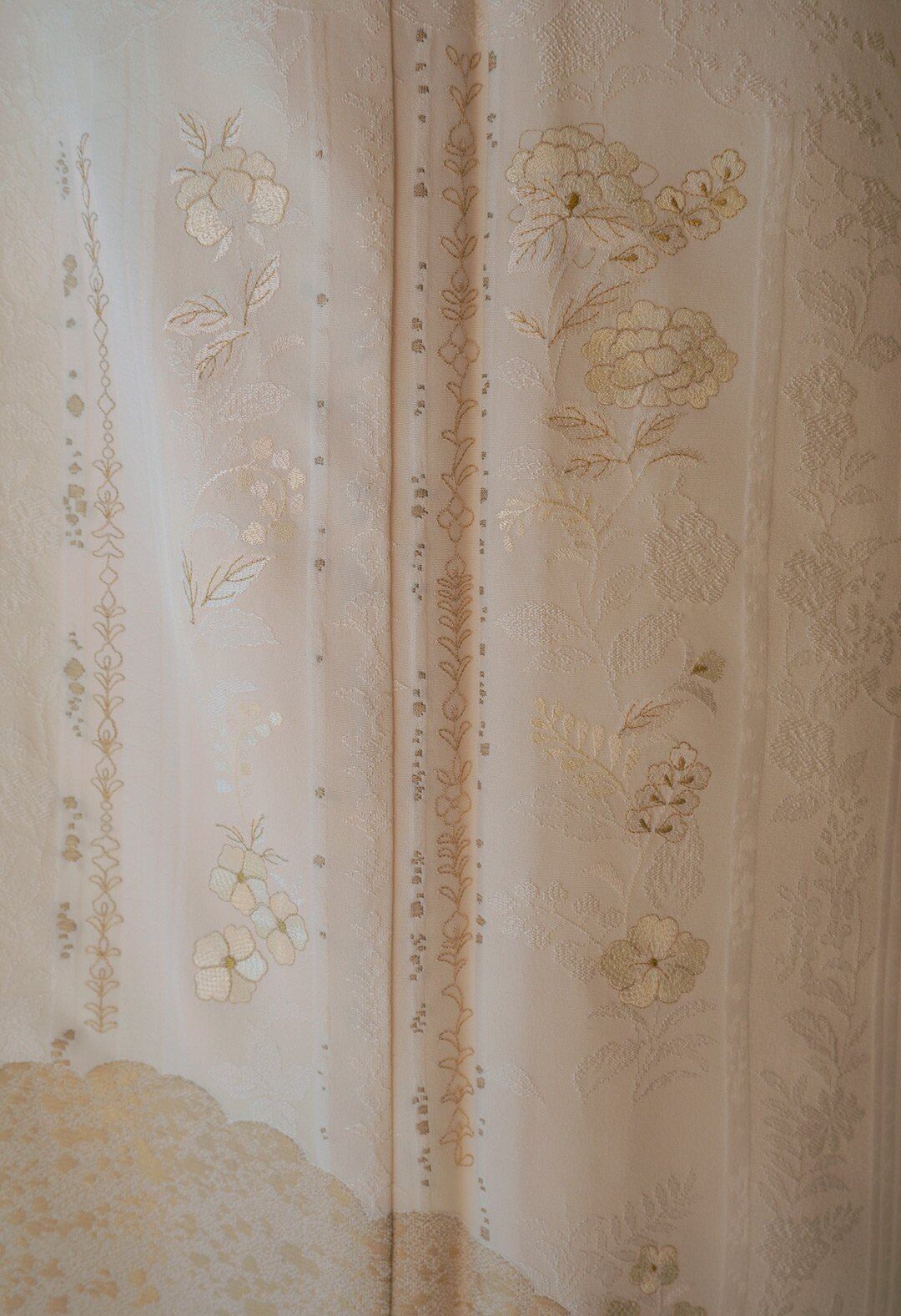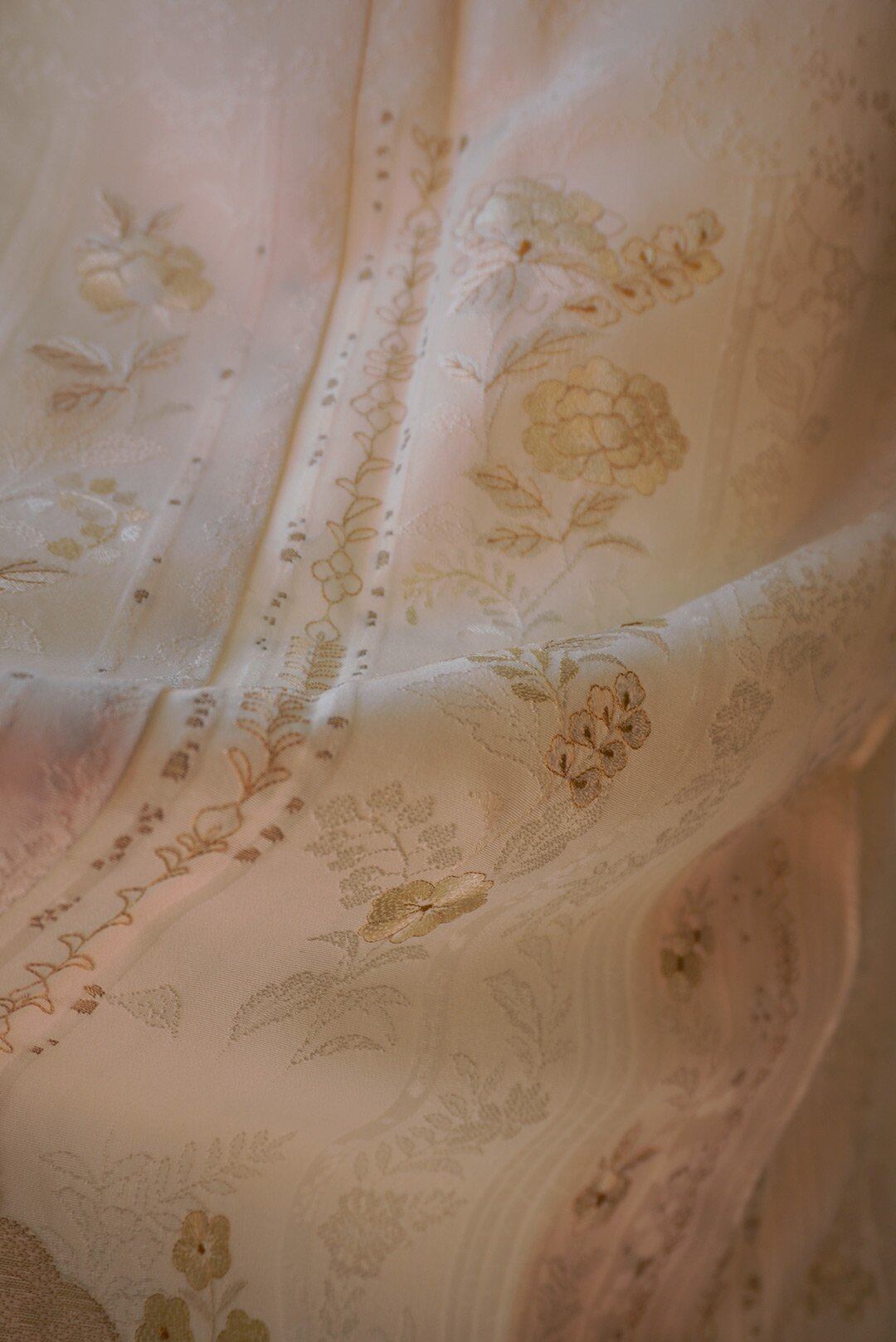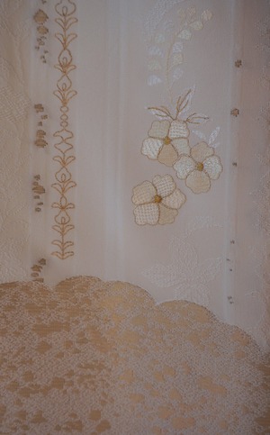 繊細な花の意匠に刺繍、