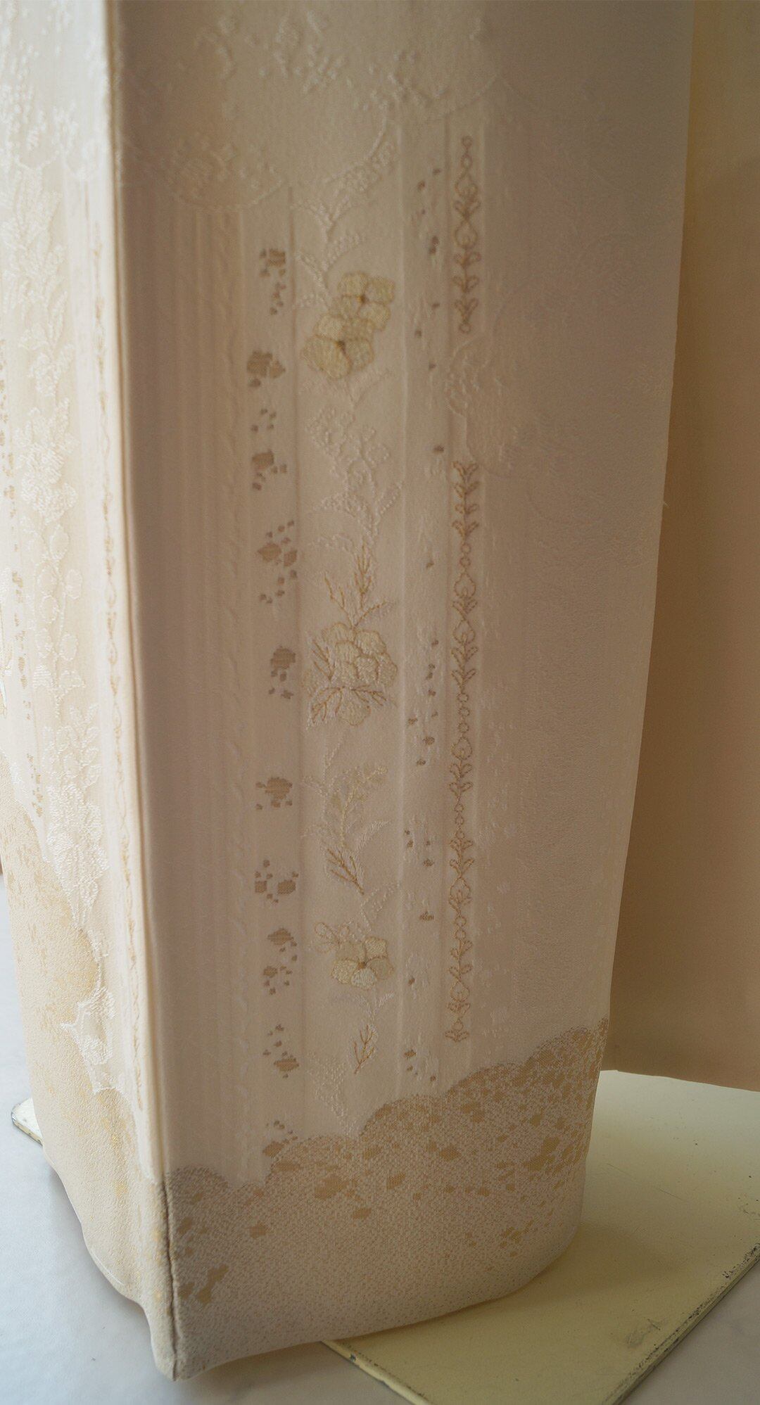 【袷】胡粉色地 花刺繍文 訪問着
