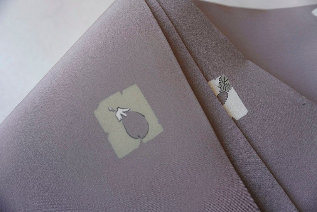 【半幅帯】二代目・川村久太郎作生地使用 野菜文 仕立て下ろし半幅帯