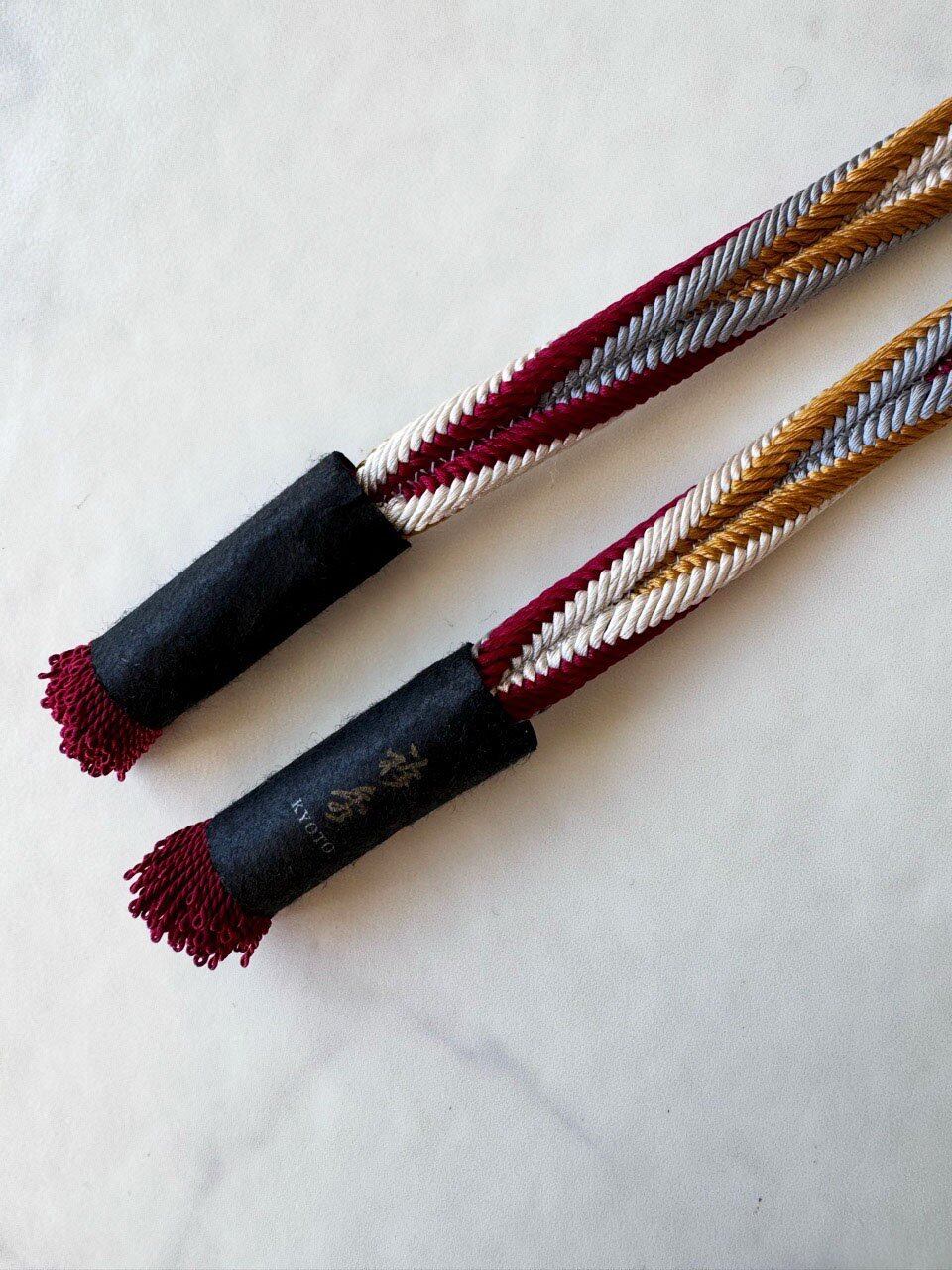 締めていただける洋角組の四色ひねりの帯締め。