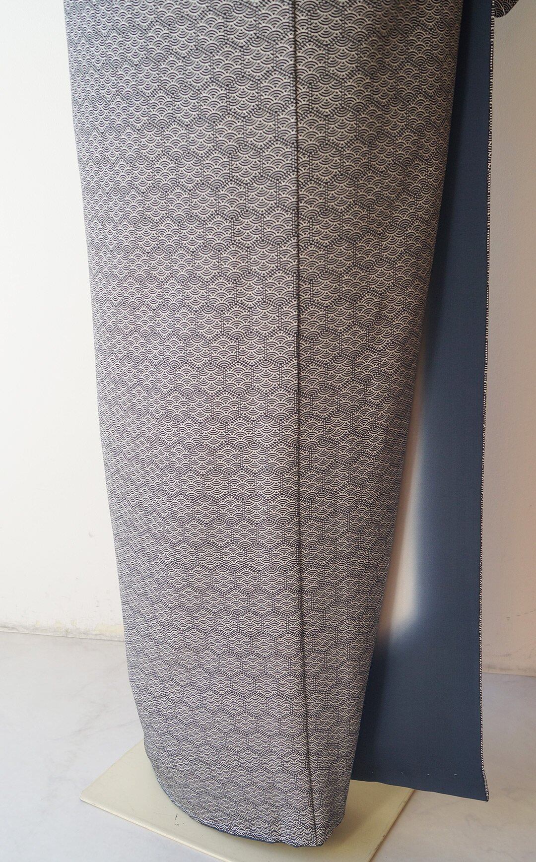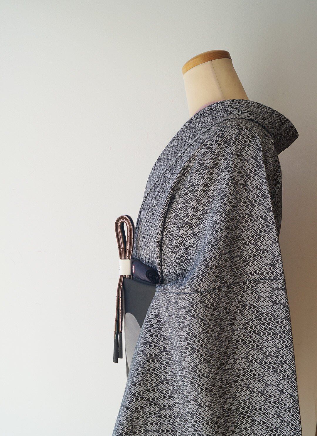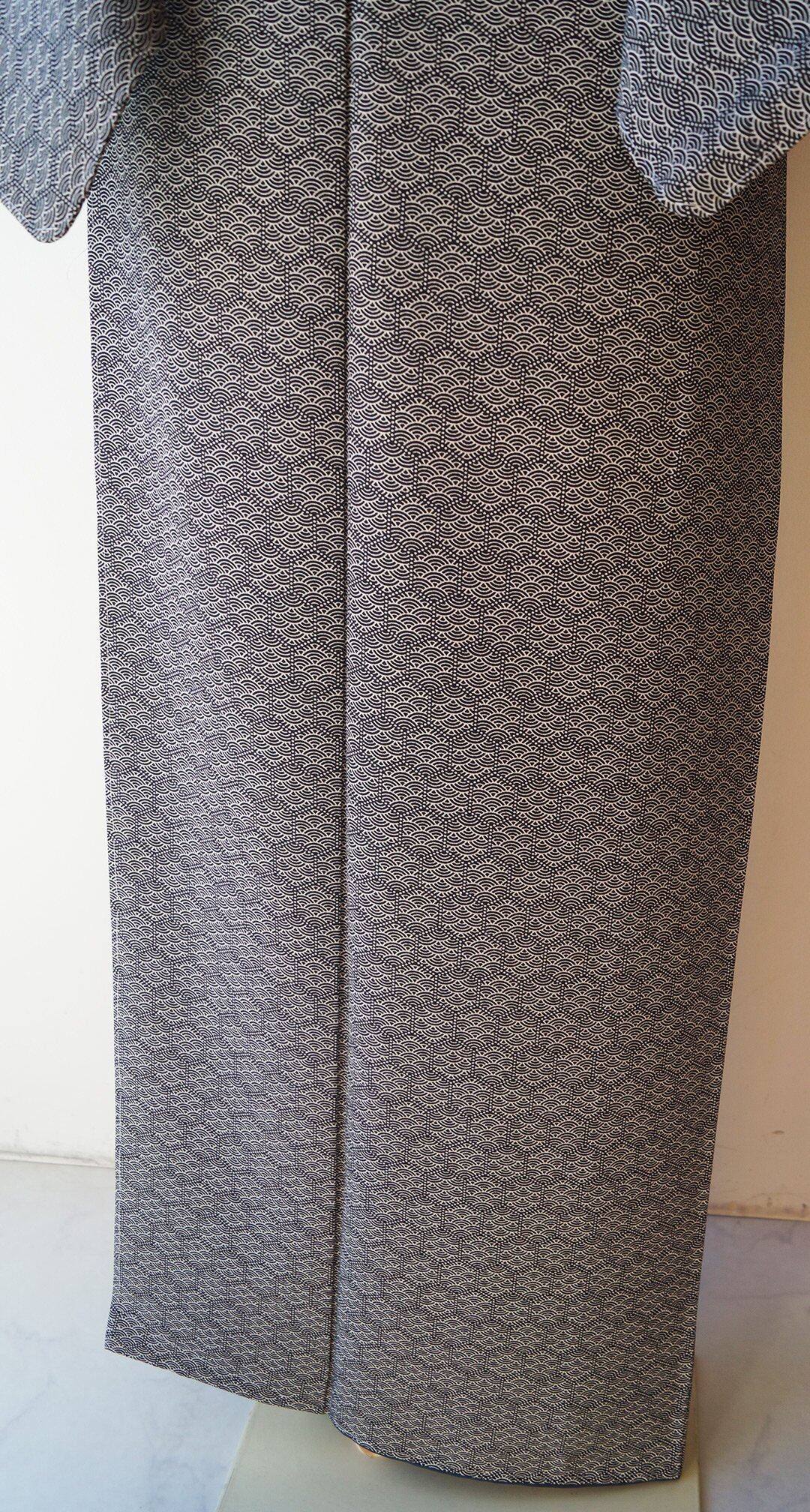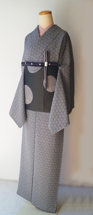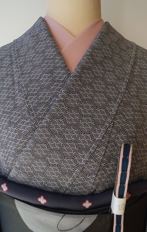 【袷】モノトーン系 亀甲に青海波 小紋