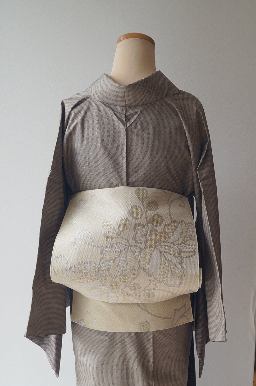 【なごや帯】生成り色地 桐文 なごや帯