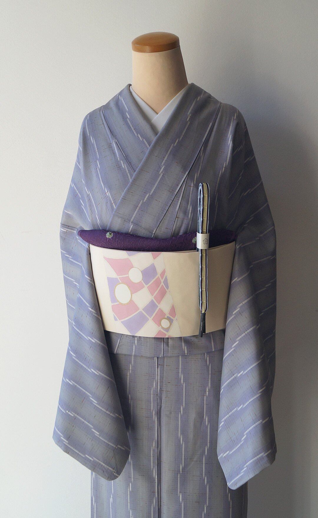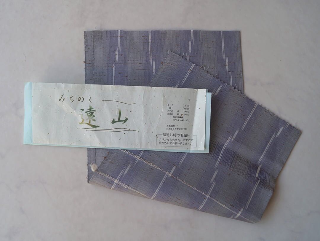 淡い青紫の縞が織り出された