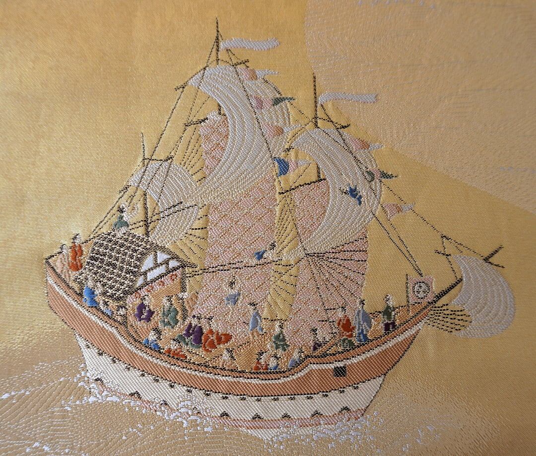 【ふくろ帯】金地 帆船文 ふくろ帯