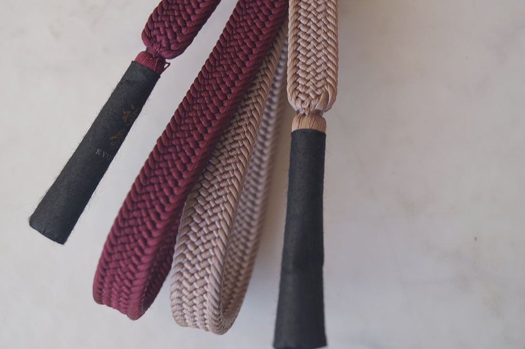 【衿秀・帯締め】葡萄茶濃紅色×胡桃染色 内記二色ぼかし 撚り房帯締め No.241117②