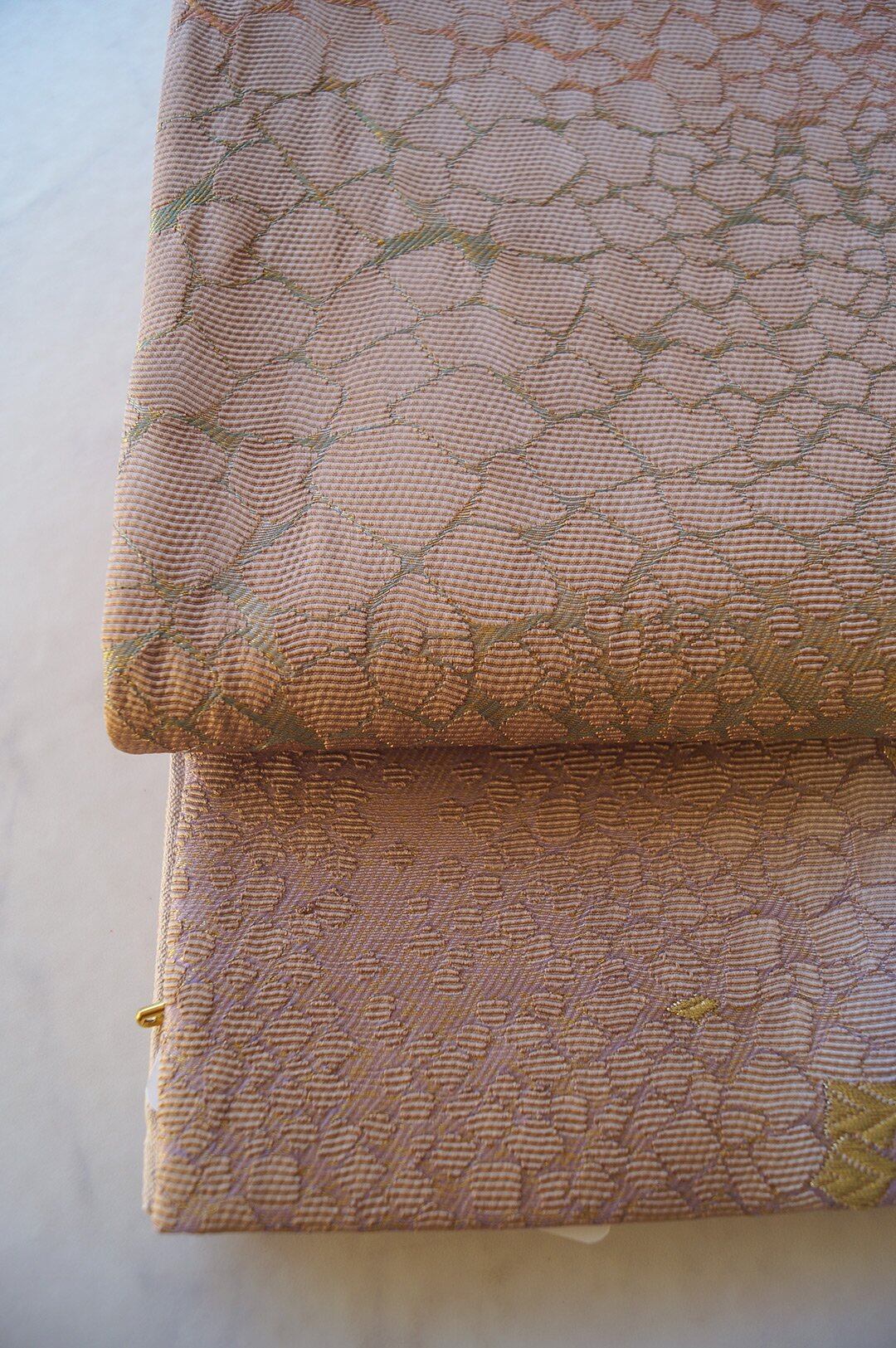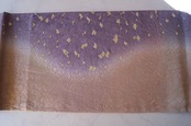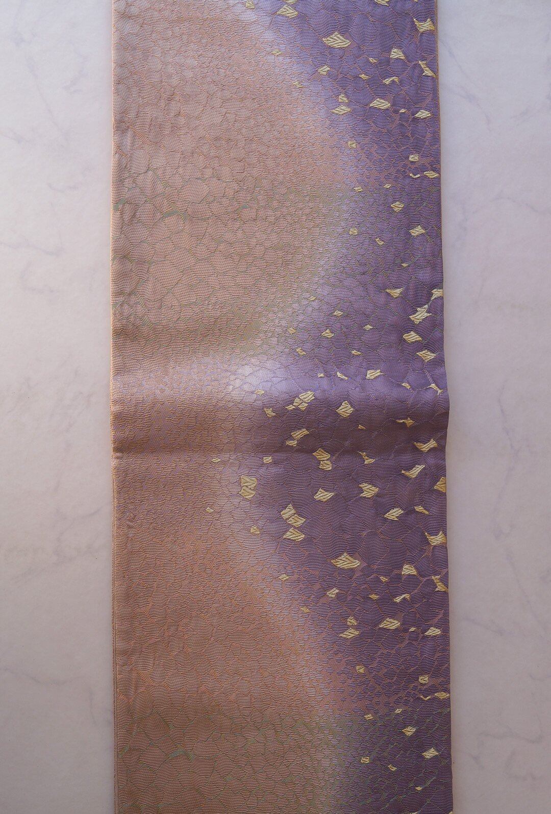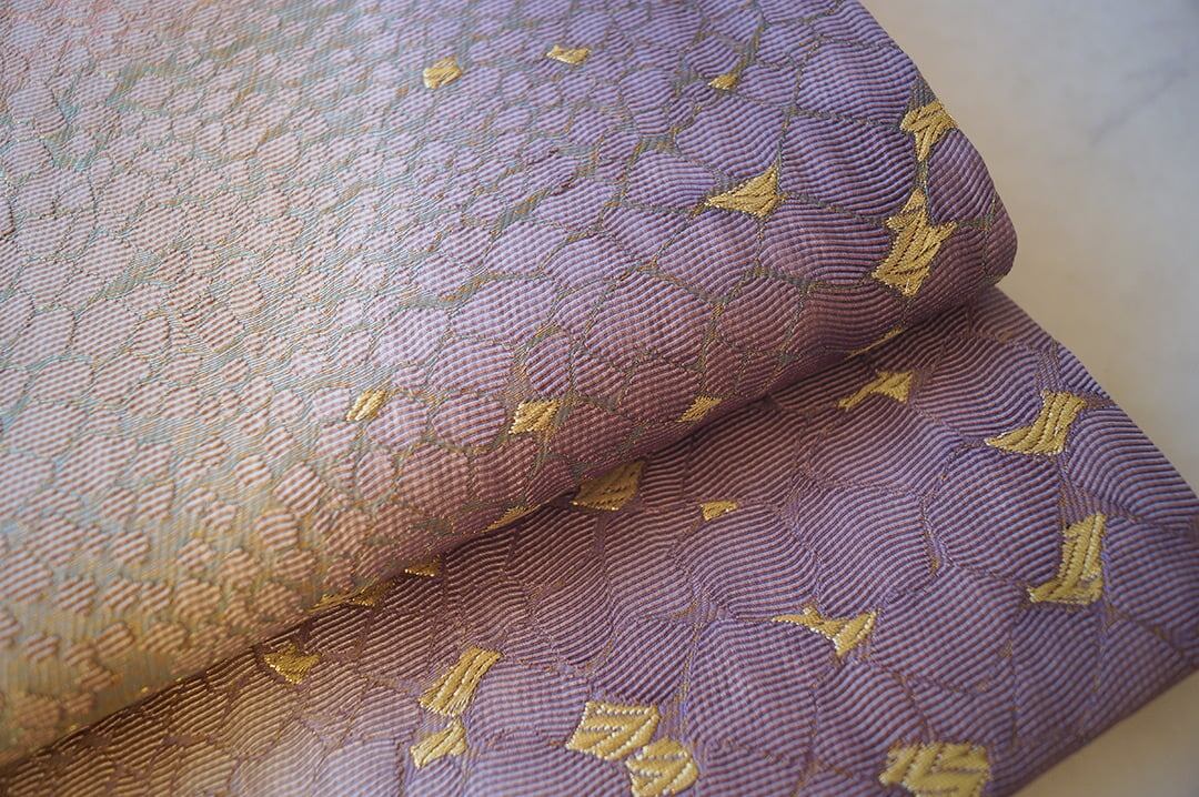 【ふくろ帯】西陣タケジ織物 薄柿色×葡萄色暈かし 氷割れ文 ふくろ帯