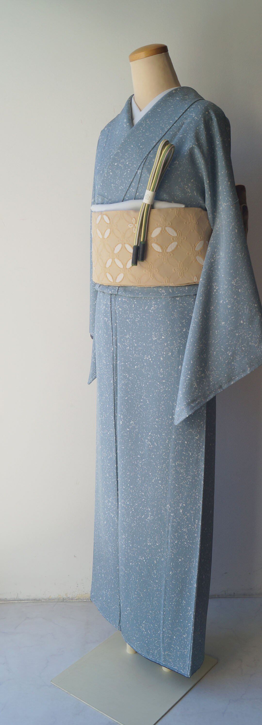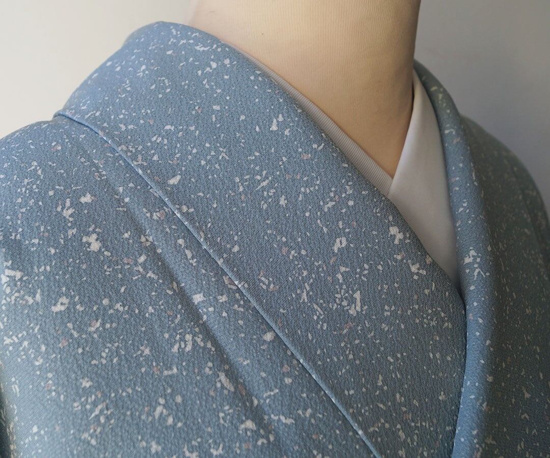 【袷】浅縹色 松煙臈纈染 小紋