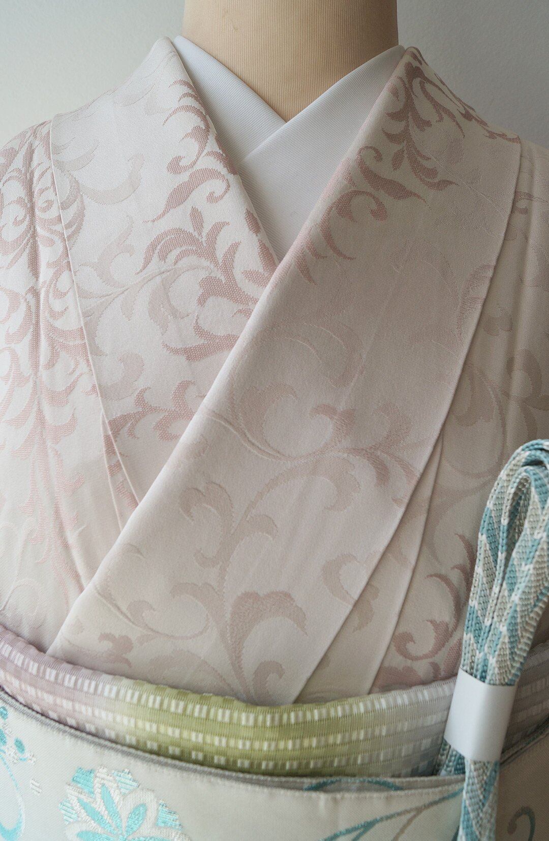 【袷】シルバーピンク アラベスク文様 小紋 トール&ゆとりサイズ