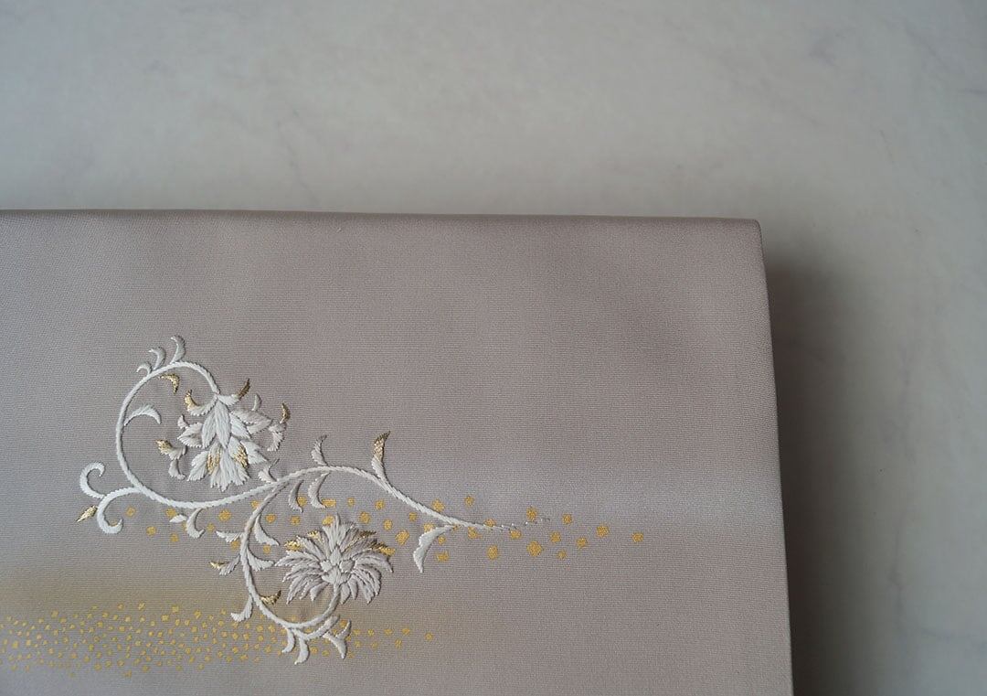 その上に繊細に施された花刺繍と