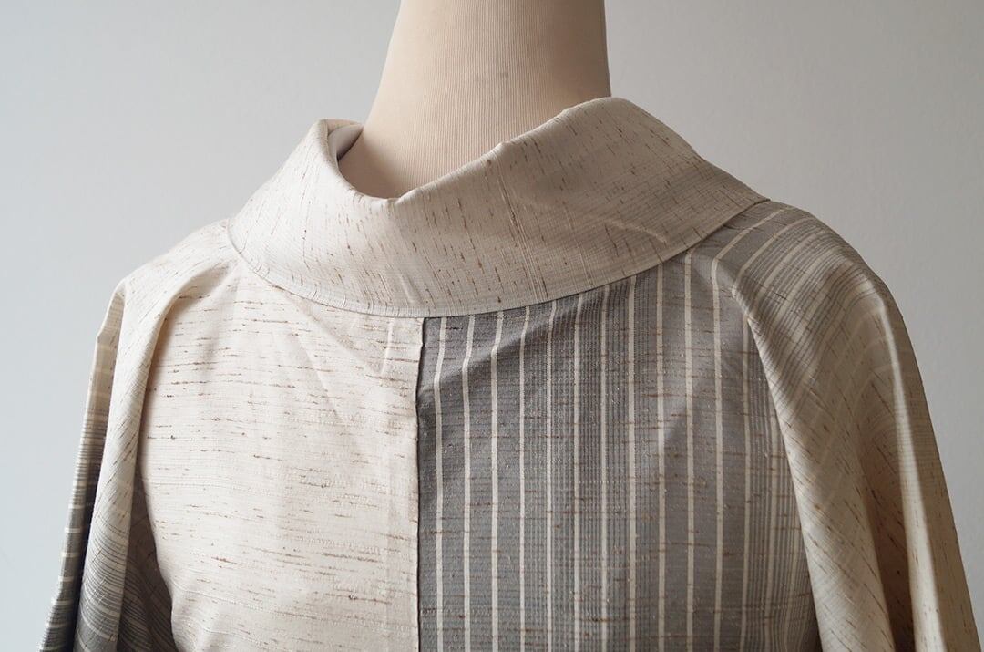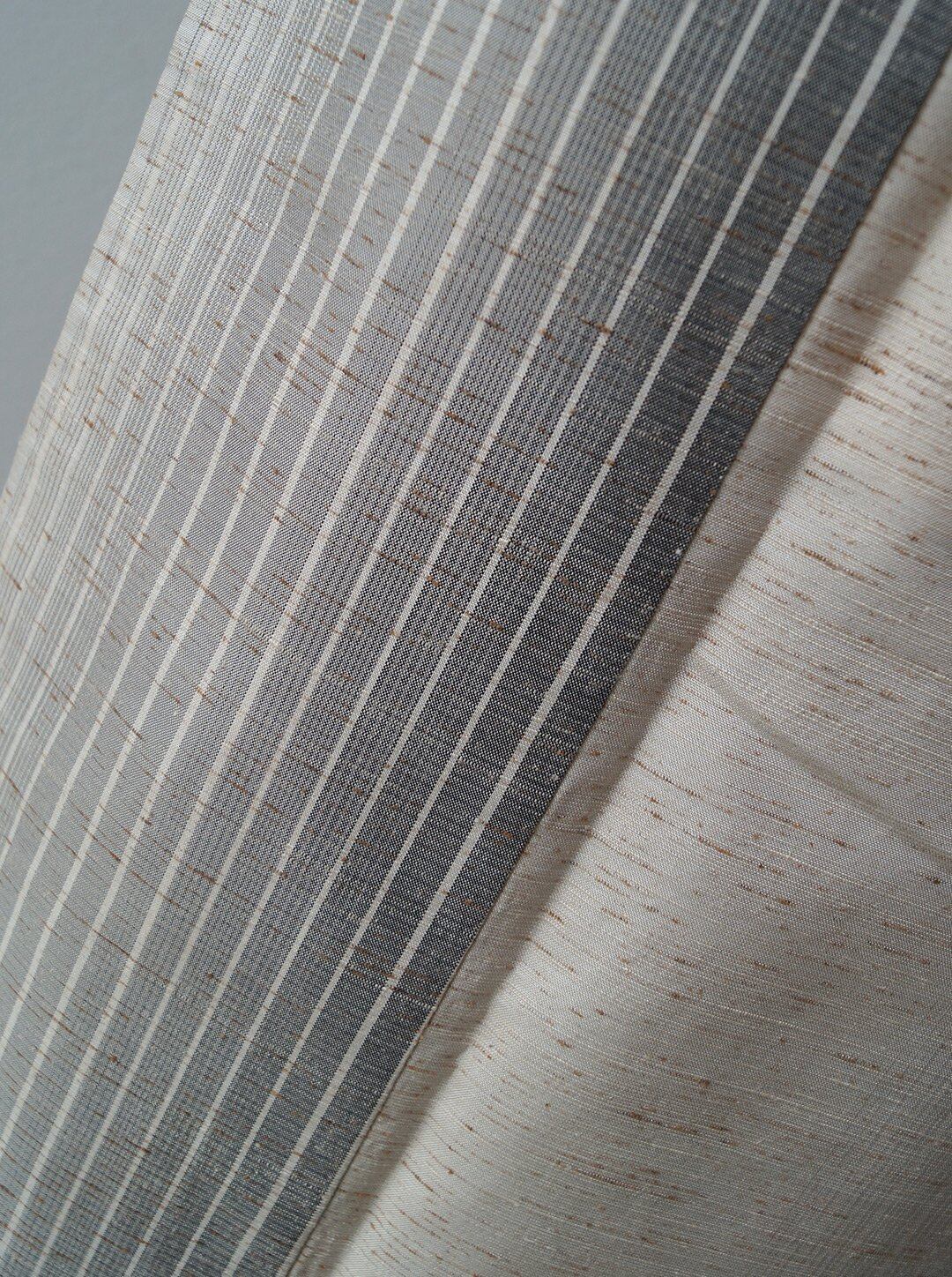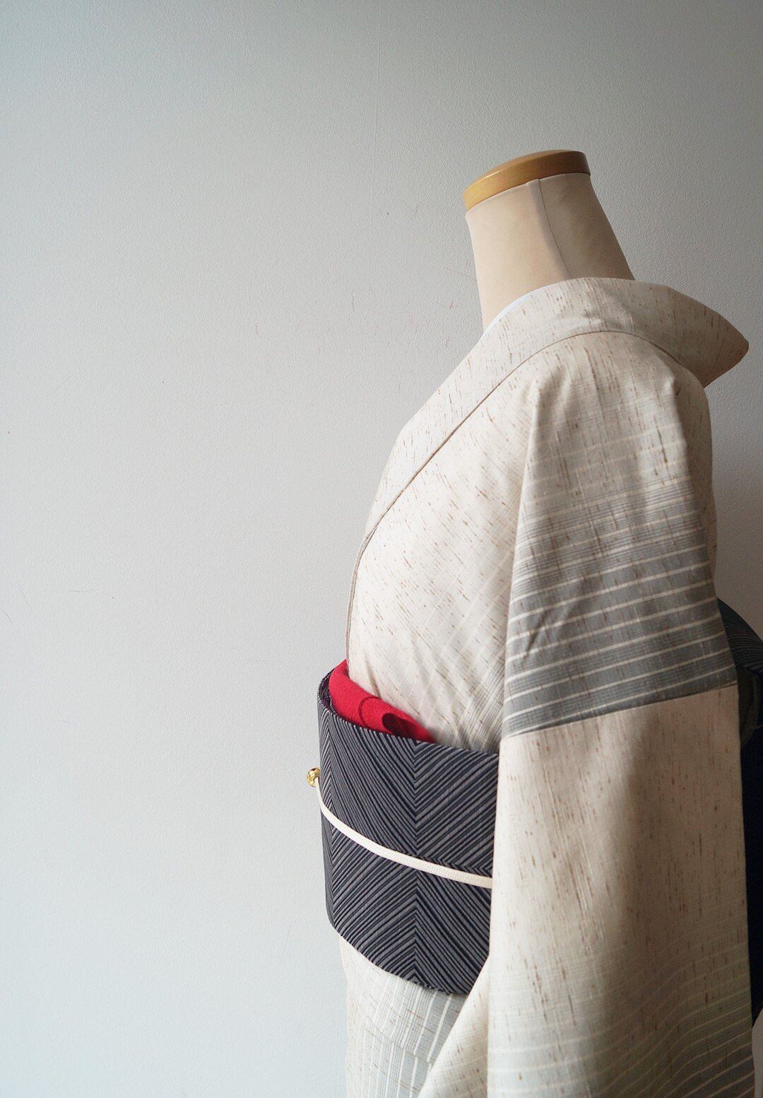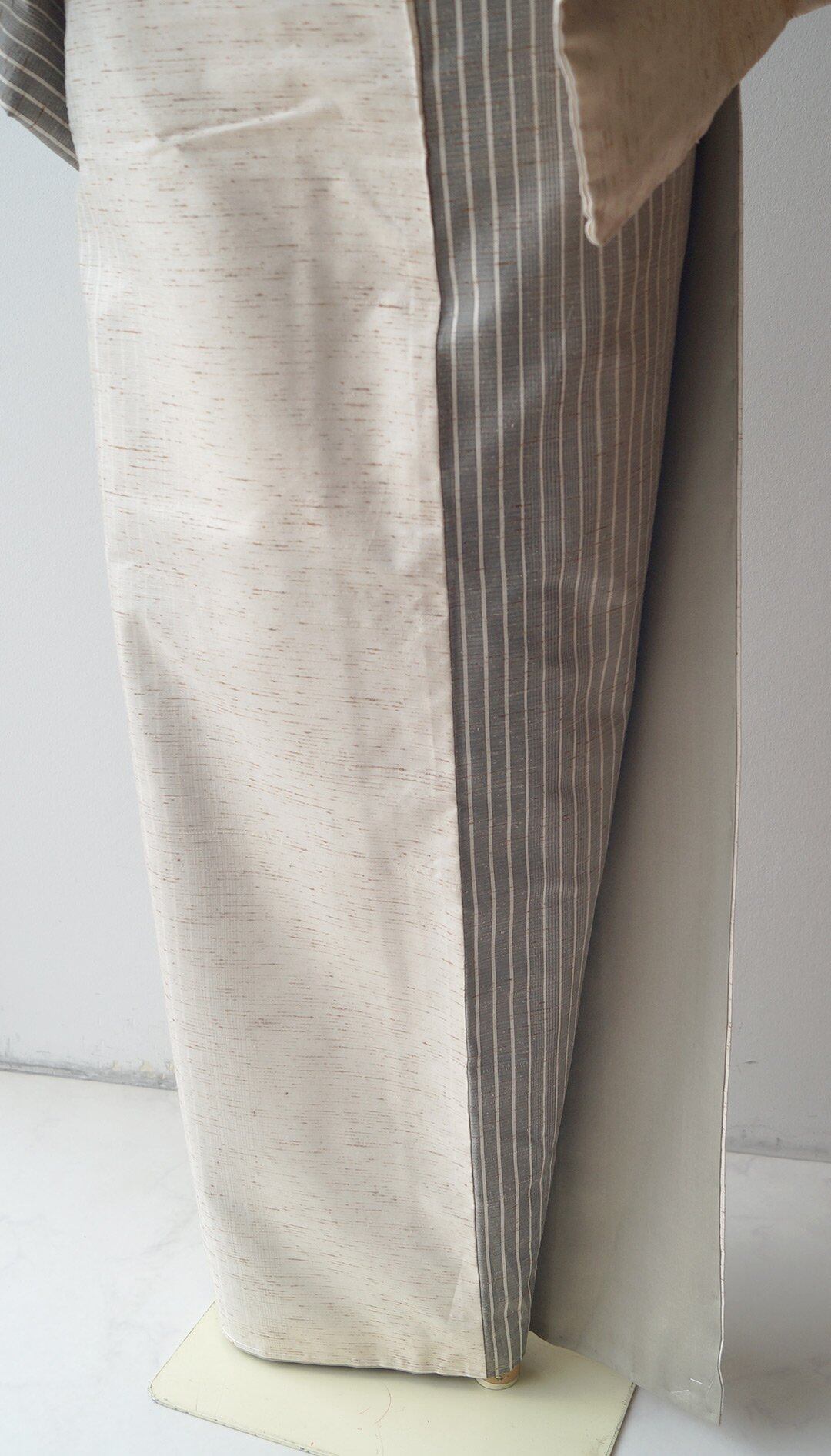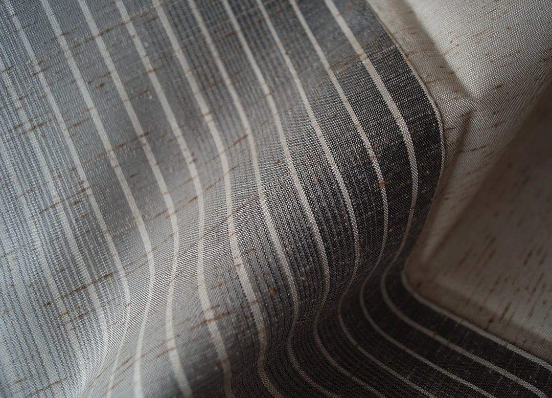 【袷】ぜんまい紬 縞暈かし 北国間道 伝統工芸士斉藤俊弘