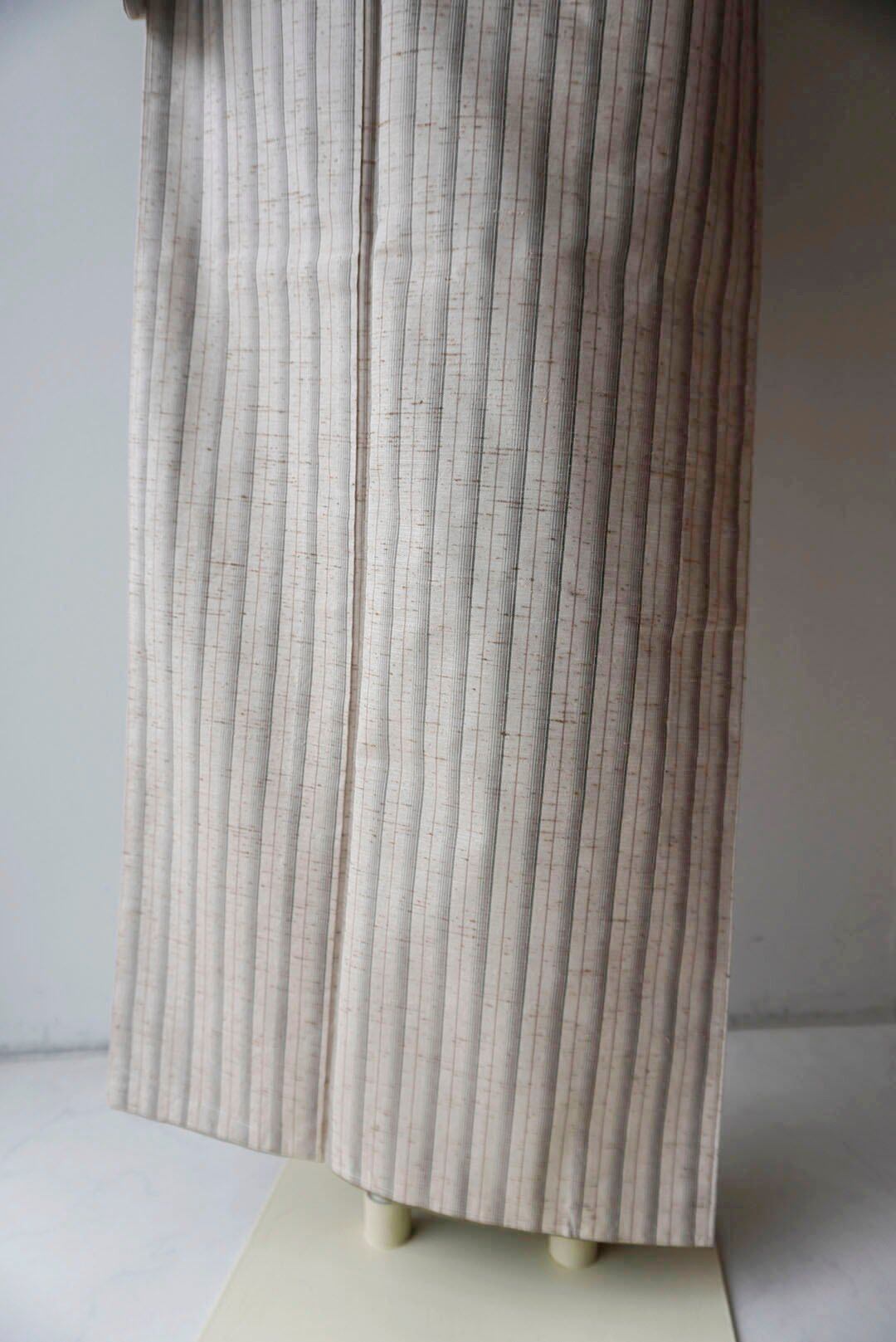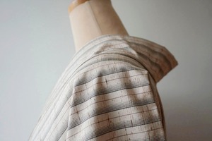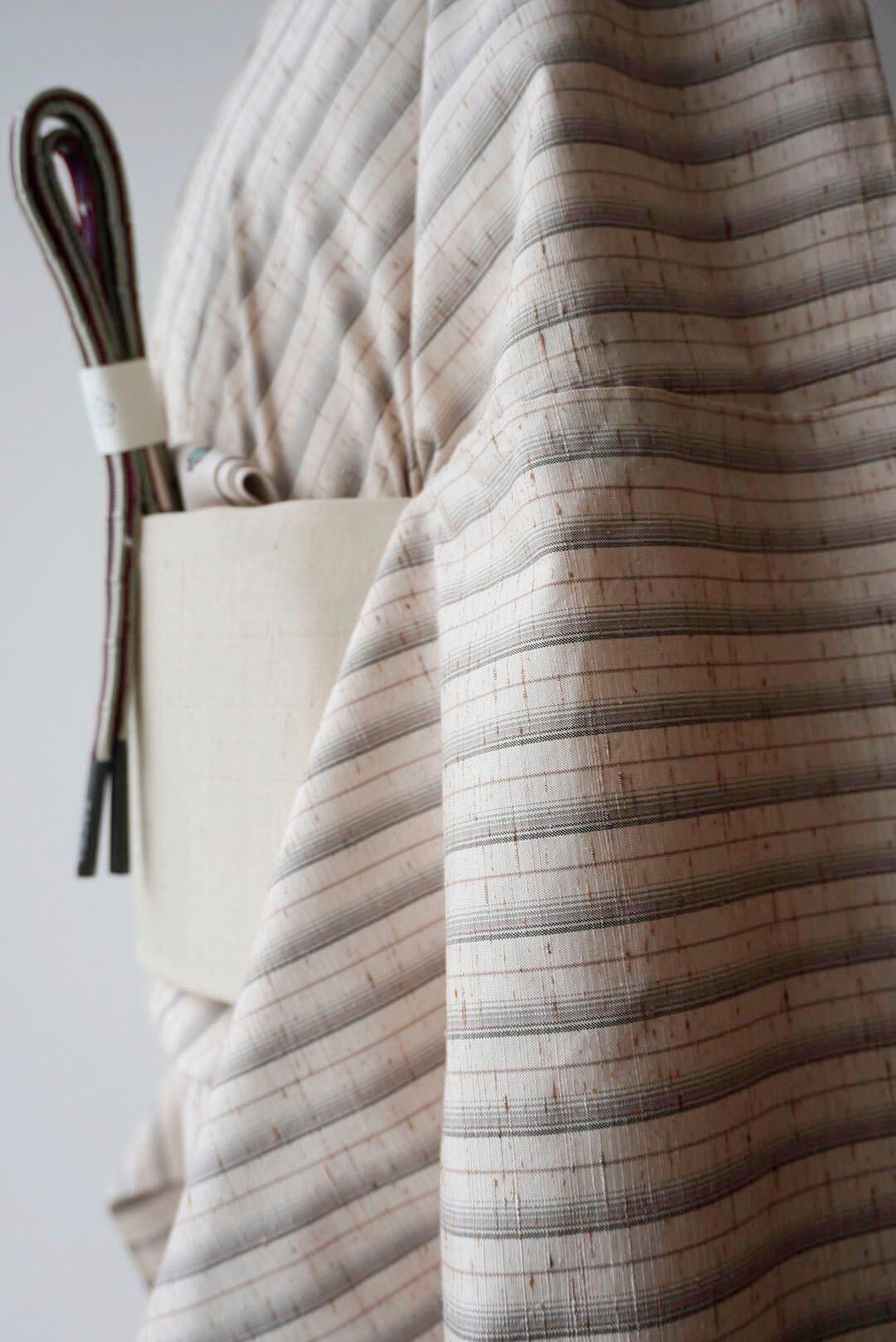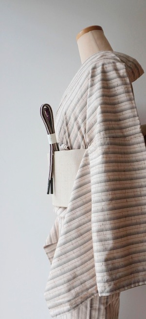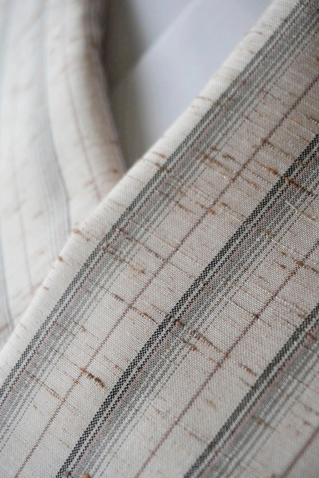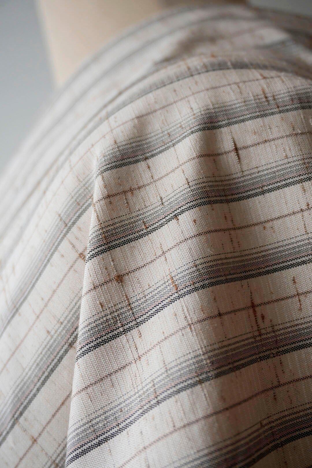 茶系と灰色の濃淡による子持ち縞のお柄。