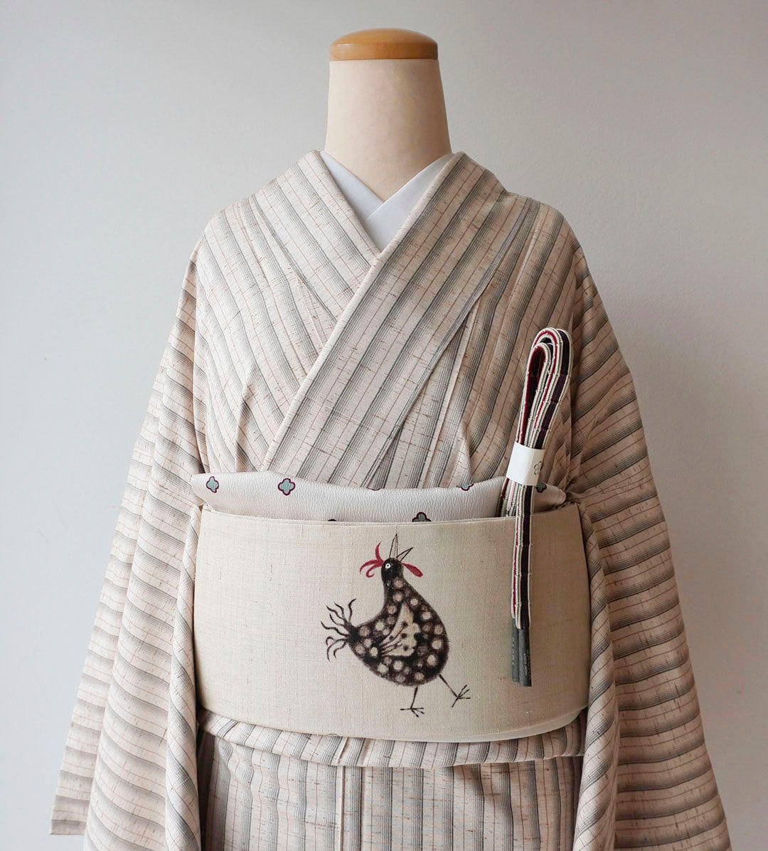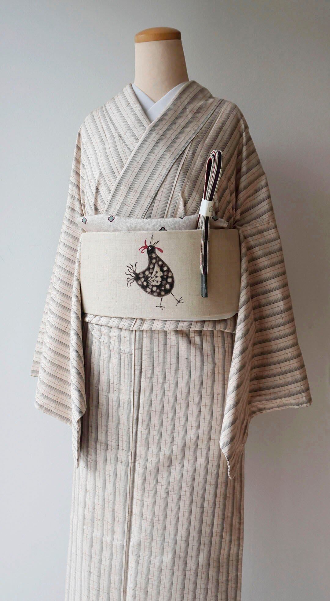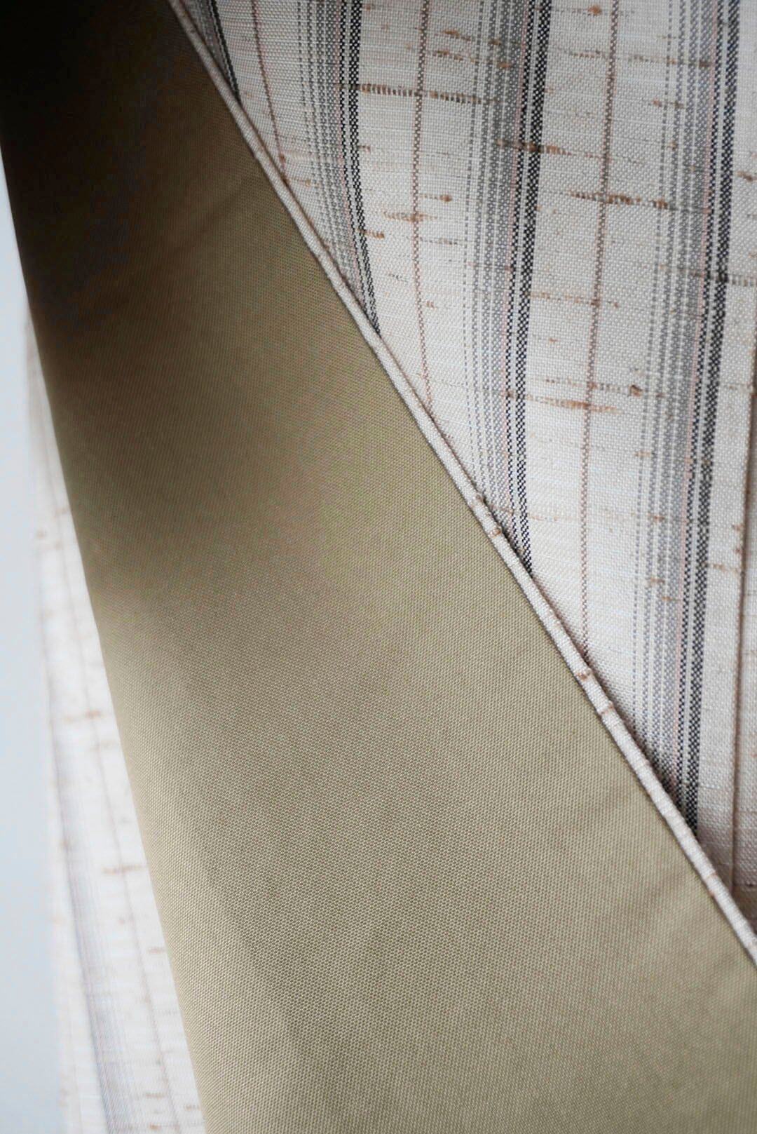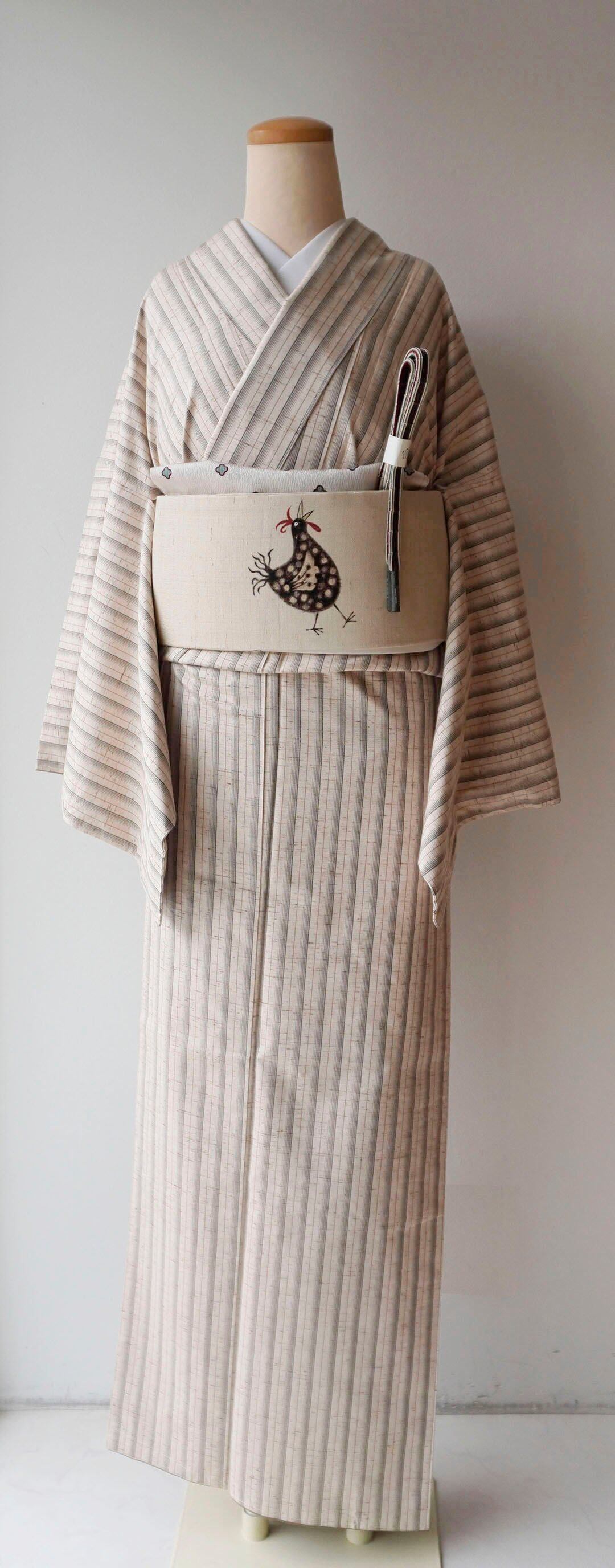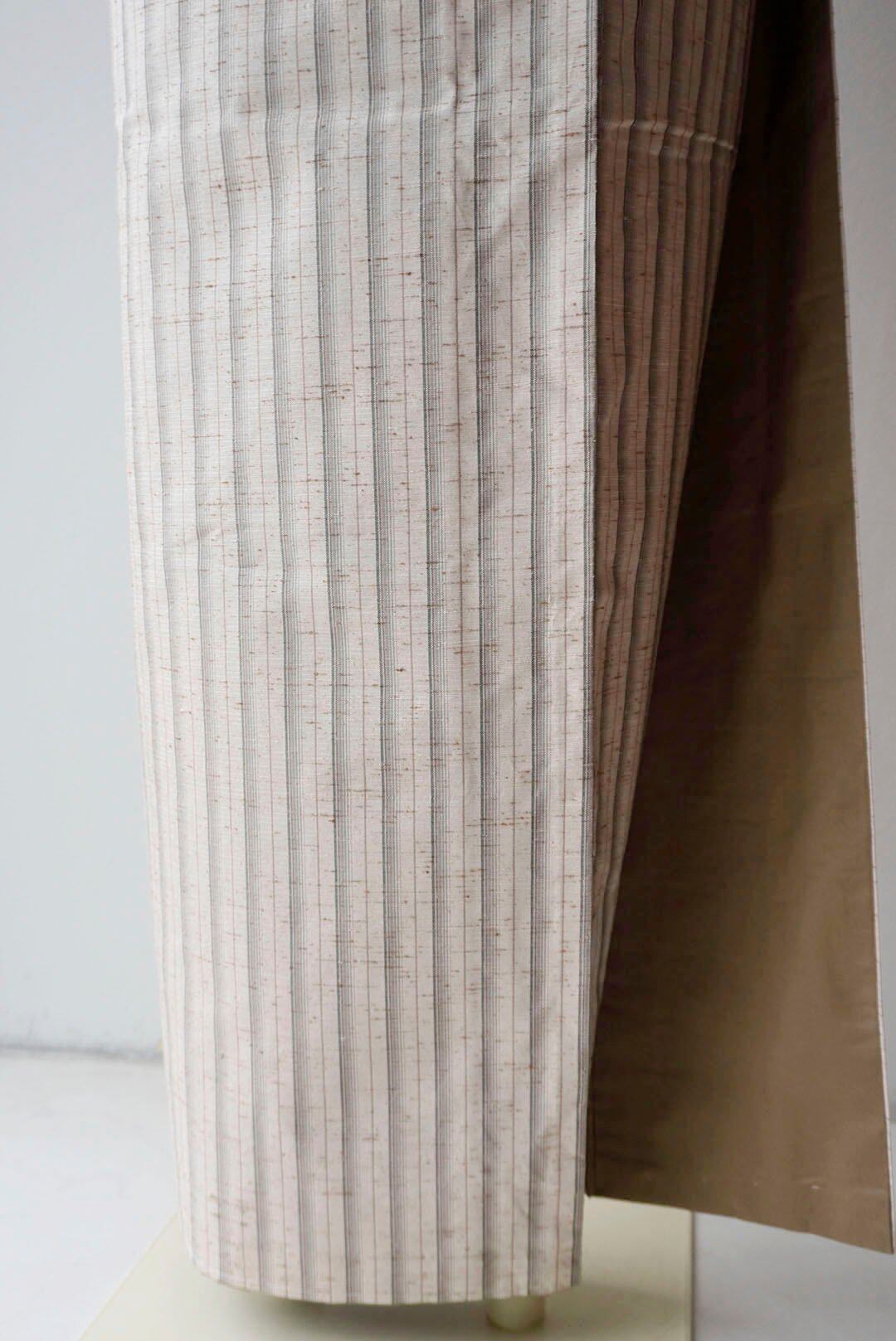 茶系と灰色の濃淡による子持ち縞のお柄。