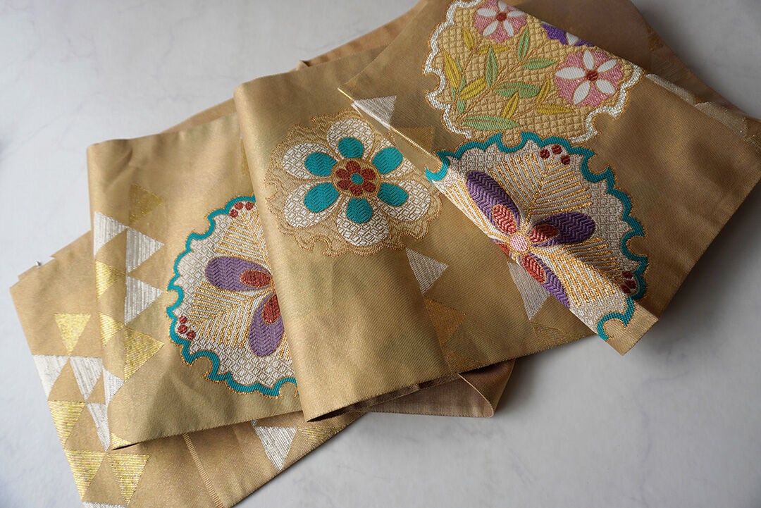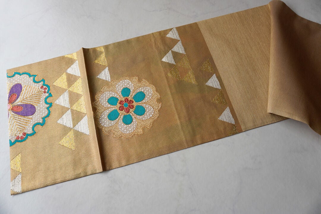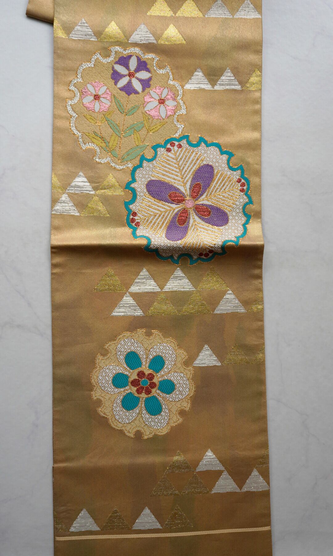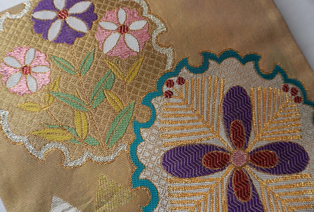 【ふくろ帯】洛風林謹製 雪輪に花と鱗文 ふくろ帯