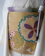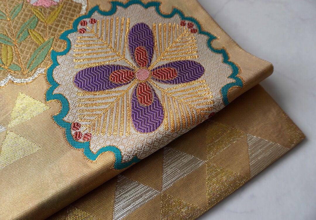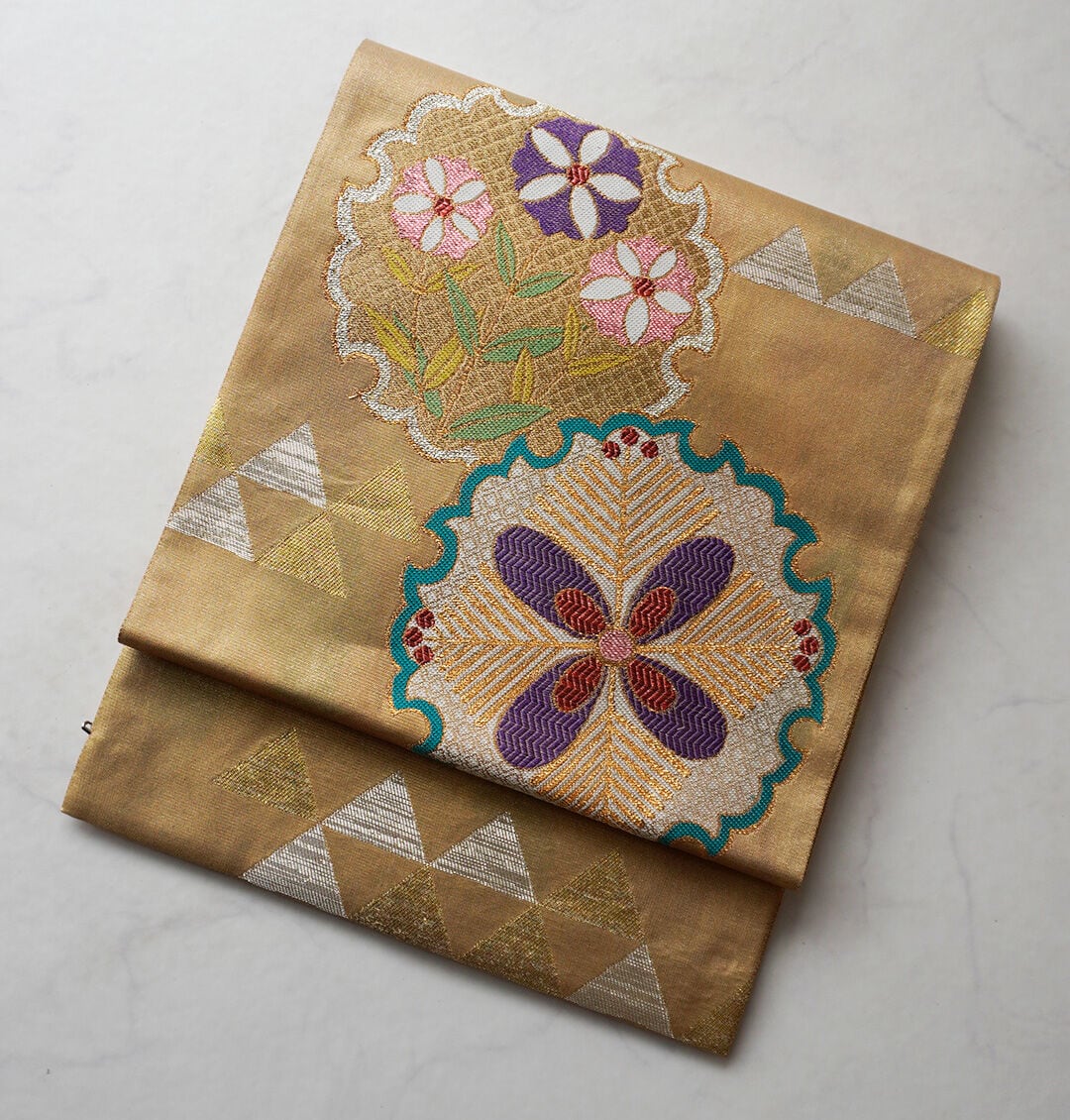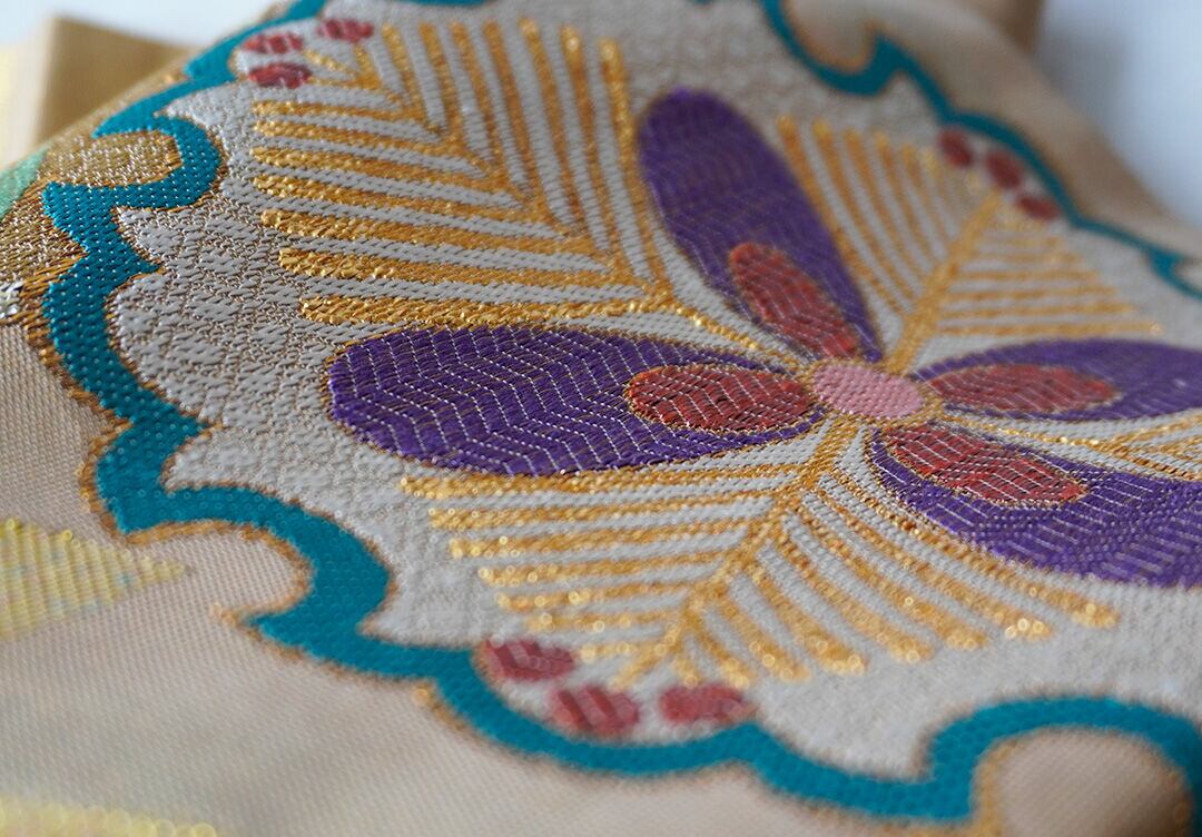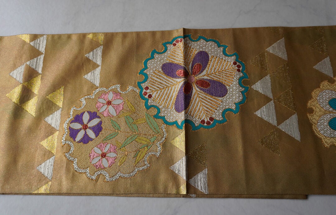雪輪に花と鱗文の洛風林のふくろ帯です。
