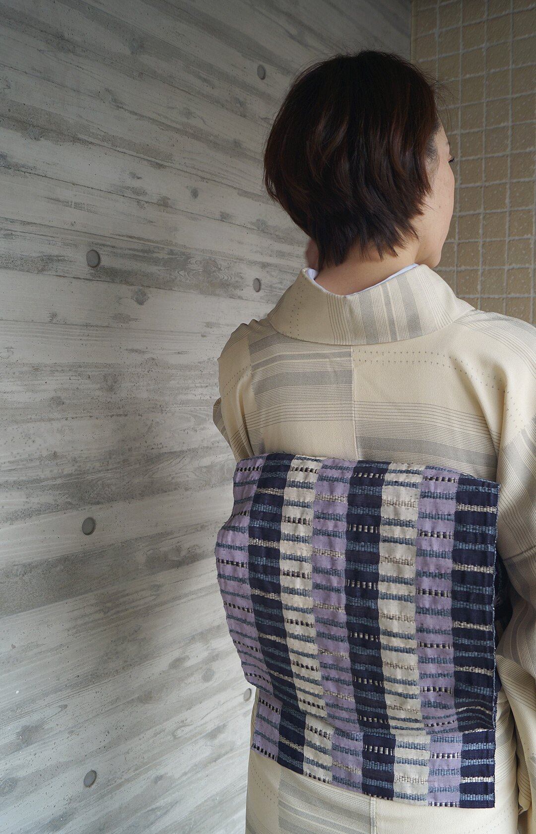 【なごや帯】縞にめがね織り 八寸なごや帯