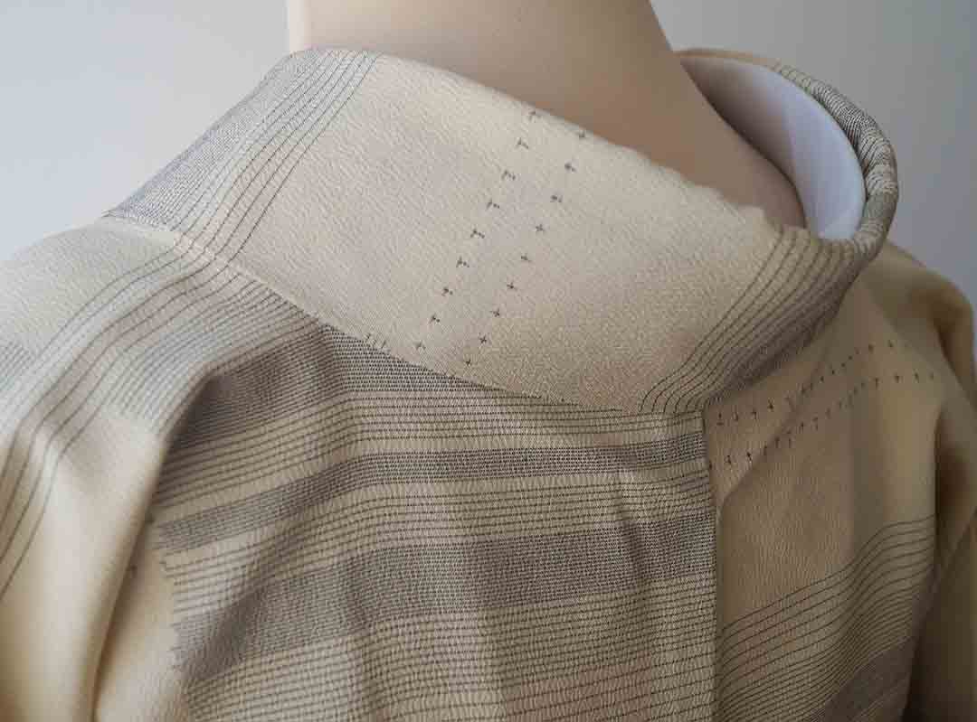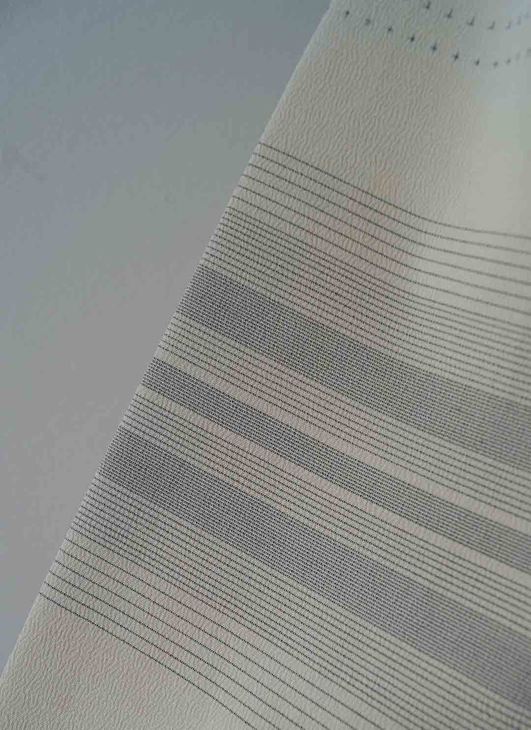 柔らかな黒色の線で、密度に強弱のある縞文と