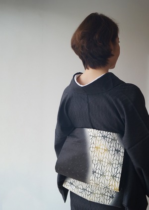 幾何学×暈かしの染め分けのふくろ帯です。