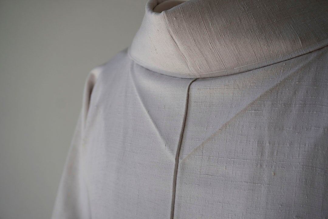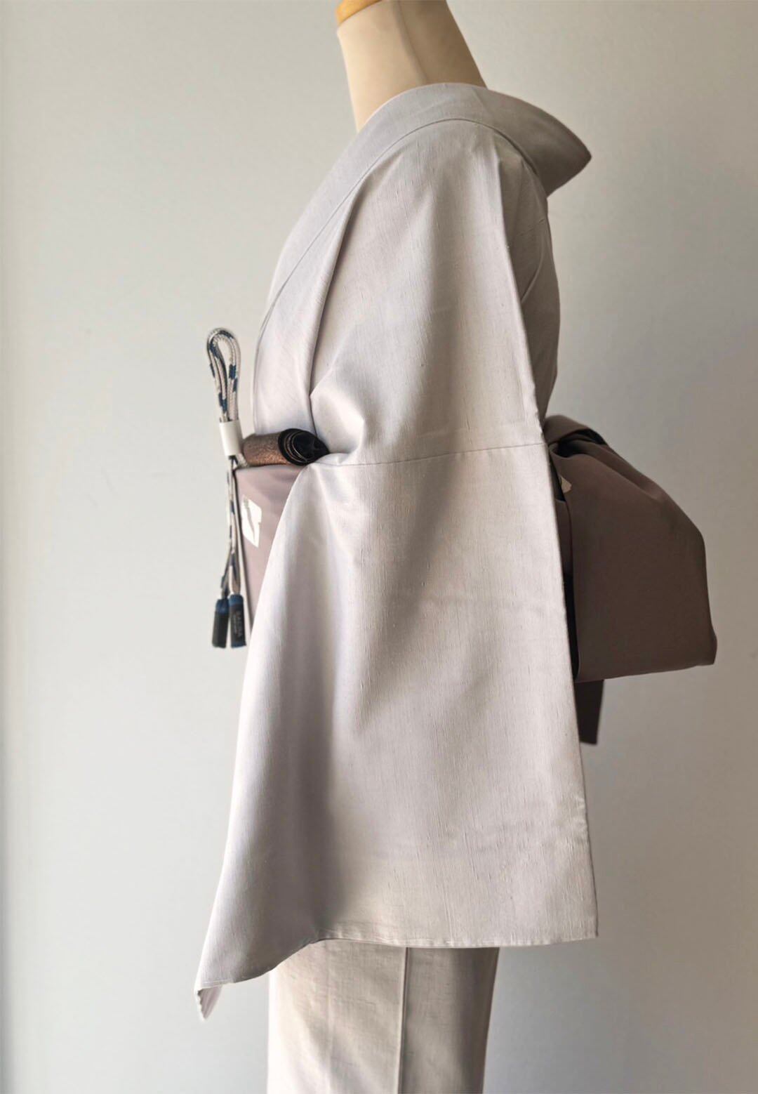 【袷】水晶色 結城無地紬 はたおり娘証紙付き トールサイズ