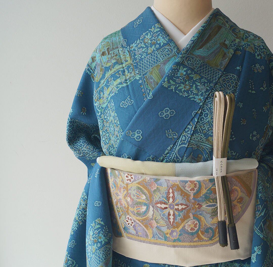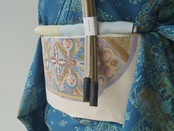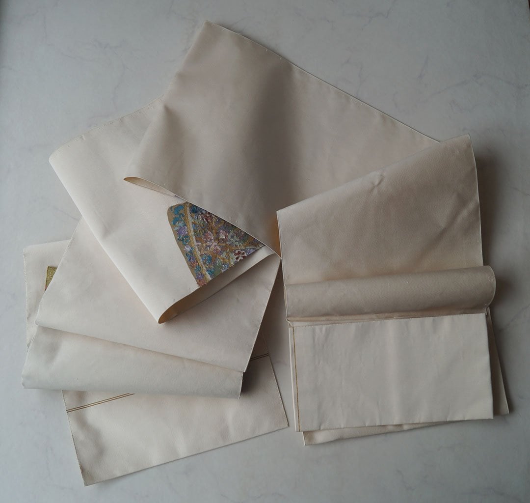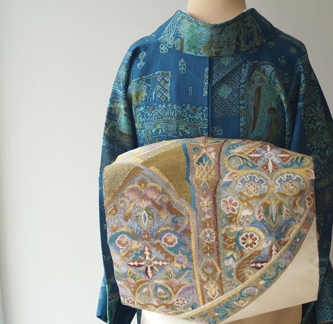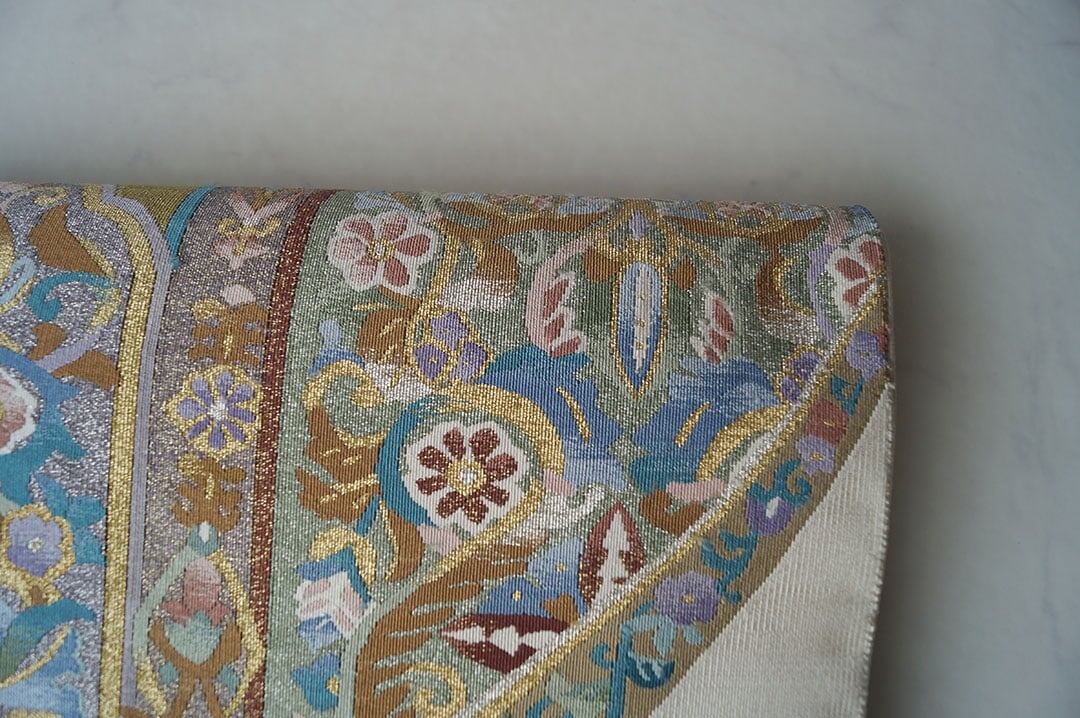 【なごや帯】西陣 浅田 爪綴れ 生成り地 抽象花文 なごや帯
