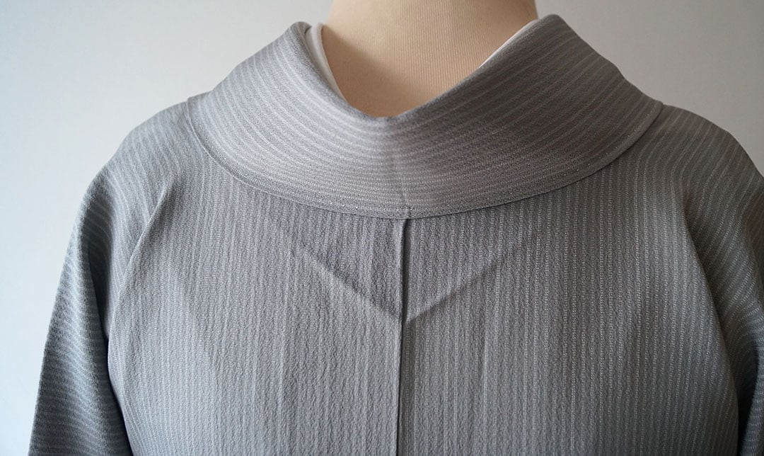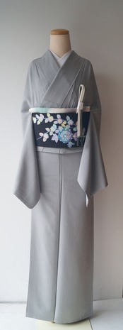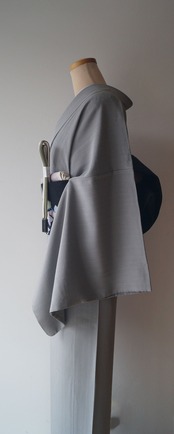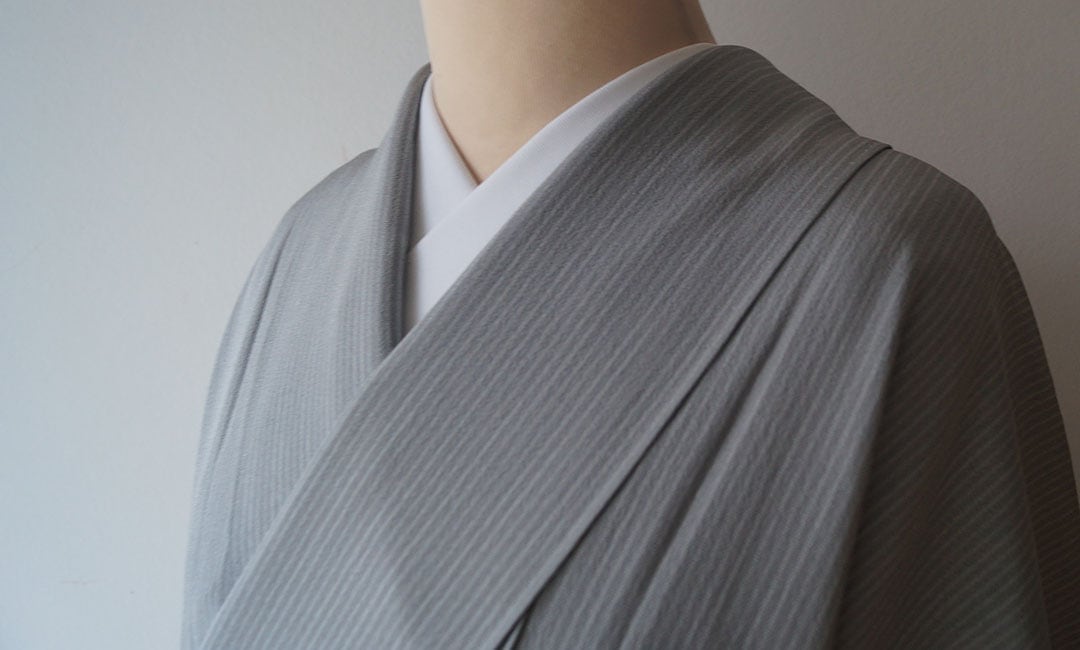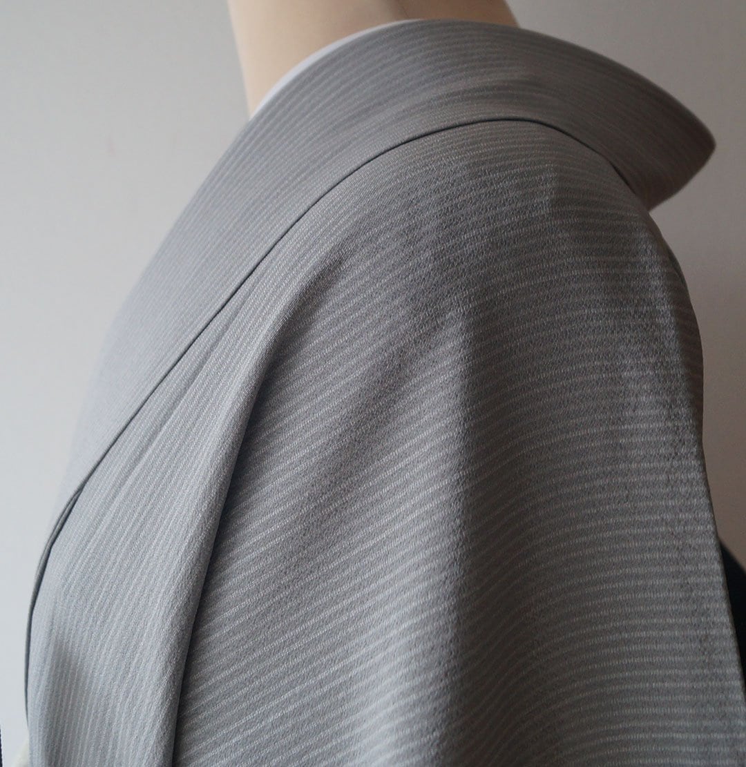 ライトグレー系の縞文のお召しです。