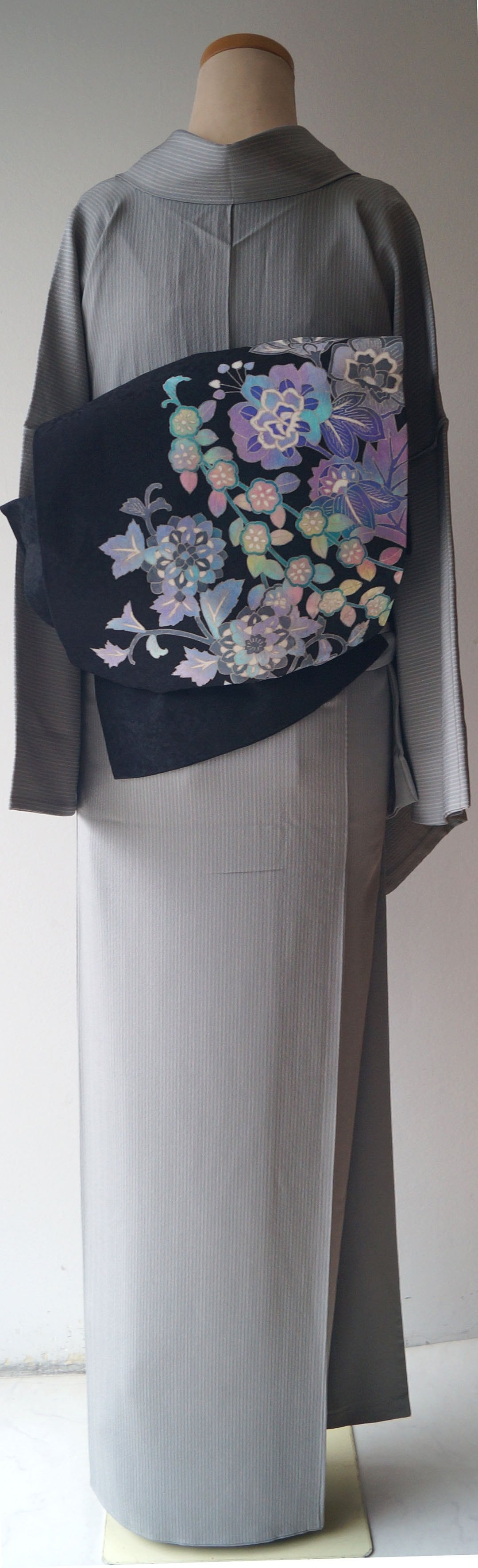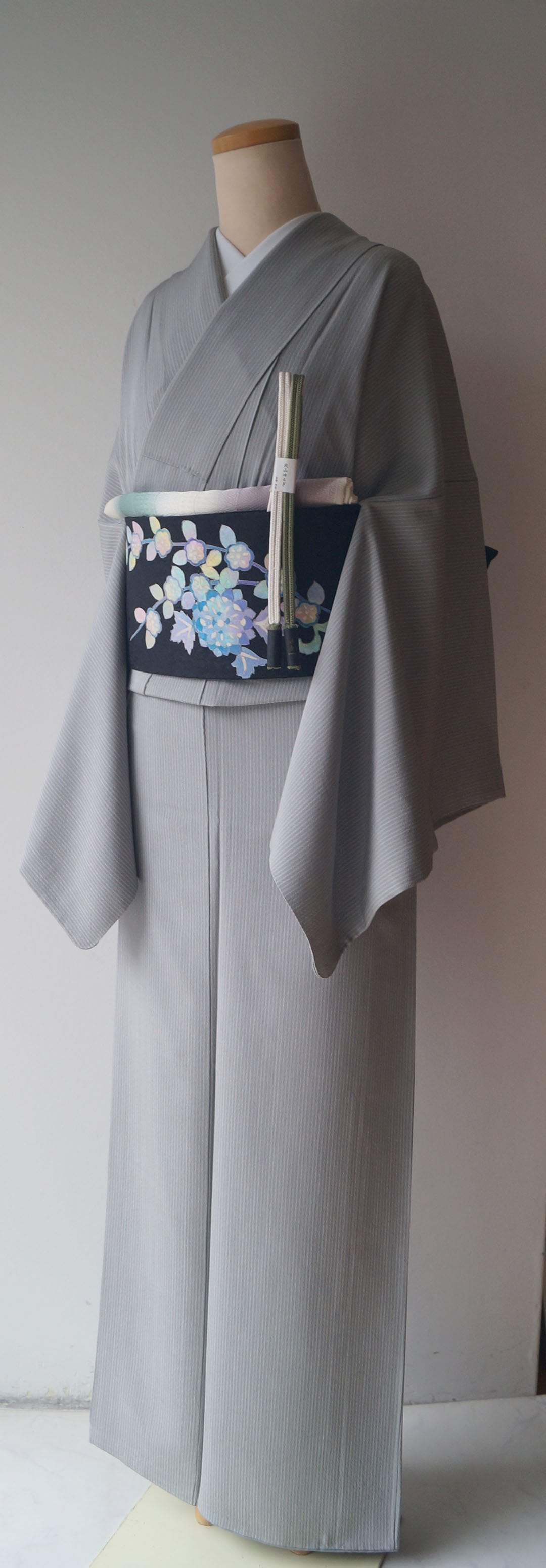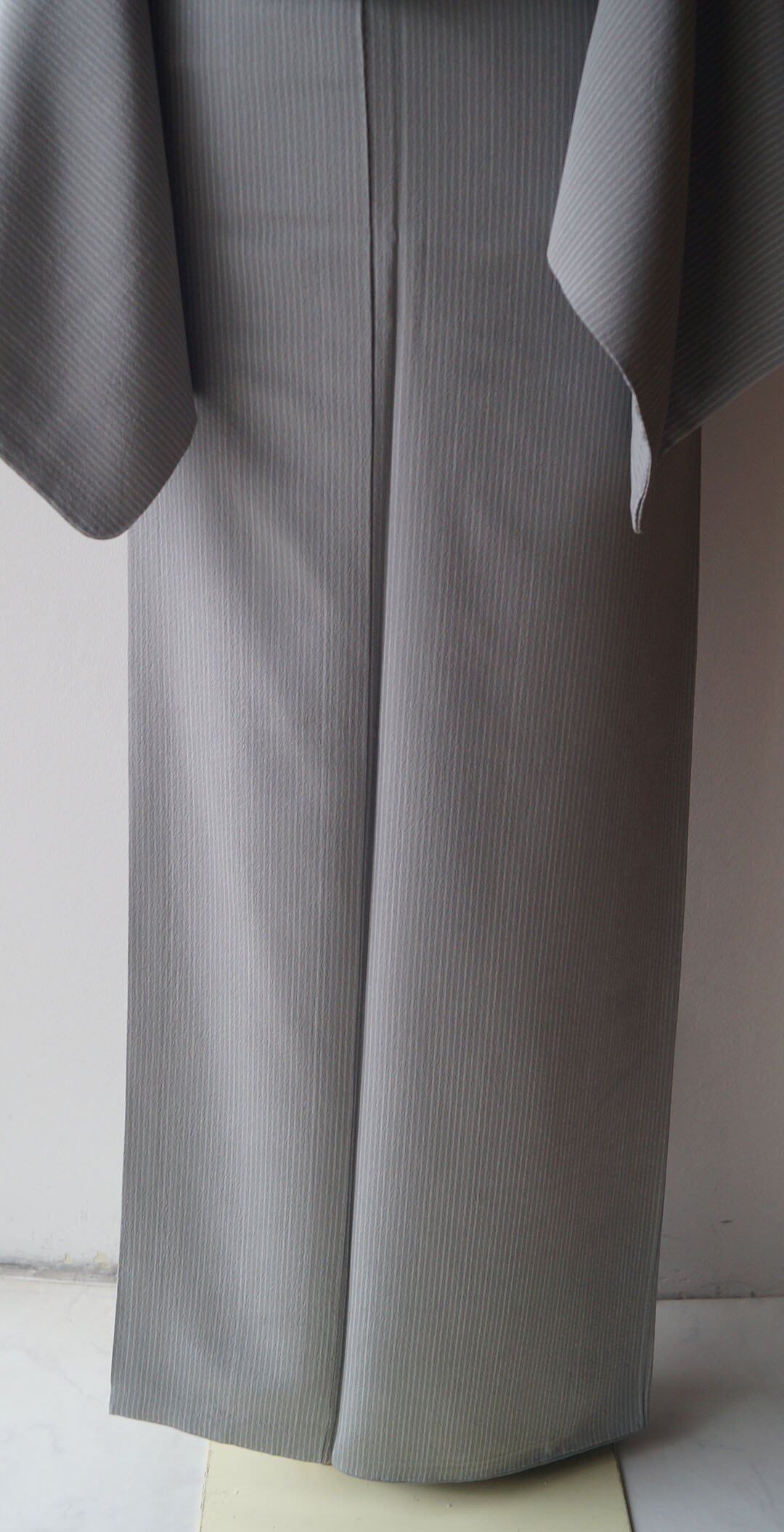 ライトグレー系の縞文のお召しです。