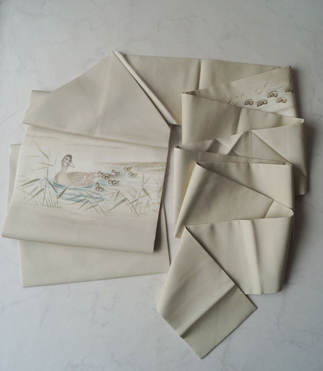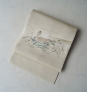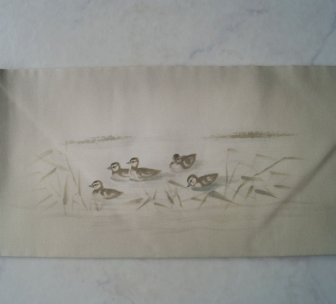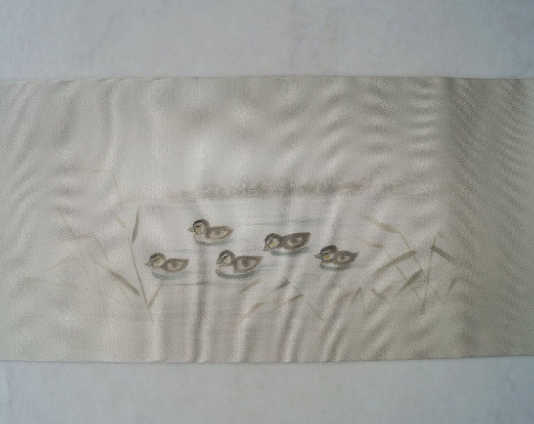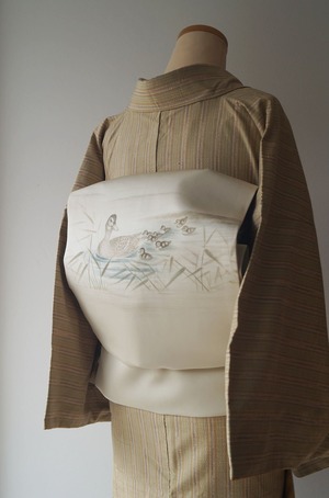 【なごや帯】素色地 鴨と葦文 塩瀬なごや帯