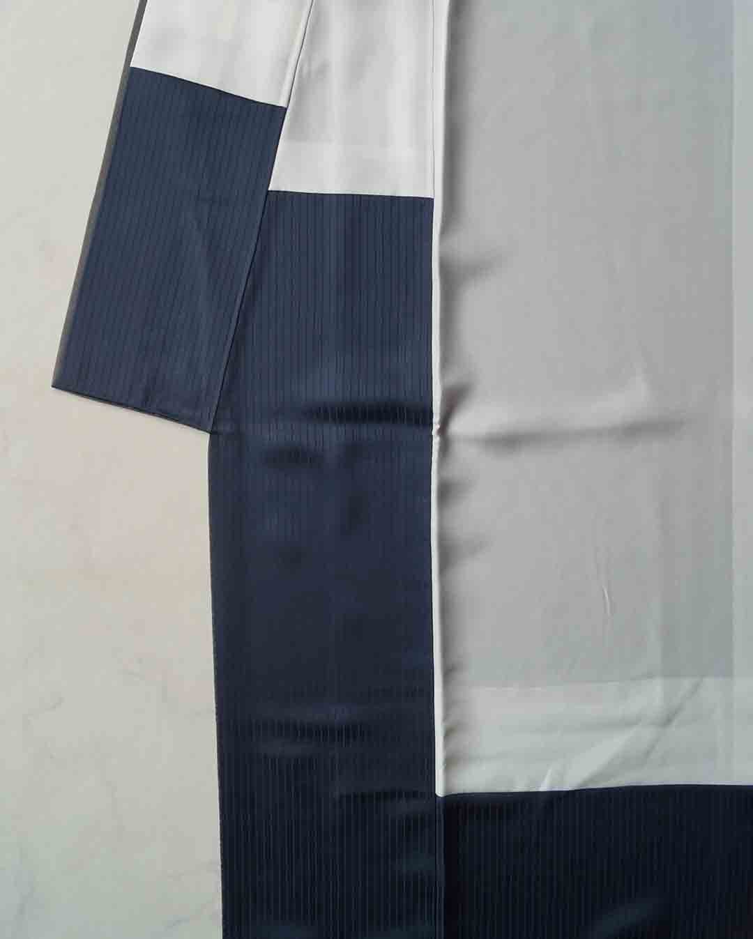 濃いめのグレーの濃淡で縦に暈しで染められた