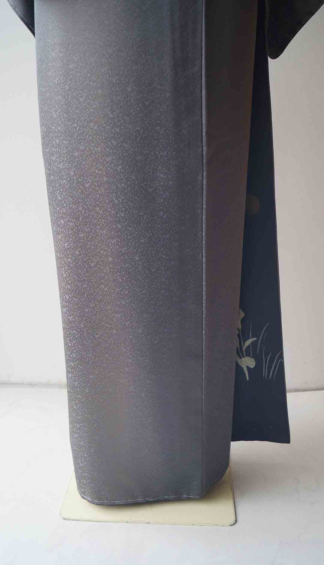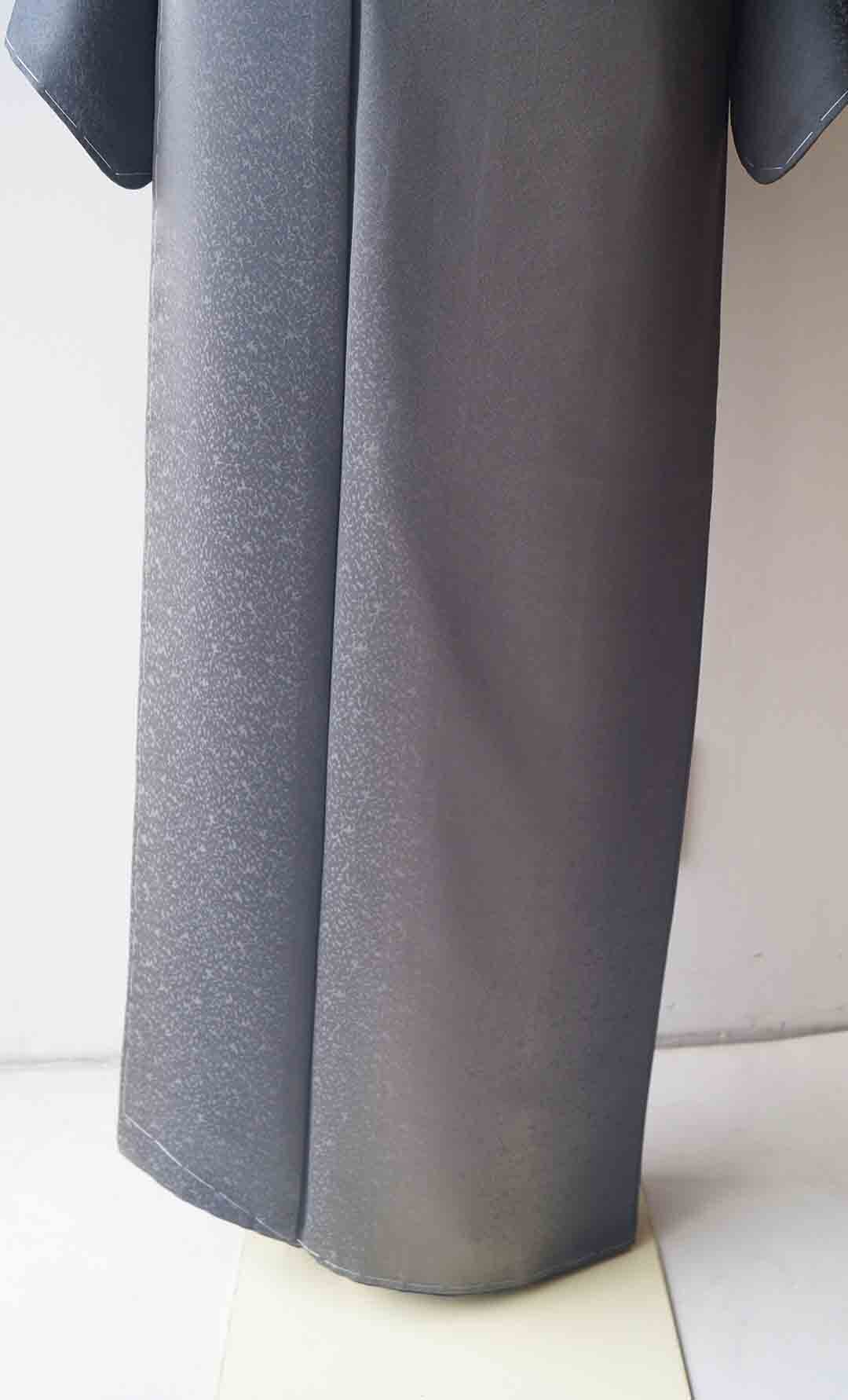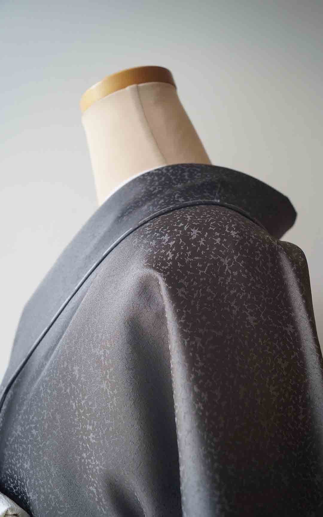 【袷】羊羹色×灰色 たたき染め地紋 縦暈し