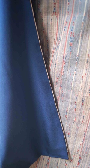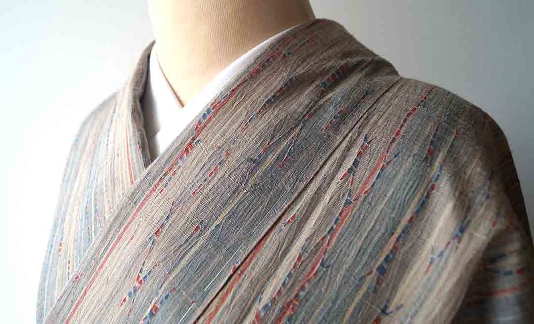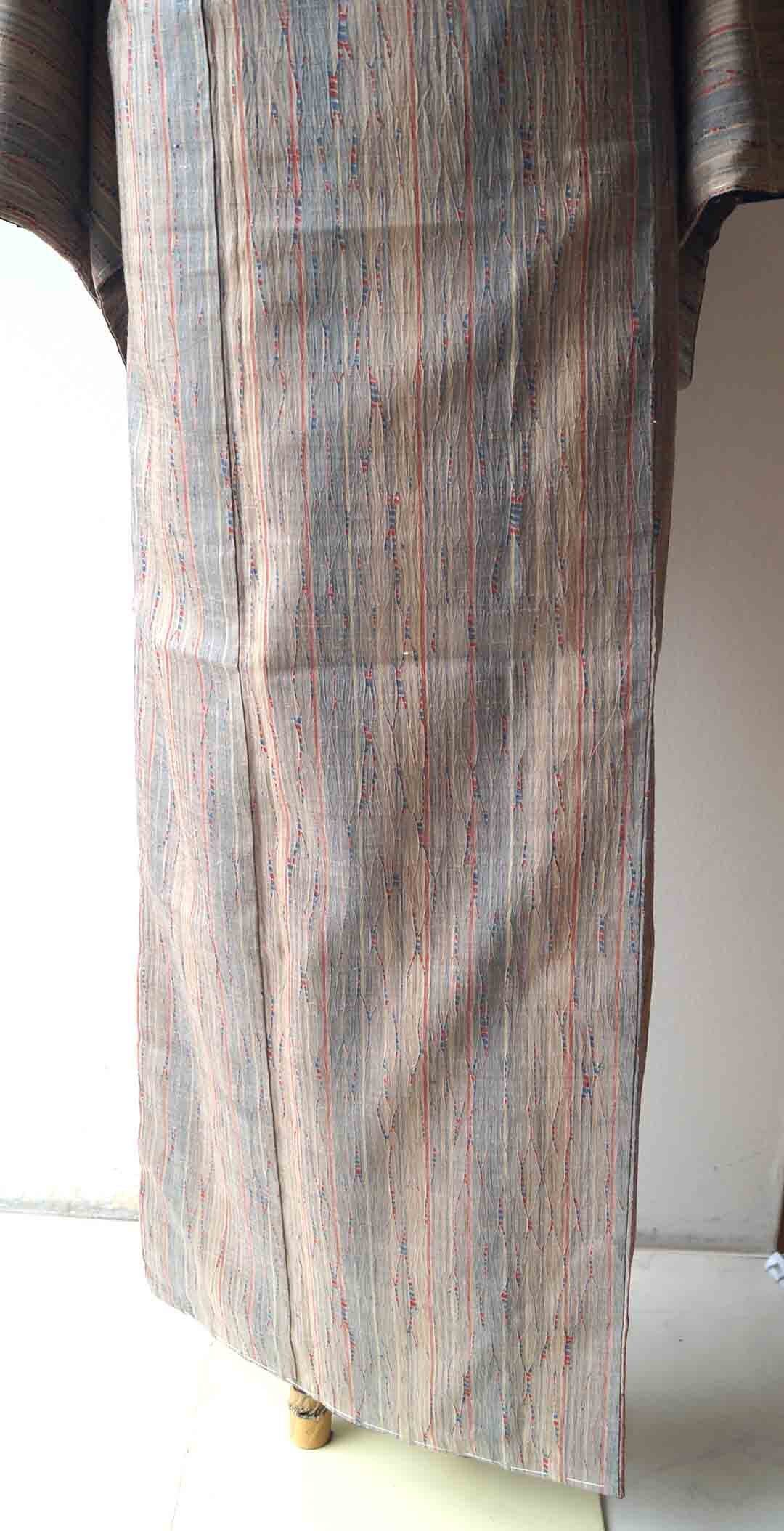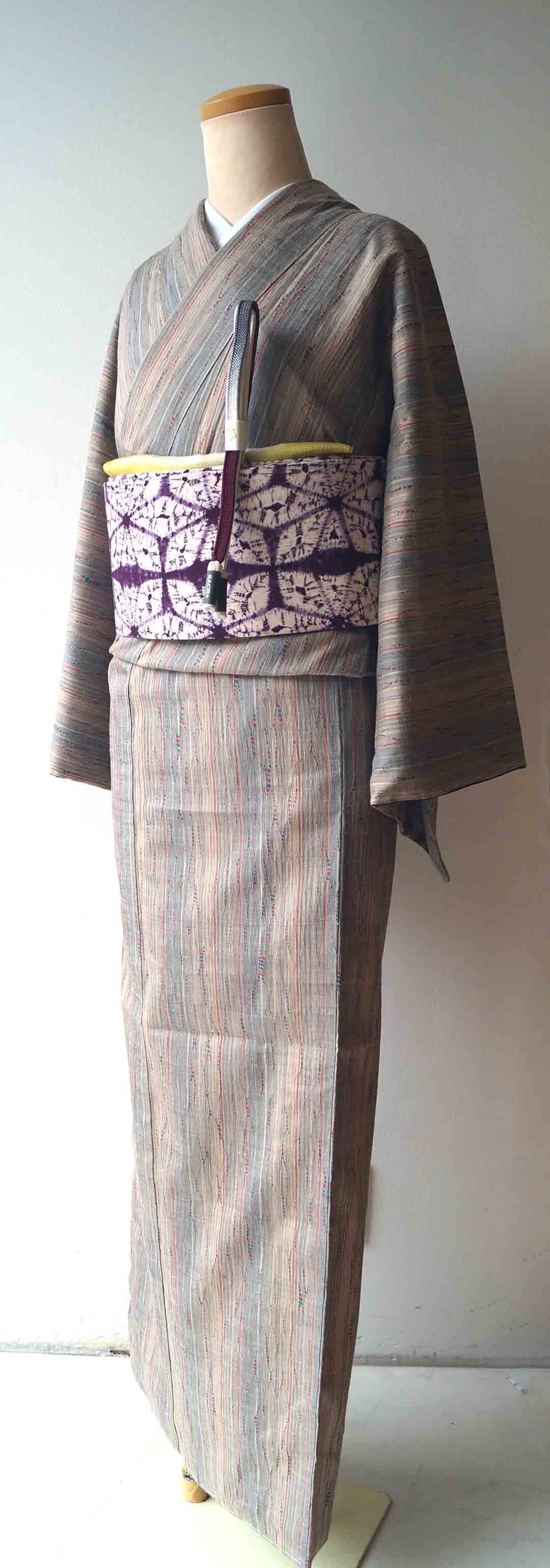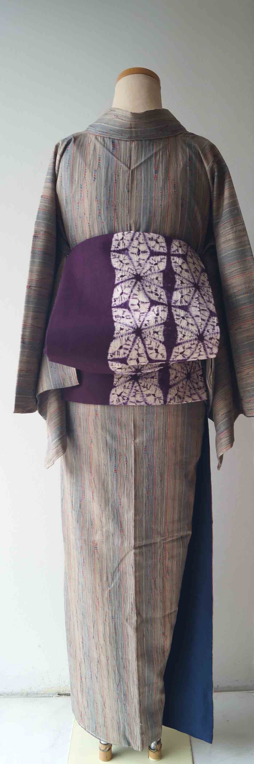 【袷】 みとも扱い 亜麻色×舛花色地 縫い絞り紬