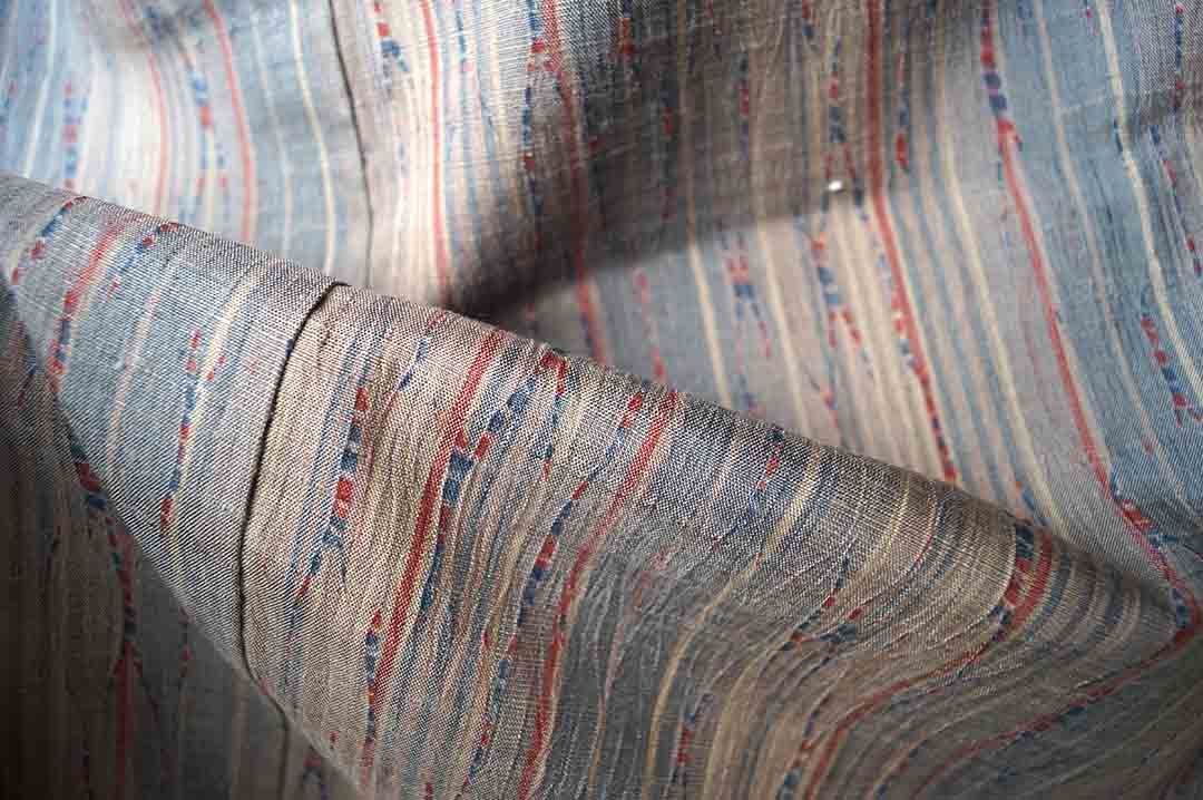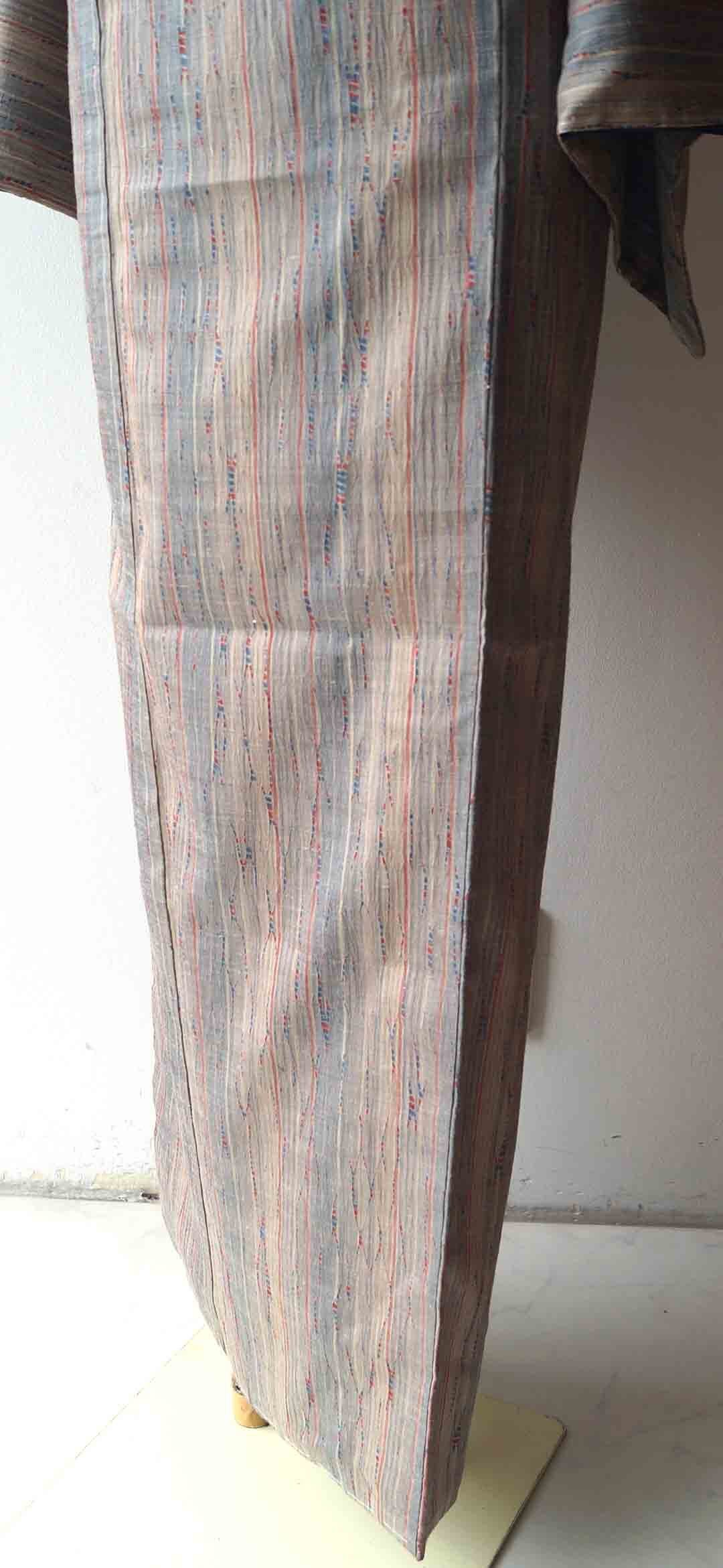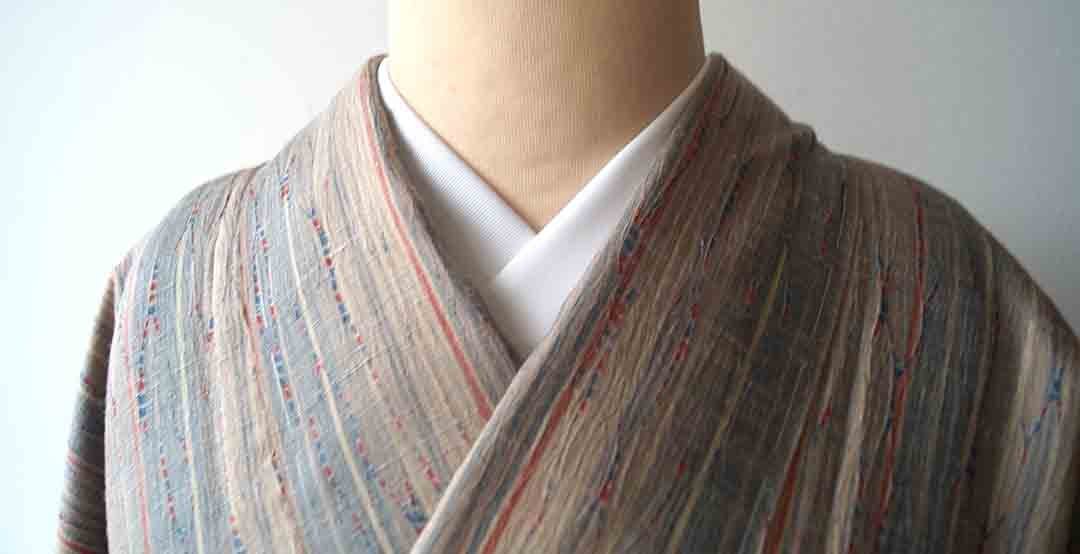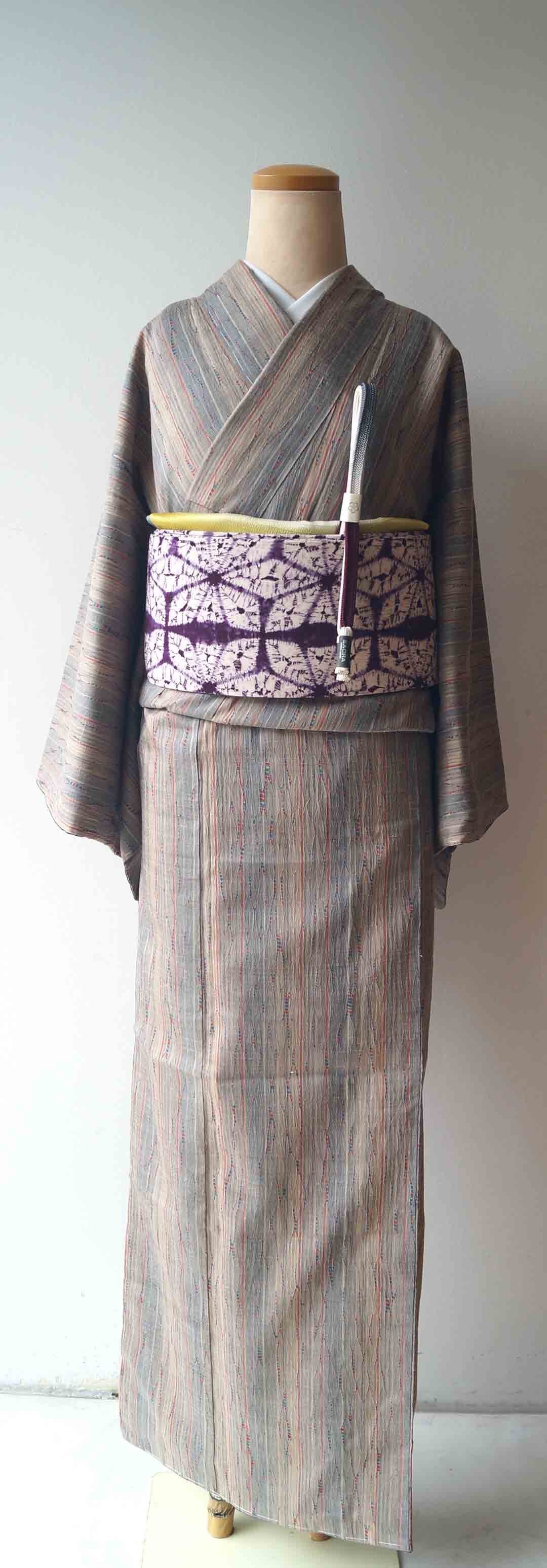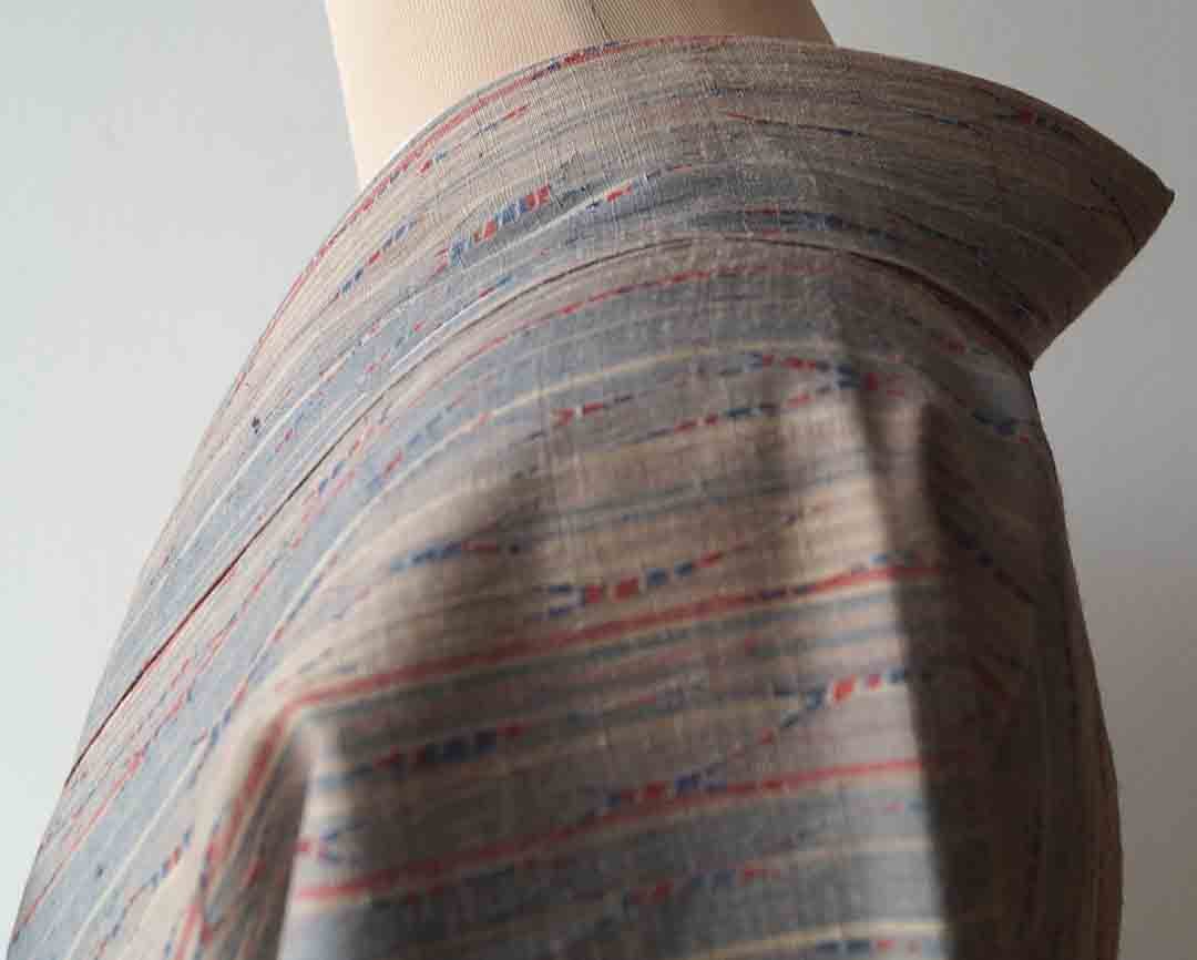 【袷】 みとも扱い 亜麻色×舛花色地 縫い絞り紬