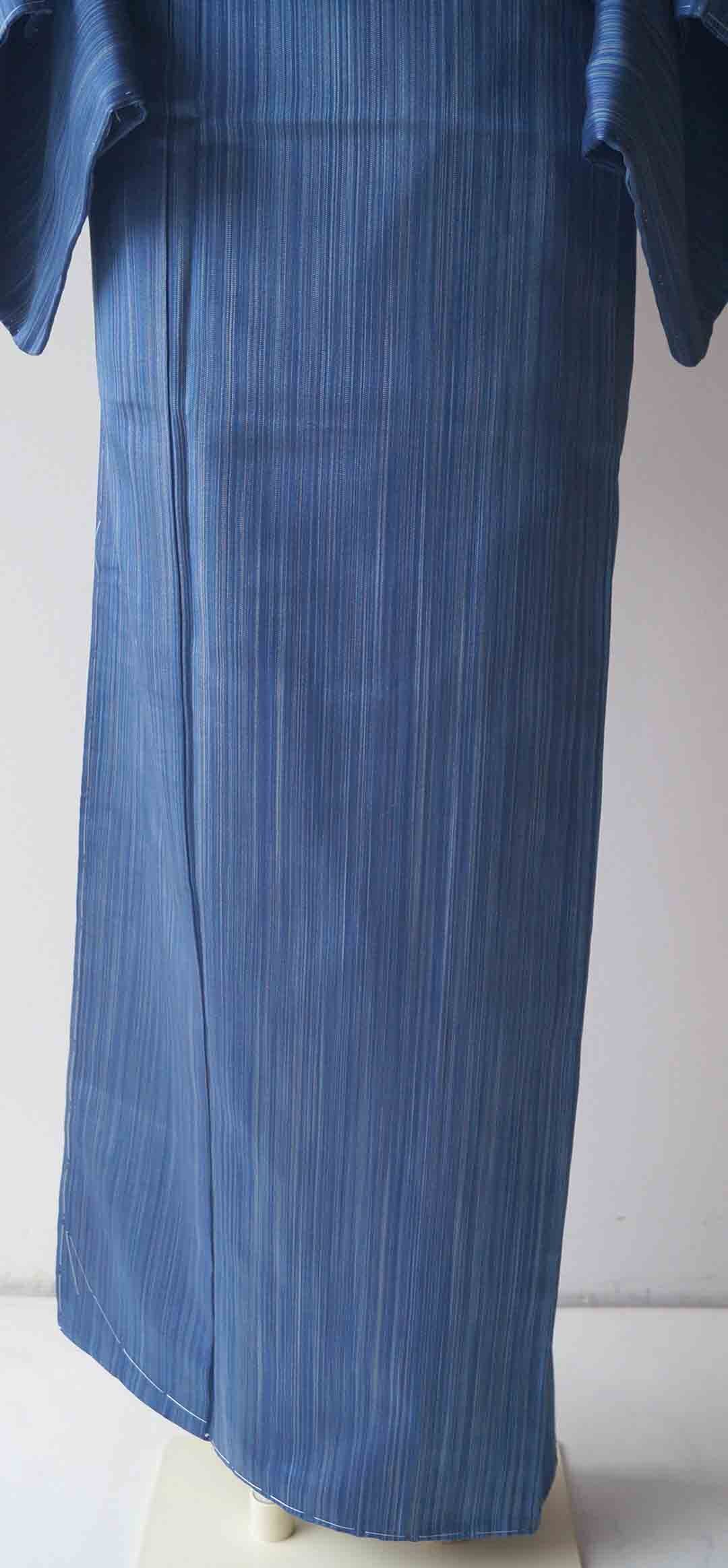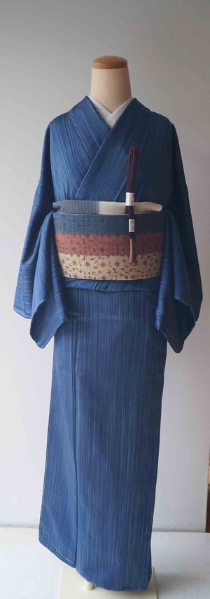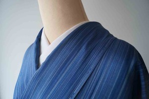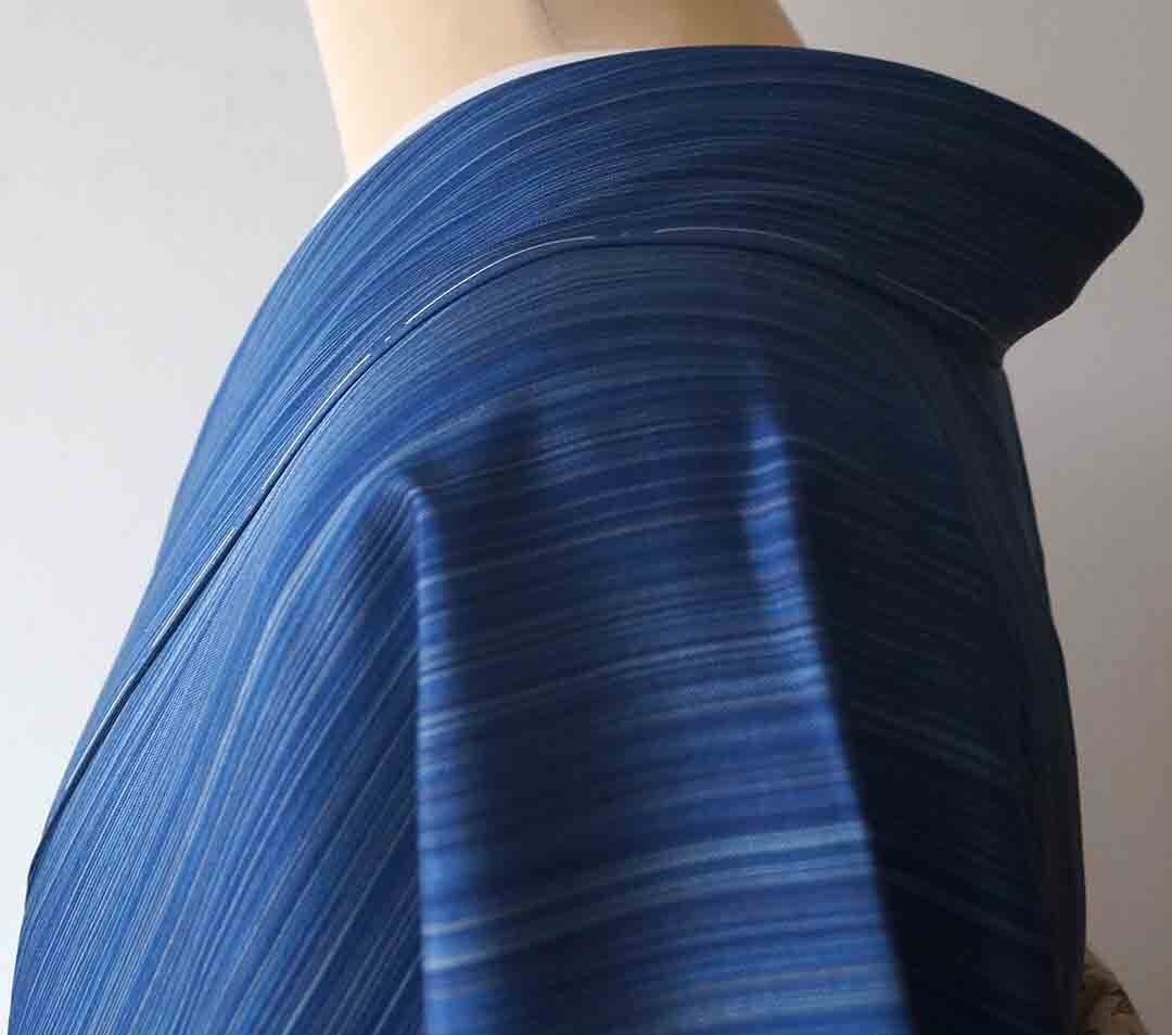 【袷】濃淡青色 縞文 大島紬